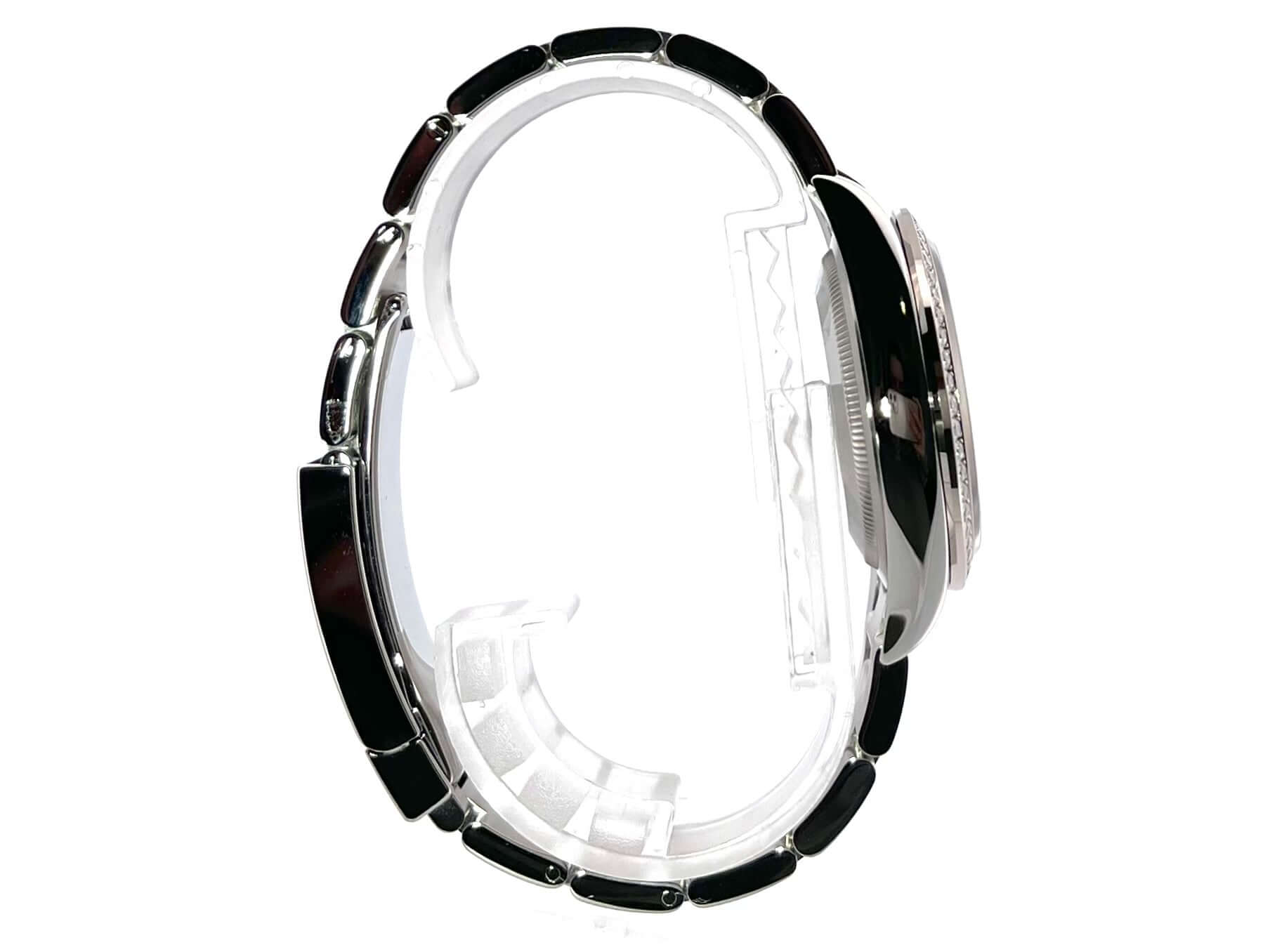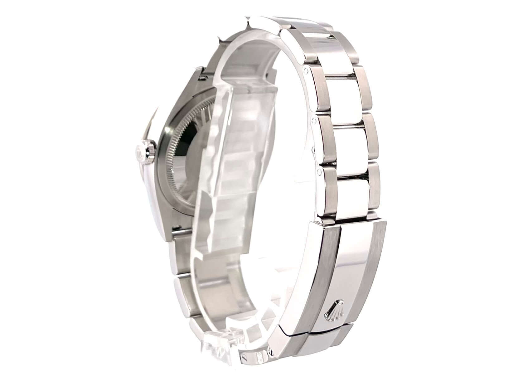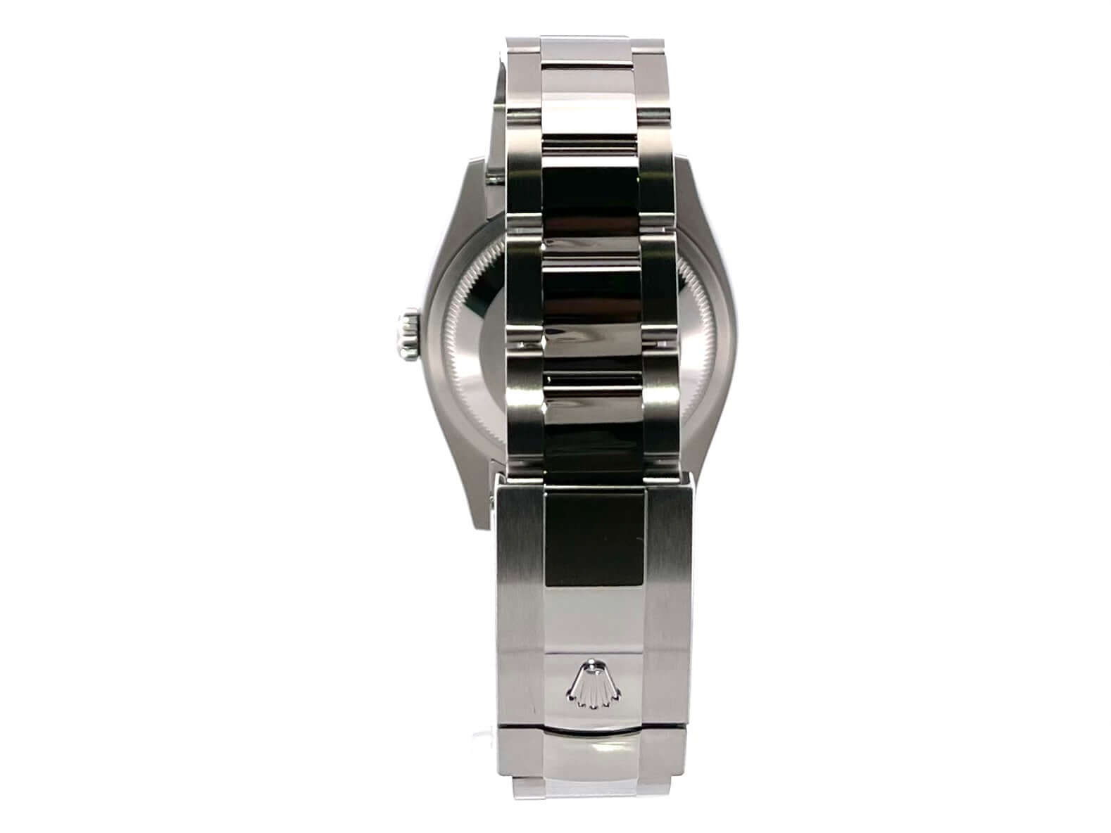 Gehäuse aus Edelstahl Oystersteel poliert und satiniert, Gehäusedurchmesser 36 mm, Lünette aus 18 kt Weißgold mit Diamanten besetzt, olivgrünes Palmenmuster Zifferblatt, Oyster-Edelstahlband mit Faltschließe, Automatik, Rolex Manufakturkaliber 3235, 70 Stunden Gangreserve, Datumsanzeige, Chronometer, Saphirglas, verschraubte Krone, Edelstahlboden verschraubt, Wasserdicht bis 10 bar.