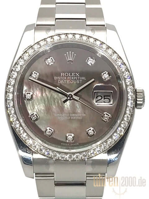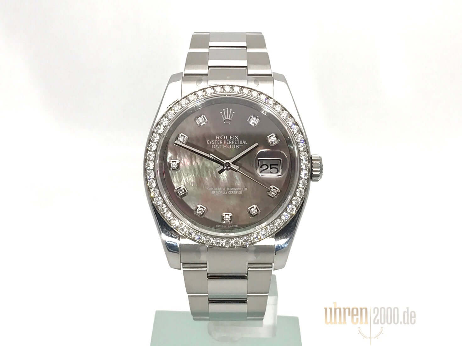 Rolex Datejust 36 Edelstahl Weißgold Diamant Lünette Ref. 116244 Perlmutt Diamant aus 2010
