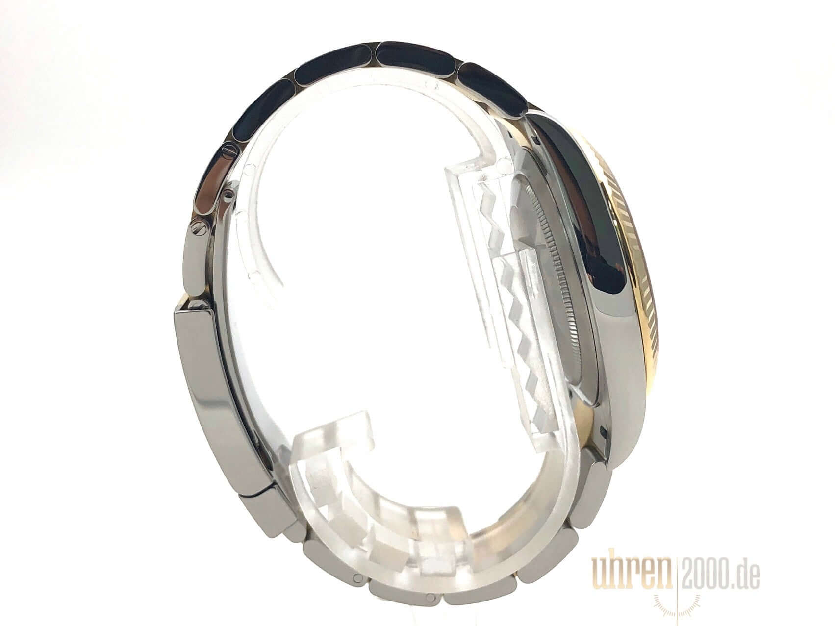 Gehäuse aus Edelstahl / Gelbgold poliert und satiniert, Gehäusedurchmesser 41 mm, geriffelte 18 kt Gelbgold Lünette, Champagnerfarbenes Zifferblatt mit 10 aufgesetzten Diamanten, Oyster Edelstahl / 18 kt Gelbgold Armband poliert und satiniert mit Faltschließe, Automatikwerk, Rolex Manufakturkaliber 3235, 70 Stunden Gangreserve, Datum, Chronometer, verschraubte 18 kt Gelbgold Krone, kratzfestes Saphirglas, Edelstahlboden verschraubt, Wasserdicht bis zu 10 bar.