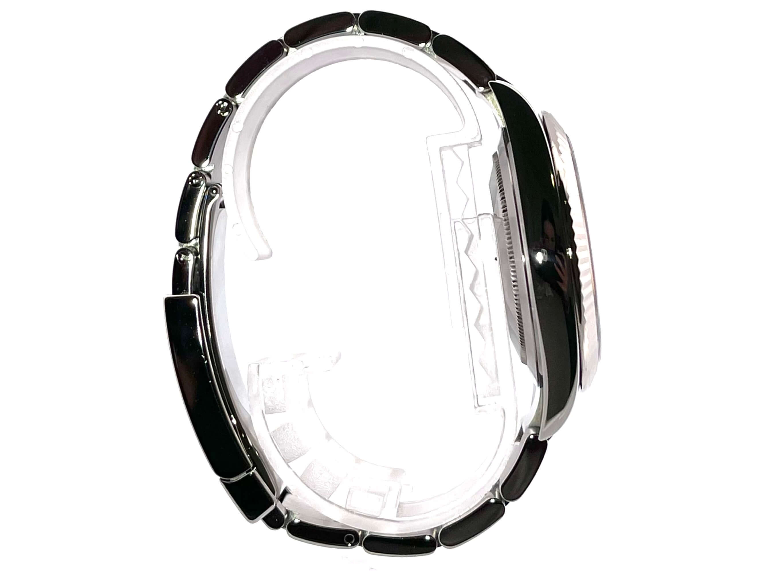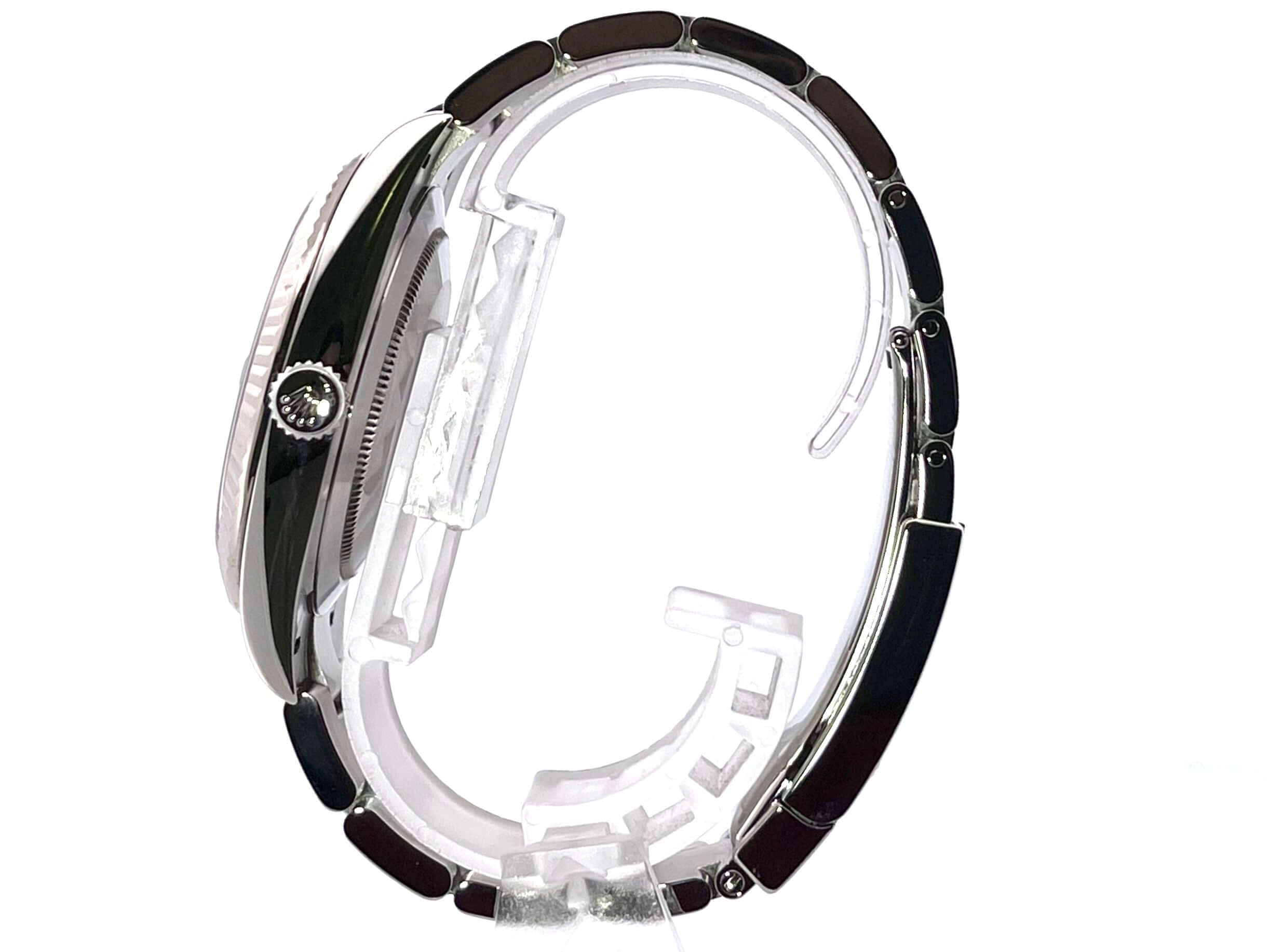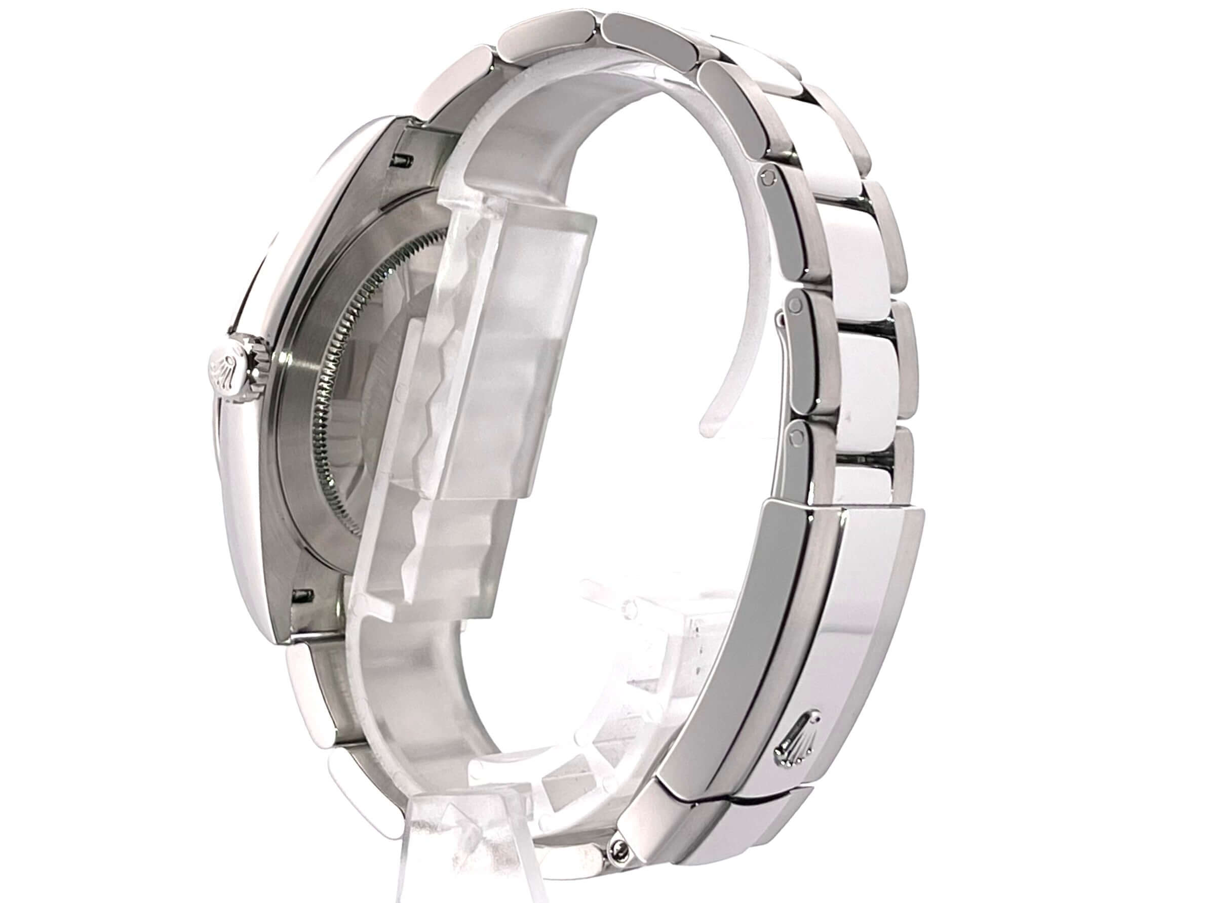Gehäuse aus Edelstahl poliert und satiniert, Gehäusedurchmesser 41 mm, geriffelte 18 kt Weißgold Lünette, Oyster Edelstahlband poliert und satiniert mit Faltschließe, blaues Zifferblatt mit römischen 18 kt Weißgold Ziffern, Automatikwerk, Rolex Manufakturkaliber 3235, 70 Stunden Gangreserve, Datumsanzeige, Chronometer, kratzfestes Saphirglas, verschraubte Krone, Edelstahlboden verschraubt, Wasserdicht bis zu 10 bar.