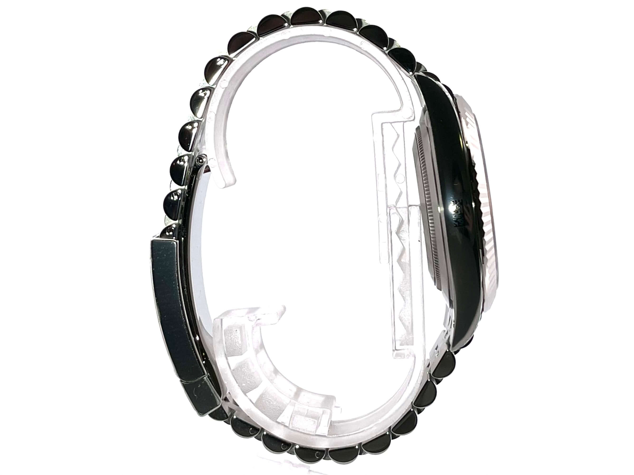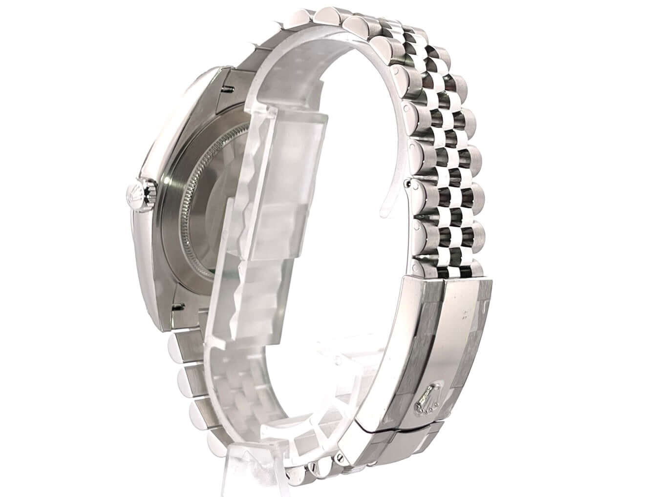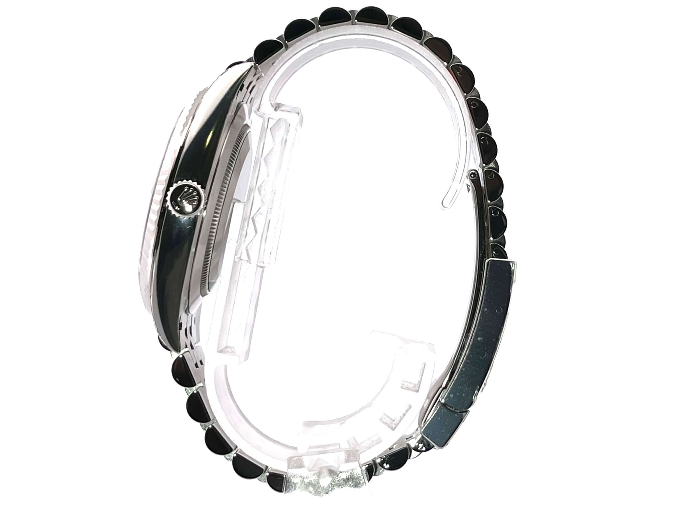 Gehäuse aus Edelstahl poliert und satiniert, Gehäusedurchmesser 41 mm, geriffelte 18 kt Weißgold Lünette, Jubile Armband aus Edelstahl poliert und satiniert mit Faltschließe, blaues Zifferblatt mit römischen Ziffern, Automatikwerk, Rolex Manufakturkaliber 3235, 70 Stunden Gangreserve, Datumsanzeige, Chronometer, kratzfestes Saphirglas, verschraubte Krone, Edelstahlboden verschraubt, Wasserdicht bis zu 10 bar.