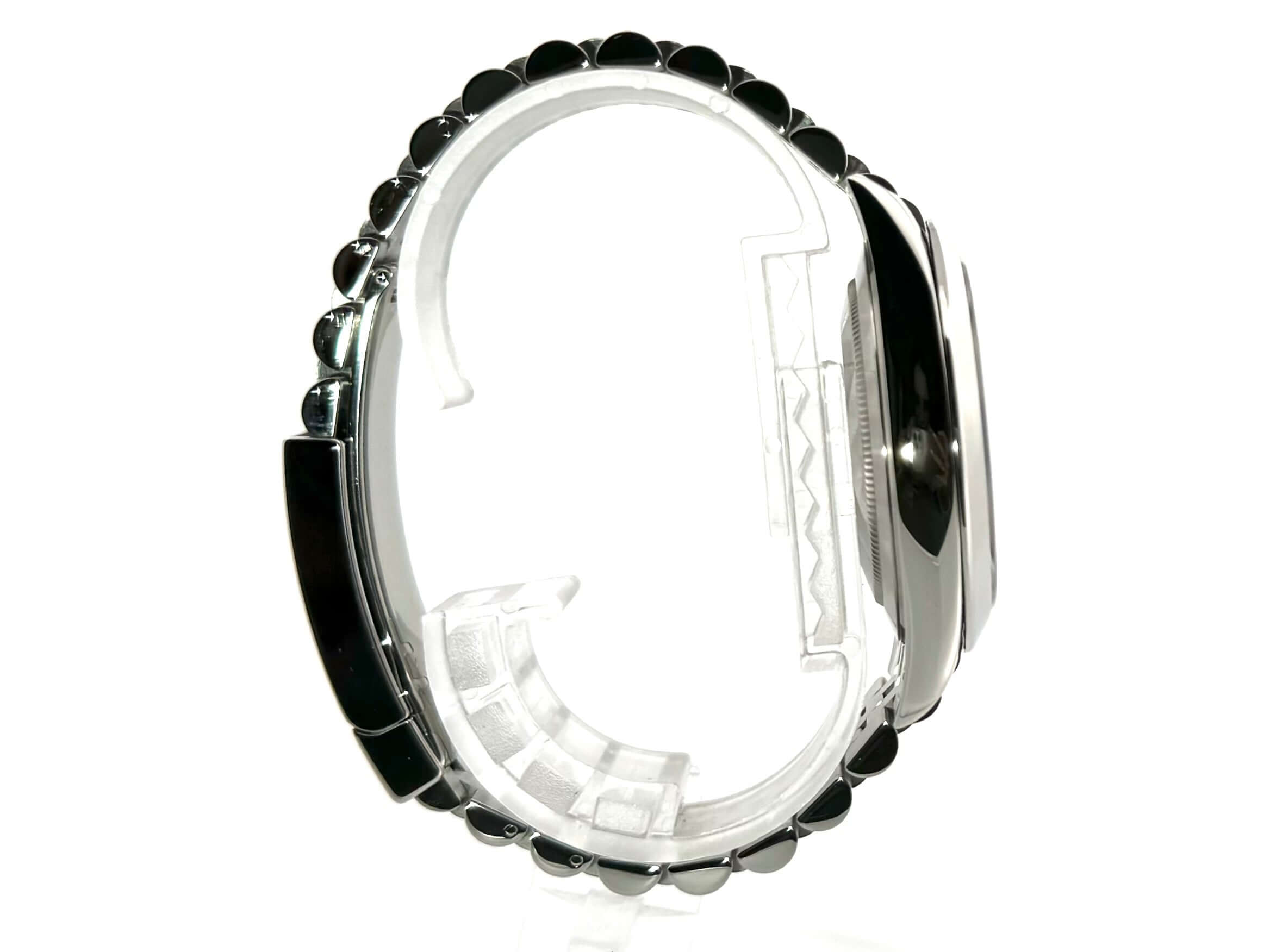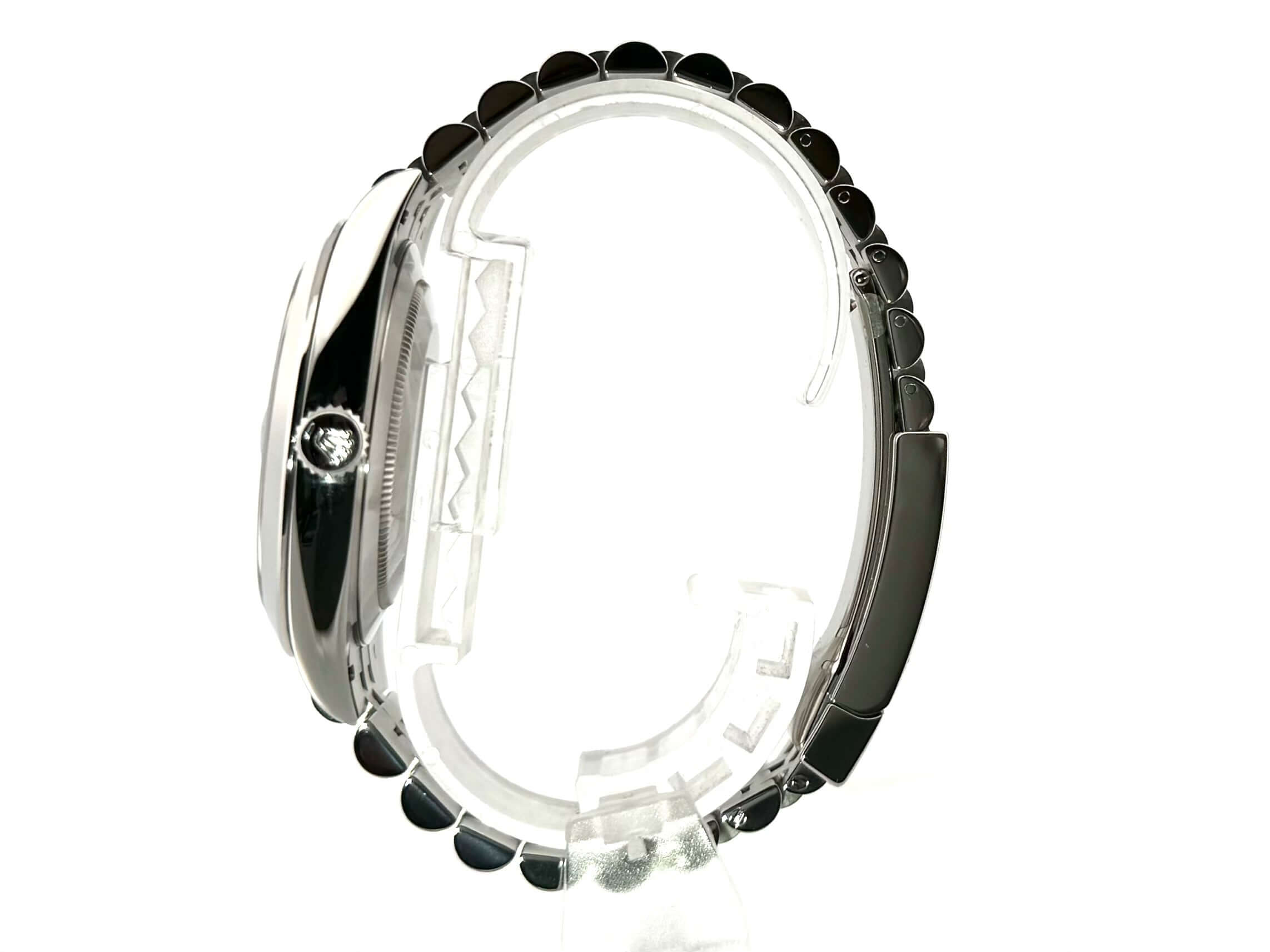 Gehäuse aus Edelstahl poliert und satiniert, Gehäusedurchmesser 41 mm, polierte Edelstahl Lünette, Jubile-Edelstahlband poliert und satiniert mit Faltschließe, Zifferblatt Mintgrün mit 18 kt Weißgold Leuchtindizes, Leuchtzeiger, Automatikwerk, Rolex Manufakturkaliber 3235, Chronometer, 70 Stunden Gangreserve, Datumsanzeige, kratzfestes Saphirglas, verschraubte Krone, Edelstahlboden verschraubt, wasserdicht bis zu 10 bar.