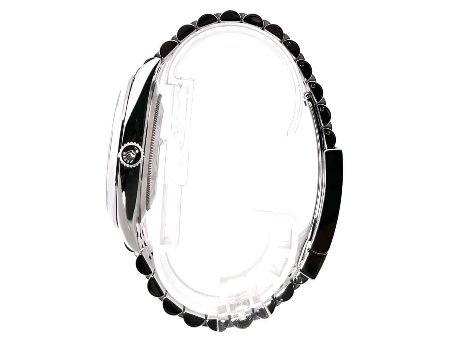 Gehäuse aus Edelstahl poliert und satiniert, Gehäusedurchmesser 41 mm, polierte Edelstahl Lünette, Jubile Edelstahlband poliert und satiniert mit Faltschließe, Zifferblatt Mintgrün Riffelmuster mit 18 kt Weißgold Leuchtindizes, Leuchtzeiger, Automatikwerk, Rolex Manufakturkaliber 3235, Chronometer, 70 Stunden Gangreserve, Datumsanzeige, kratzfestes Saphirglas, verschraubte Krone, Edelstahlboden verschraubt, Wasserdicht bis zu 10 bar.