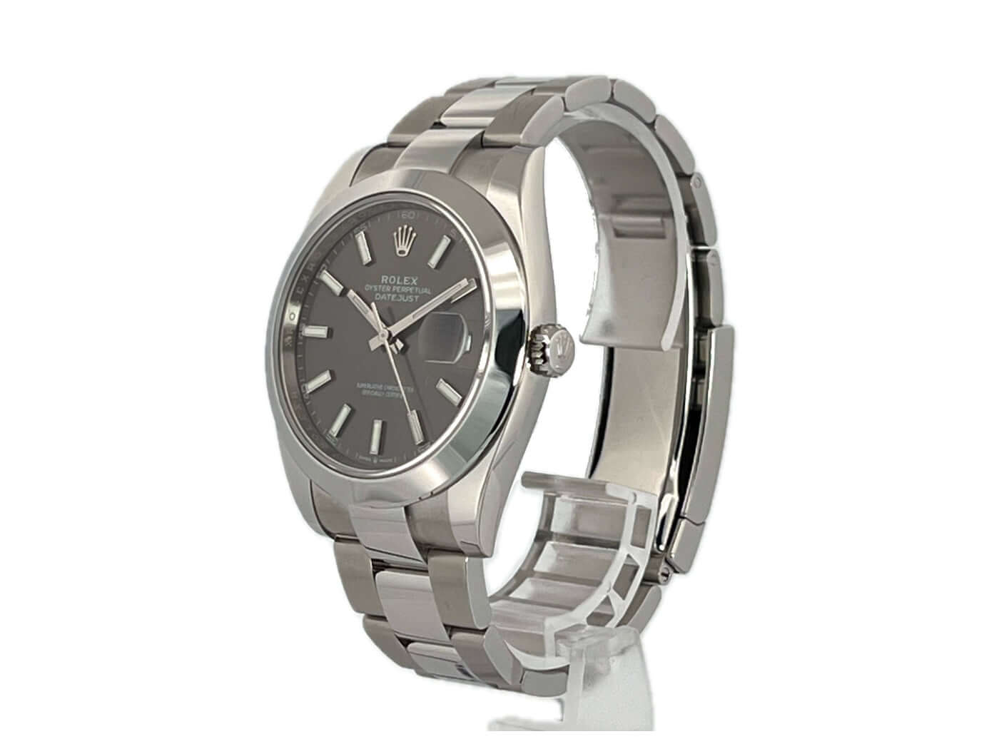 Gehäuse aus Edelstahl poliert und satiniert, Gehäusedurchmesser 41 mm, polierte Edelstahl Lünette, Oyster Edelstahlband poliert und satiniert mit Faltschließe, Rhodiumfarbenes Zifferblatt mit 18 kt Weißgold Leuchtindizes, Leuchtzeiger, Automatikwerk, Rolex Manufakturkaliber 3235, 70 Stunden Gangreserve, Datumsanzeige, Chronometer, kratzfestes Saphirglas, verschraubte Krone, Edelstahlboden verschraubt, Wasserdicht bis zu 10 bar.