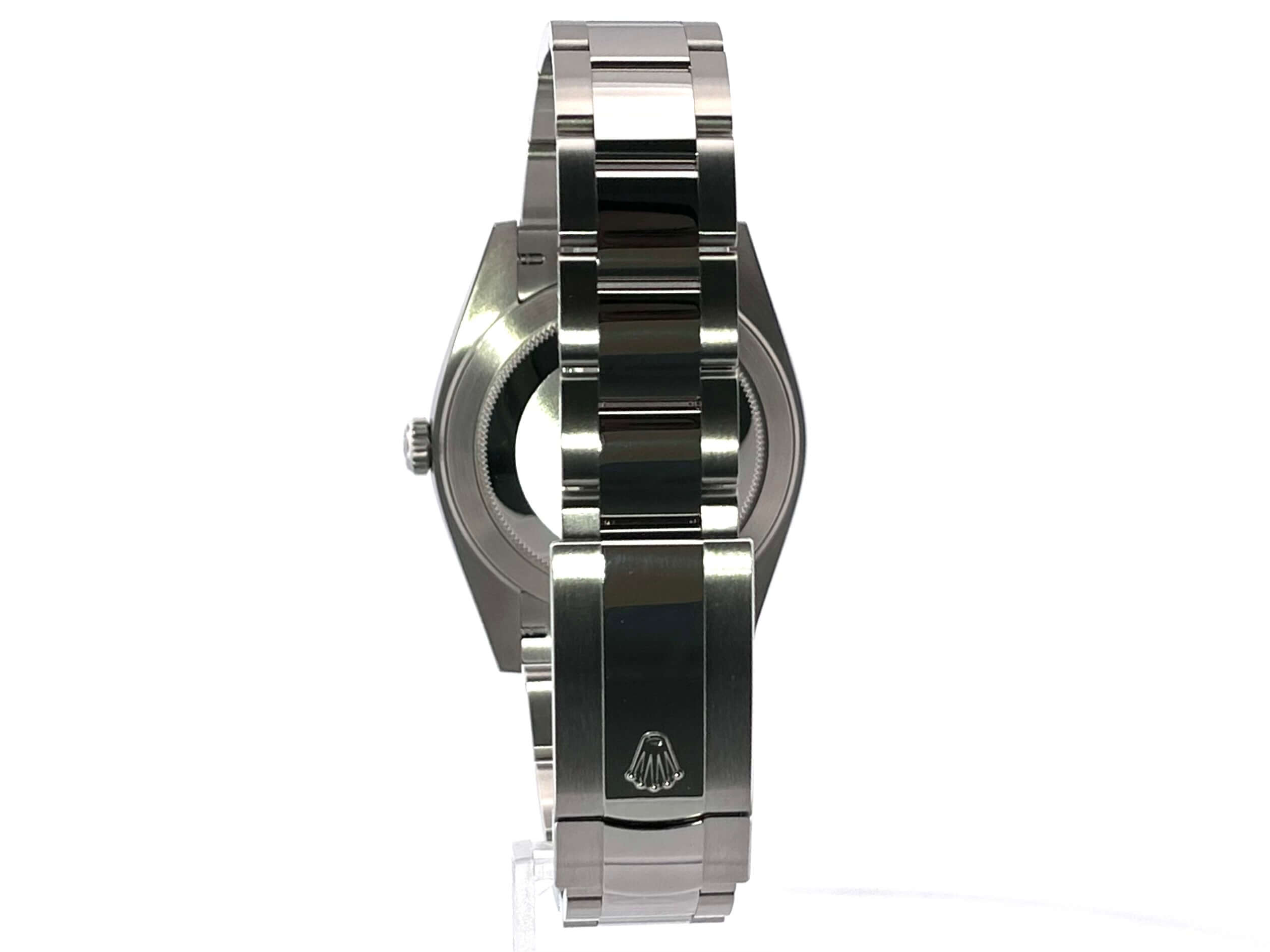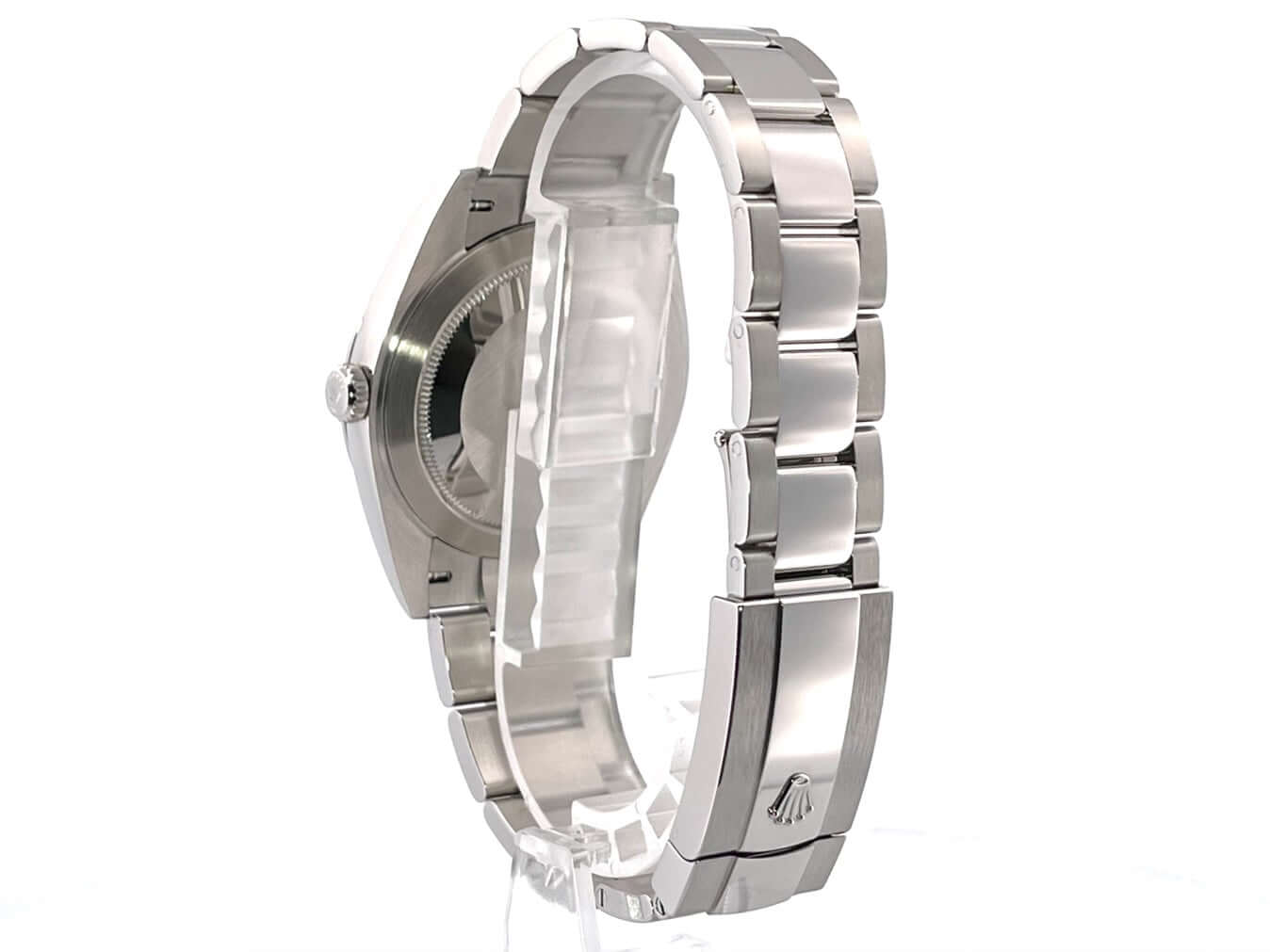 Gehäuse aus Edelstahl poliert und satiniert, Gehäusedurchmesser 41 mm, polierte Edelstahl Lünette, Oyster Edelstahlband poliert und satiniert mit Faltschließe, Zifferblatt Rhodiumfarben mit römischen Ziffern, Leuchtzeiger, Automatikwerk, Rolex Manufakturkaliber 3235, Chronometer, 70 Stunden Gangreserve, Datumsanzeige, kratzfestes Saphirglas, verschraubte Krone, Edelstahlboden verschraubt, Wasserdicht bis zu 10 bar.