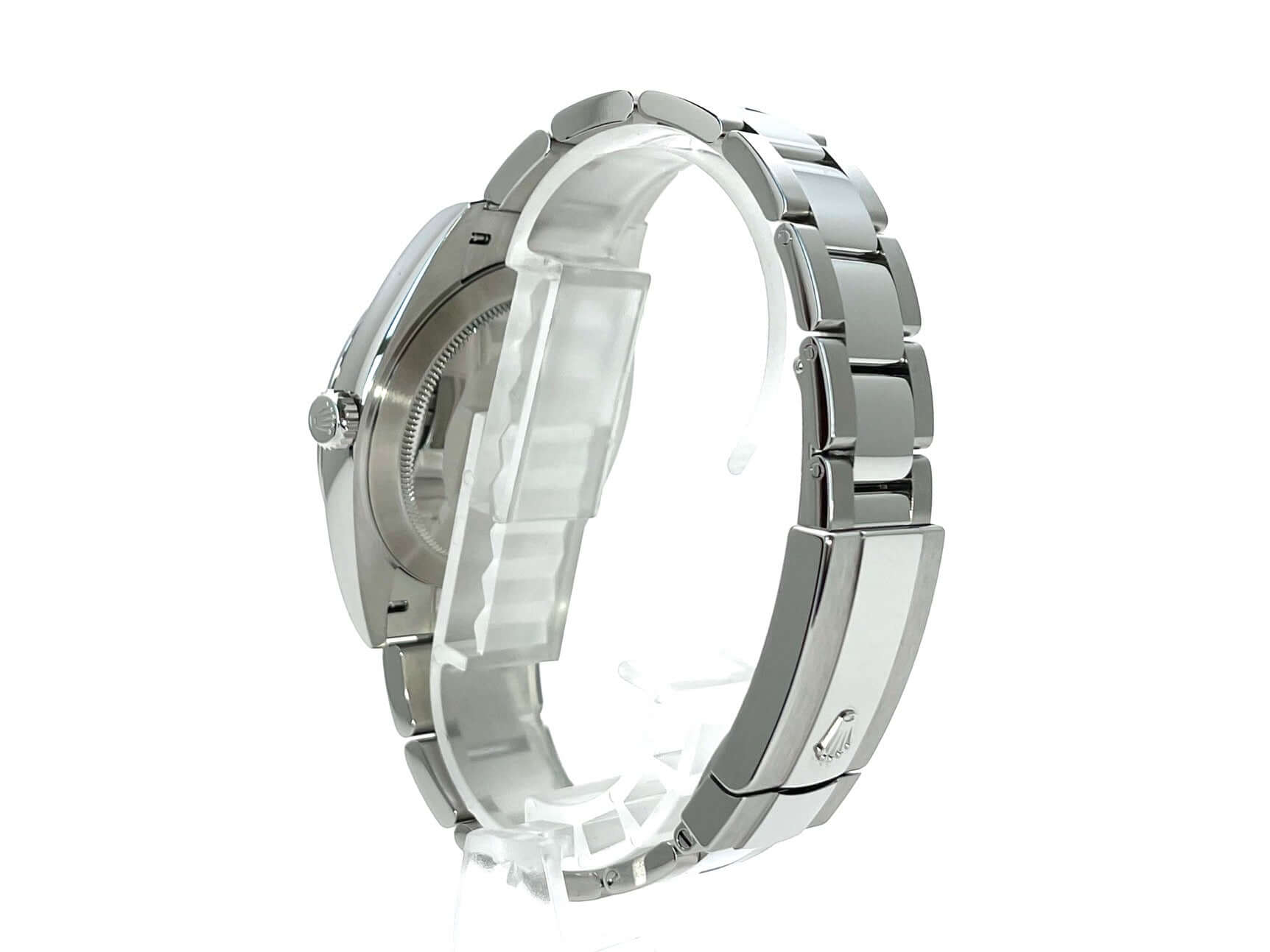 Gehäuse aus Edelstahl poliert und satiniert, Gehäusedurchmesser 41 mm, polierte Edelstahl Lünette, Oyster Edelstahlband poliert und satiniert mit Faltschließe, Zifferblatt Schwarz mit 18 kt Weißgold Leuchtindizes, Leuchtzeiger, Automatikwerk, Rolex Manufakturkaliber 3235, 70 Stunden Gangreserve, Datumsanzeige, Chronometer, kratzfestes Saphirglas, verschraubte Krone, Edelstahlboden verschraubt, Wasserdicht bis zu 10 bar.