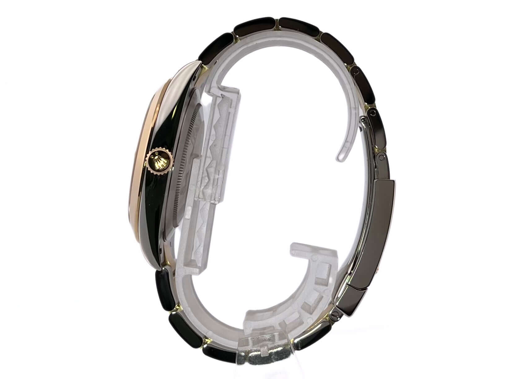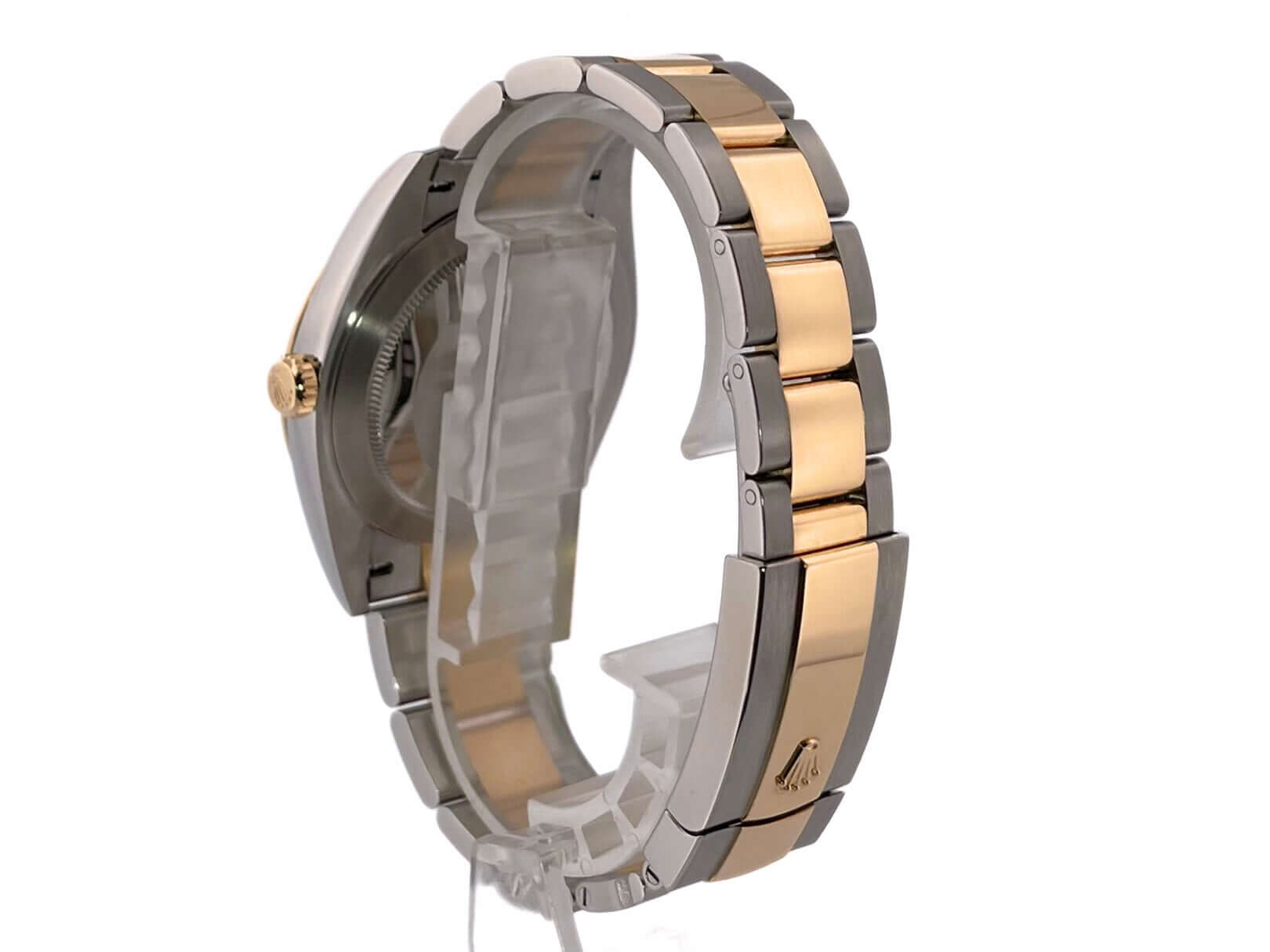 Gehäuse aus Edelstahl / Gelbgold poliert und satiniert, Gehäusedurchmesser 41 mm, polierte 18 kt Gelbgold Lünette, Oyster Armband aus Edelstahl / 18 kt Gelbgold poliert und satiniert mit Faltschließe, golden Riffelmuster mit 18 kt Gelbgold Leuchtindizes, 18 kt Gelbgold Leuchtzeiger, Automatikwerk, Rolex Manufakturkaliber 3235, 70 Stunden Gangreserve, Datumsanzeige, Chronometer, kratzfestes Saphirglas, verschraubte 18 kt Gelbgold Krone, Edelstahlboden verschraubt, wasserdicht bis zu 10 bar.
