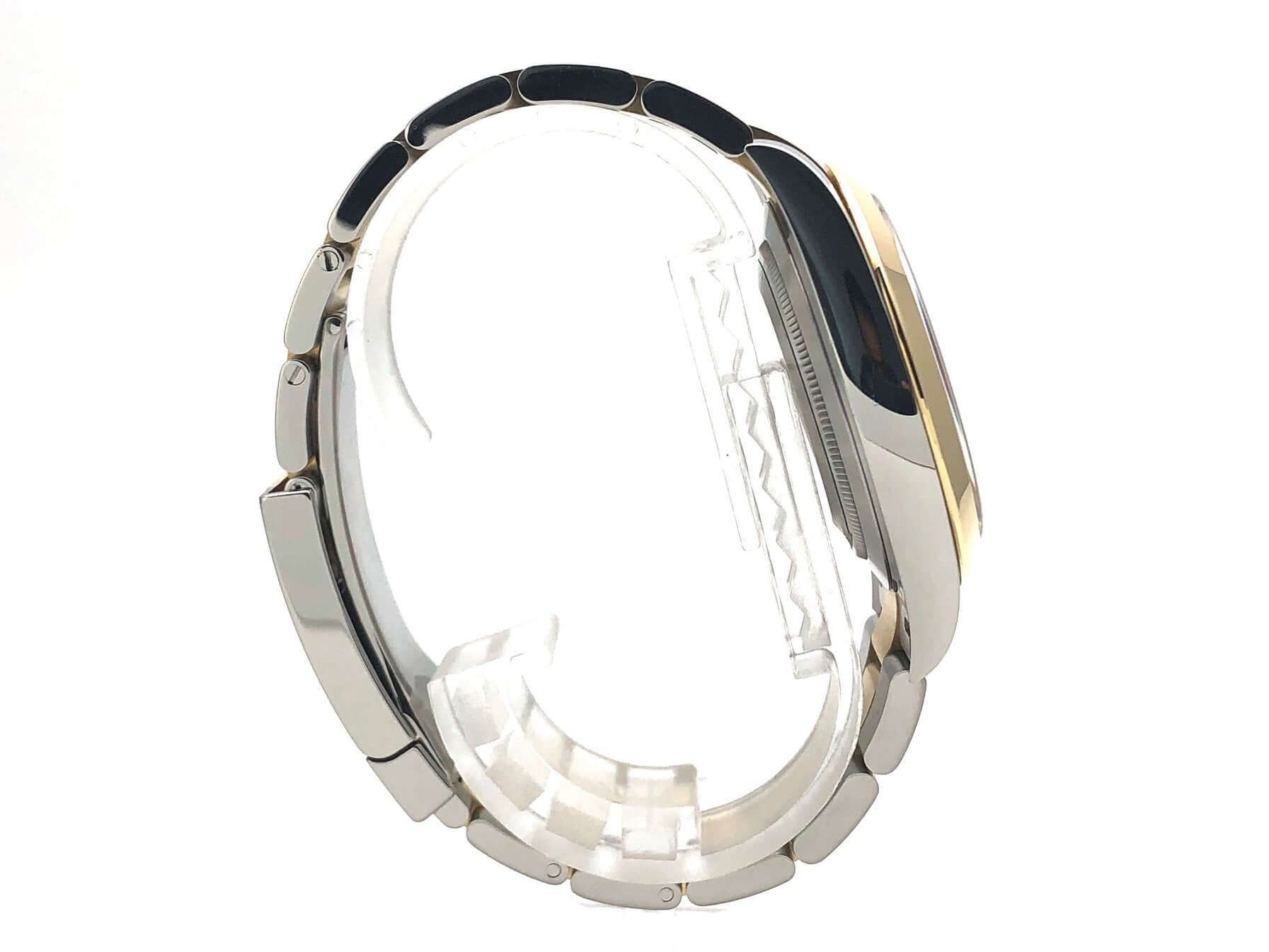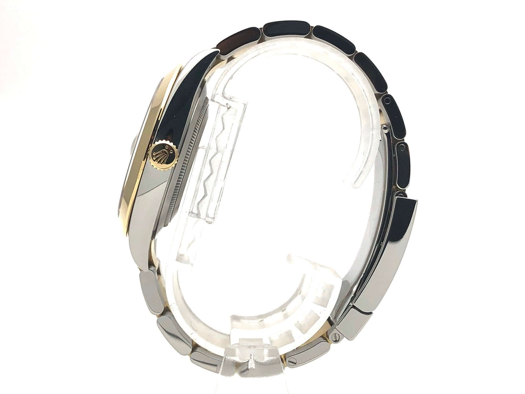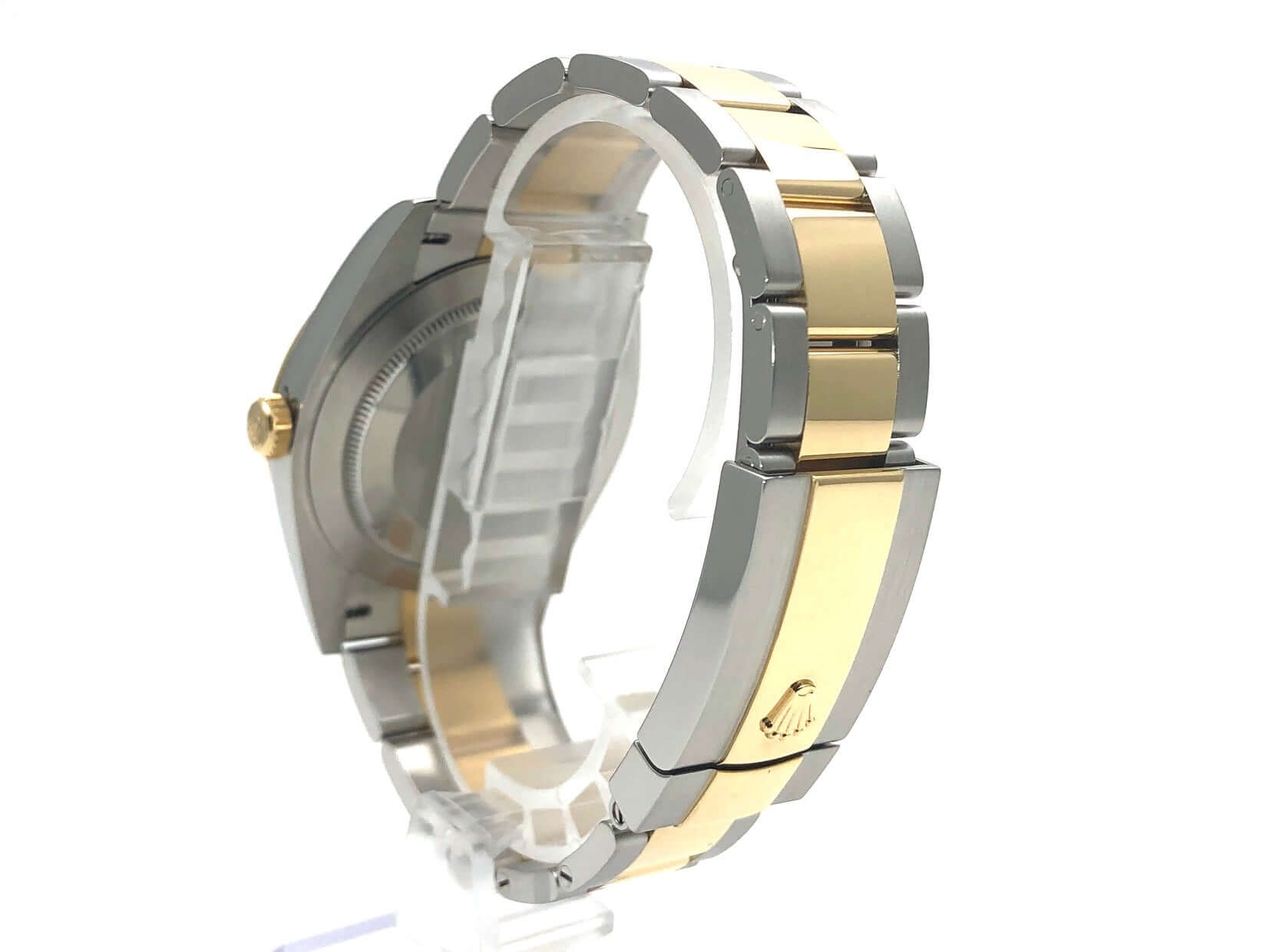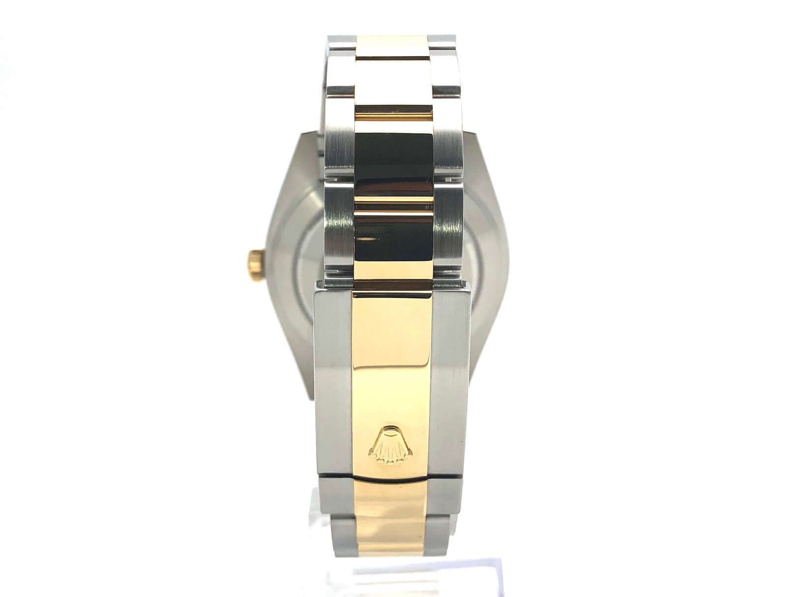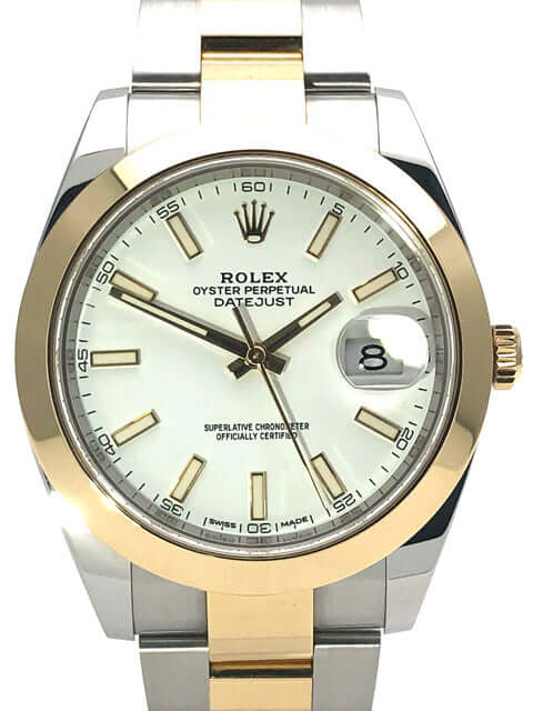 Gehäuse aus Edelstahl / Gelbgold poliert und satiniert, Gehäusedurchmesser 41 mm, polierte 18 kt Gelbgold Lünette, Oyster Armband aus Edelstahl / 18 kt Gelbgold poliert und satiniert mit Faltschließe, weißes Zifferblatt mit 18 kt Gelbgold LeuchtIndexen, 18 kt Gelbgold Leuchtzeiger, Automatikwerk, Rolex Manufakturkaliber 3235, Chronometer, 70 Stunden Gangreserve, Datumsanzeige, kratzfestes Saphirglas, verschraubte 18 kt Gelbgold Krone, Edelstahlboden verschraubt, Wasserdicht bis zu 10 bar.
