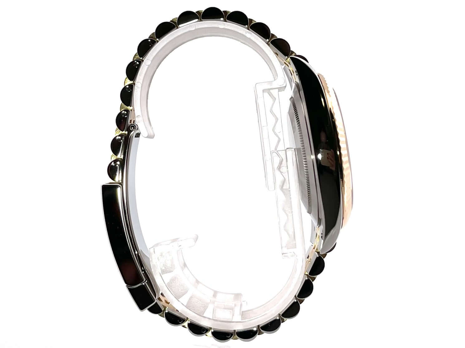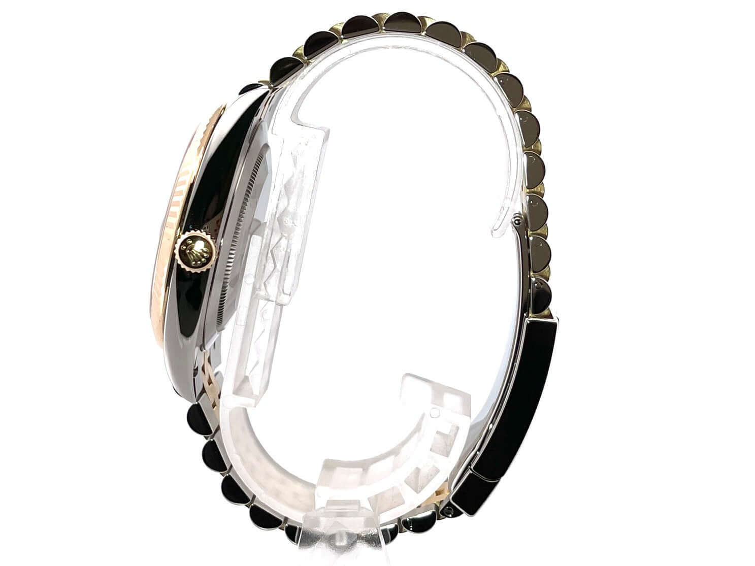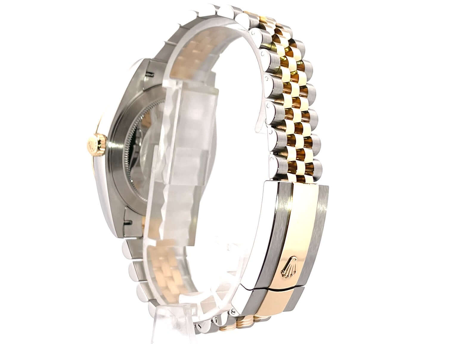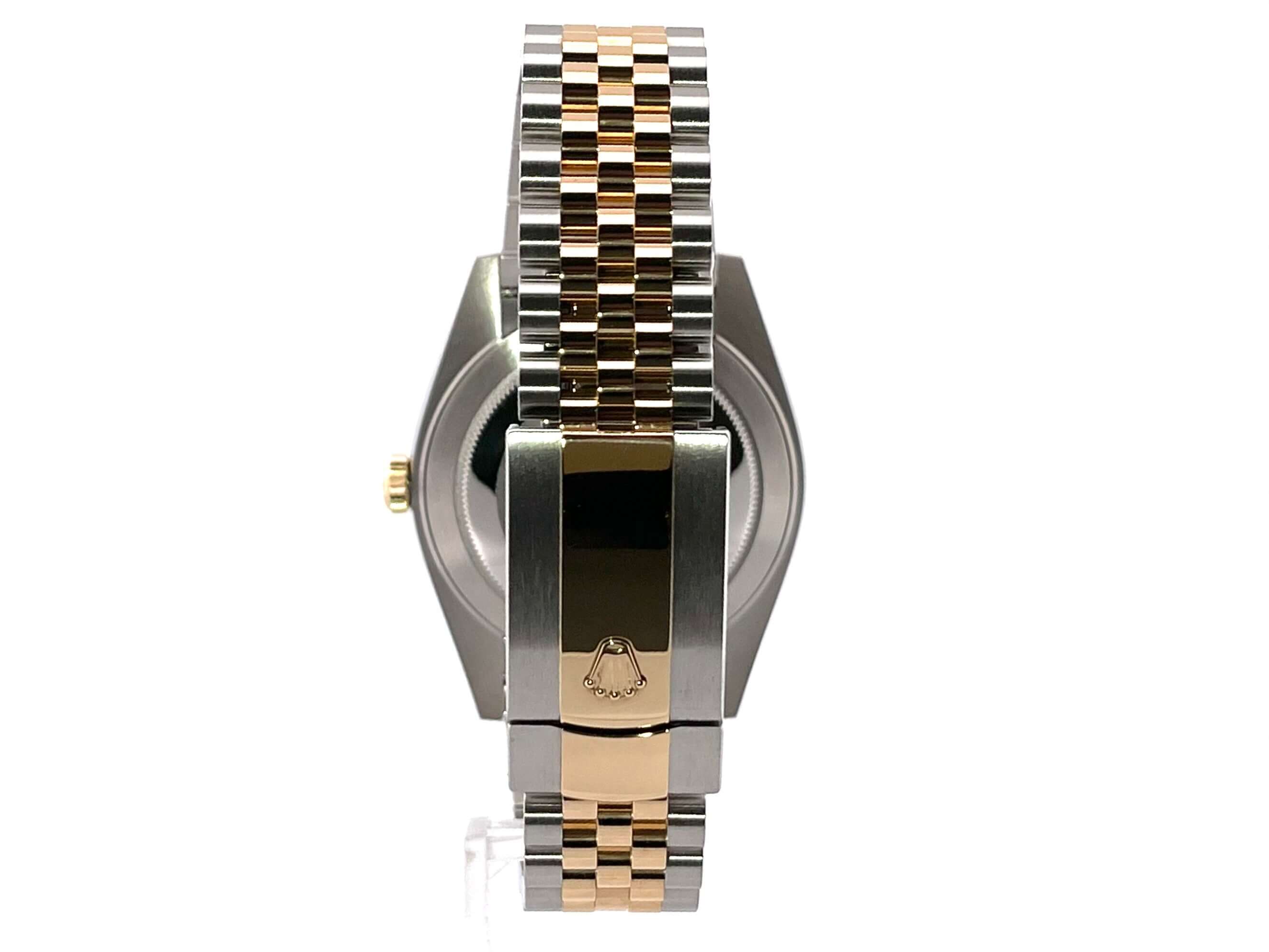 Gehäuse aus Edelstahl / Gelbgold poliert und satiniert, Gehäusedurchmesser 41 mm, geriffelte 18 kt Gelbgold Lünette, Jubile Armband aus Edelstahl / 18 kt Gelbgold poliert und satiniert mit Faltschließe, schwarzes Zifferblatt mit 10 aufgesetzten Diamanten, Automatikwerk, Rolex Manufakturkaliber 3235, Chronometer, 70 Stunden Gangreserve, kratzfestes Saphirglas, Datumsanzeige, verschraubte 18 kt Gelbgold Krone, Edelstahlboden verschraubt, Wasserdicht bis zu 10 bar.