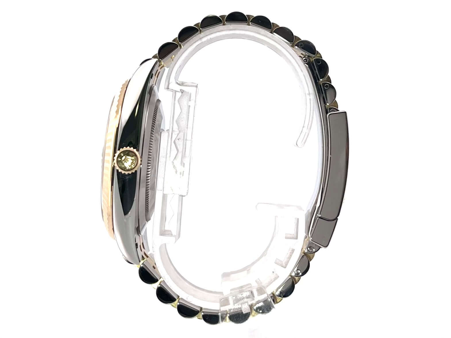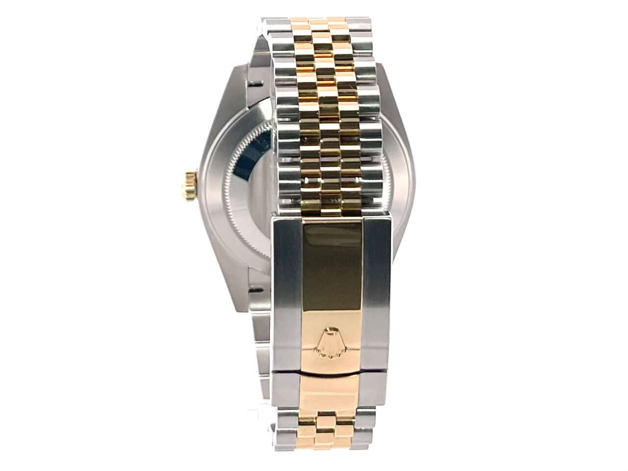 Gehäuse aus Edelstahl / Gelbgold poliert und satiniert, Gehäusedurchmesser 41 mm, polierte 18 kt Gelbgold Lünette, Jubile Armband aus Edelstahl / 18 kt Gelbgold poliert und satiniert mit Faltschließe, schwarzes Zifferblatt mit 18 kt Gelbgold Leuchtindizes, 18 kt Gelbgold Leuchtzeiger, Automatikwerk, Rolex Manufakturkaliber 3235, Chronometer, 70 Stunden Gangreserve, Datumsanzeige, kratzfestes Saphirglas, verschraubte 18 kt Gelbgold Krone, Edelstahlboden verschraubt, Wasserdicht bis zu 10 bar.