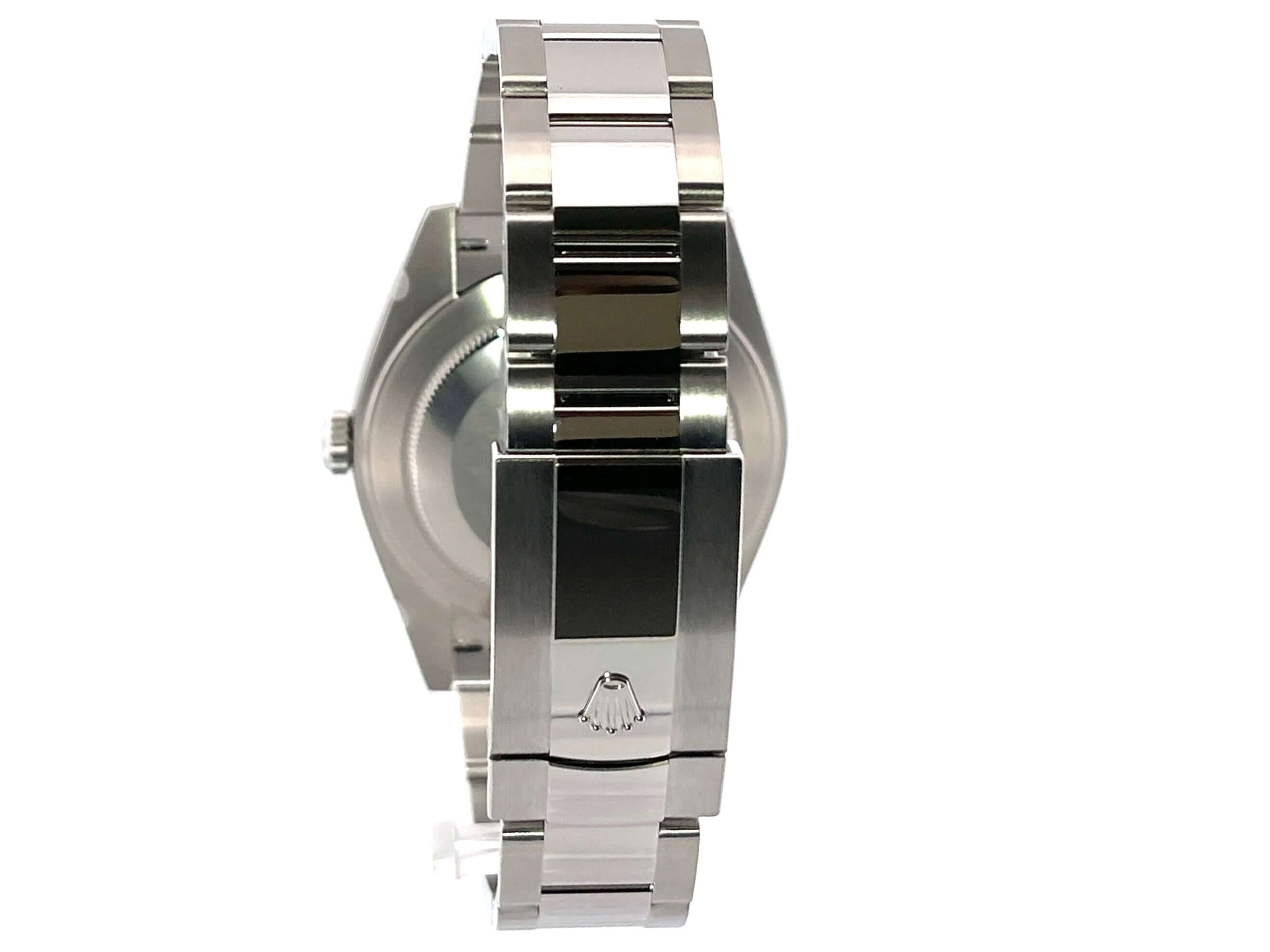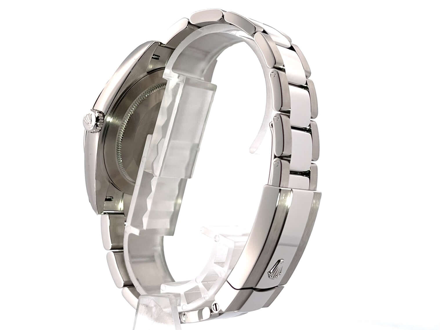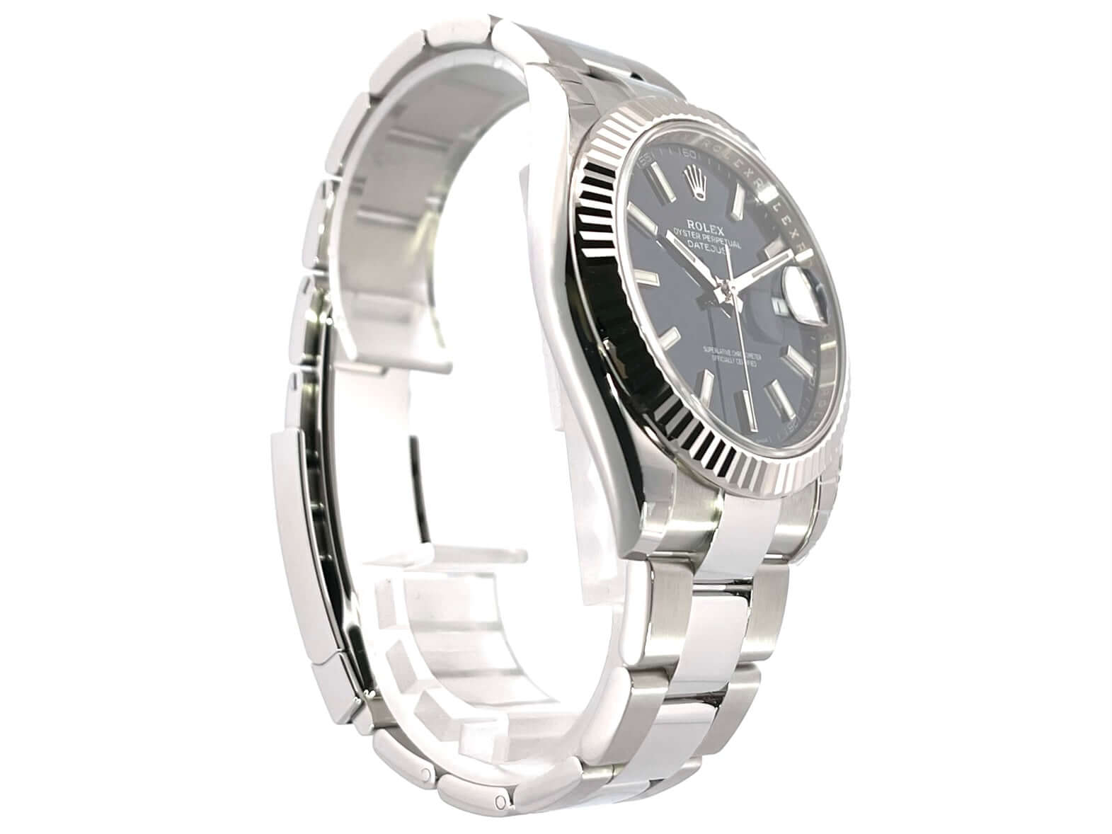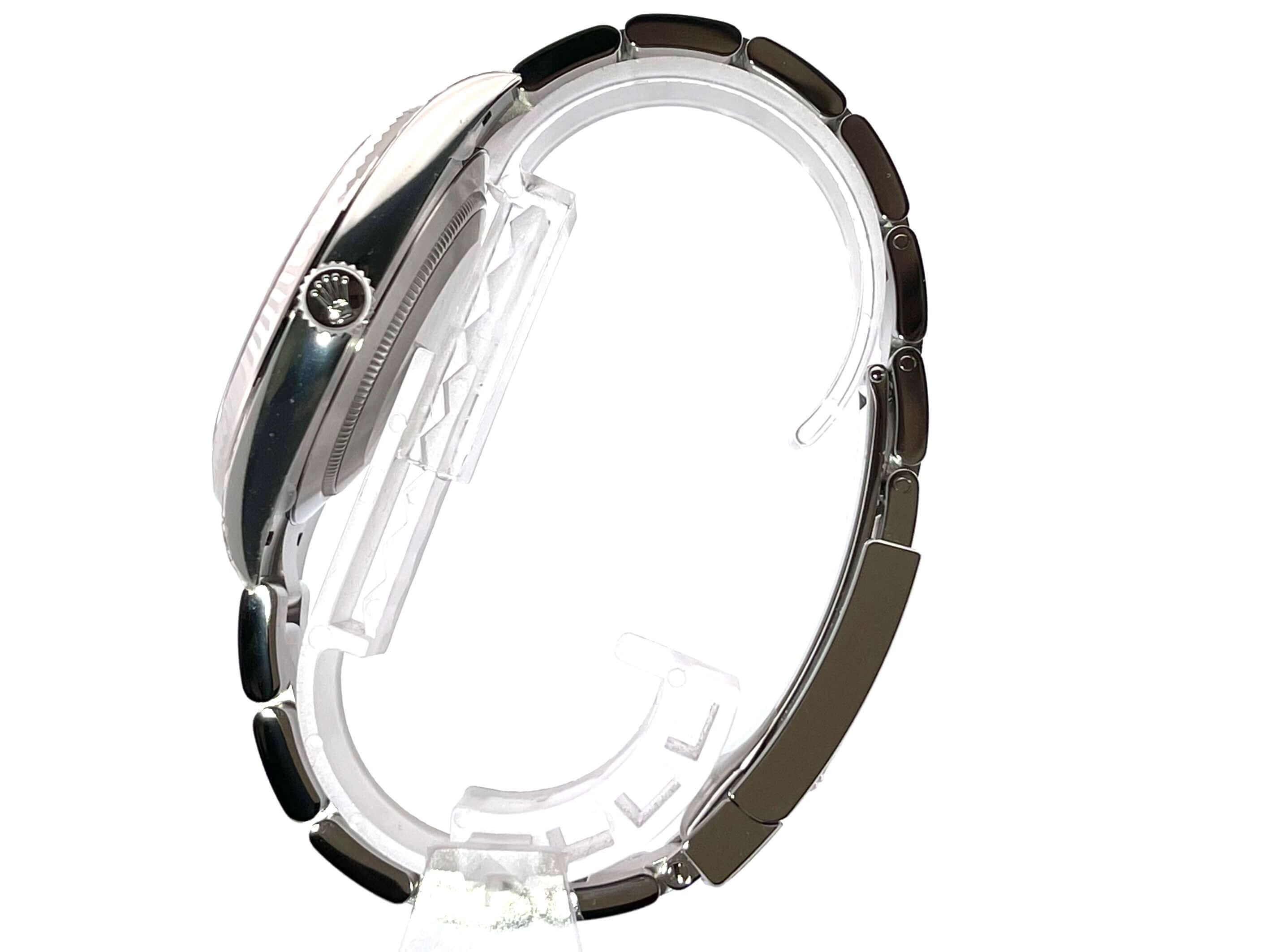 Gehäuse aus Edelstahl poliert und satiniert, Gehäusedurchmesser 41 mm, geriffelte 18 kt Weißgold Lünette, Oyster Edelstahlband poliert und satiniert mit Faltschließe, blaues Zifferblatt mit Leuchtindizes, Leuchtzeiger, Automatikwerk, Rolex Manufakturkaliber 3235, 70 Stunden Gangreserve, Datumsanzeige, Chronometer, kratzfestes Saphirglas, verschraubte Krone, Edelstahlboden verschraubt, Wasserdicht bis zu 10 bar,