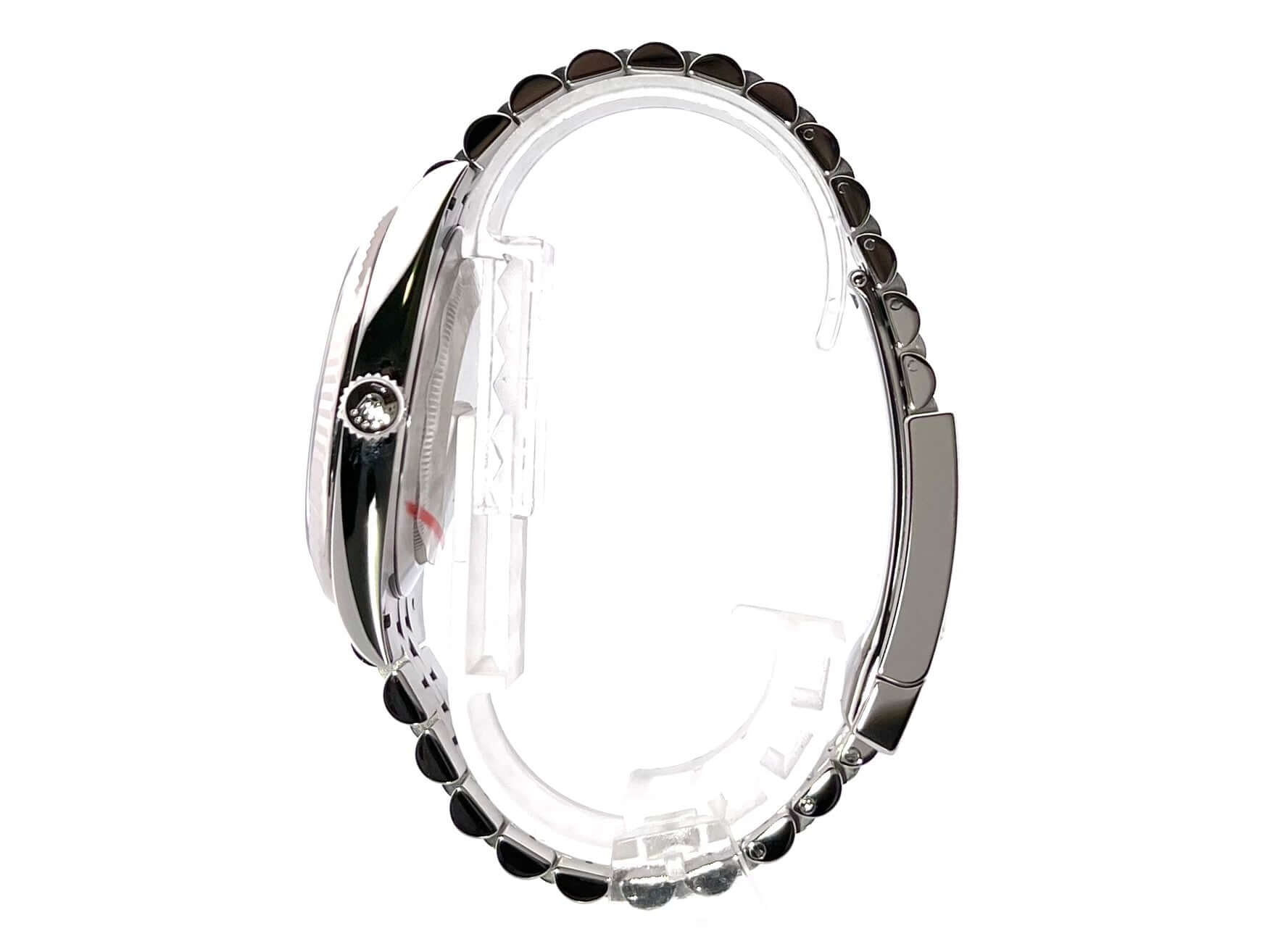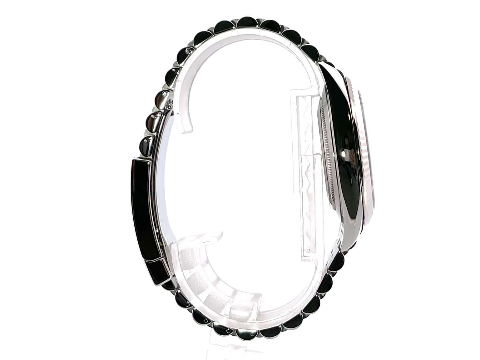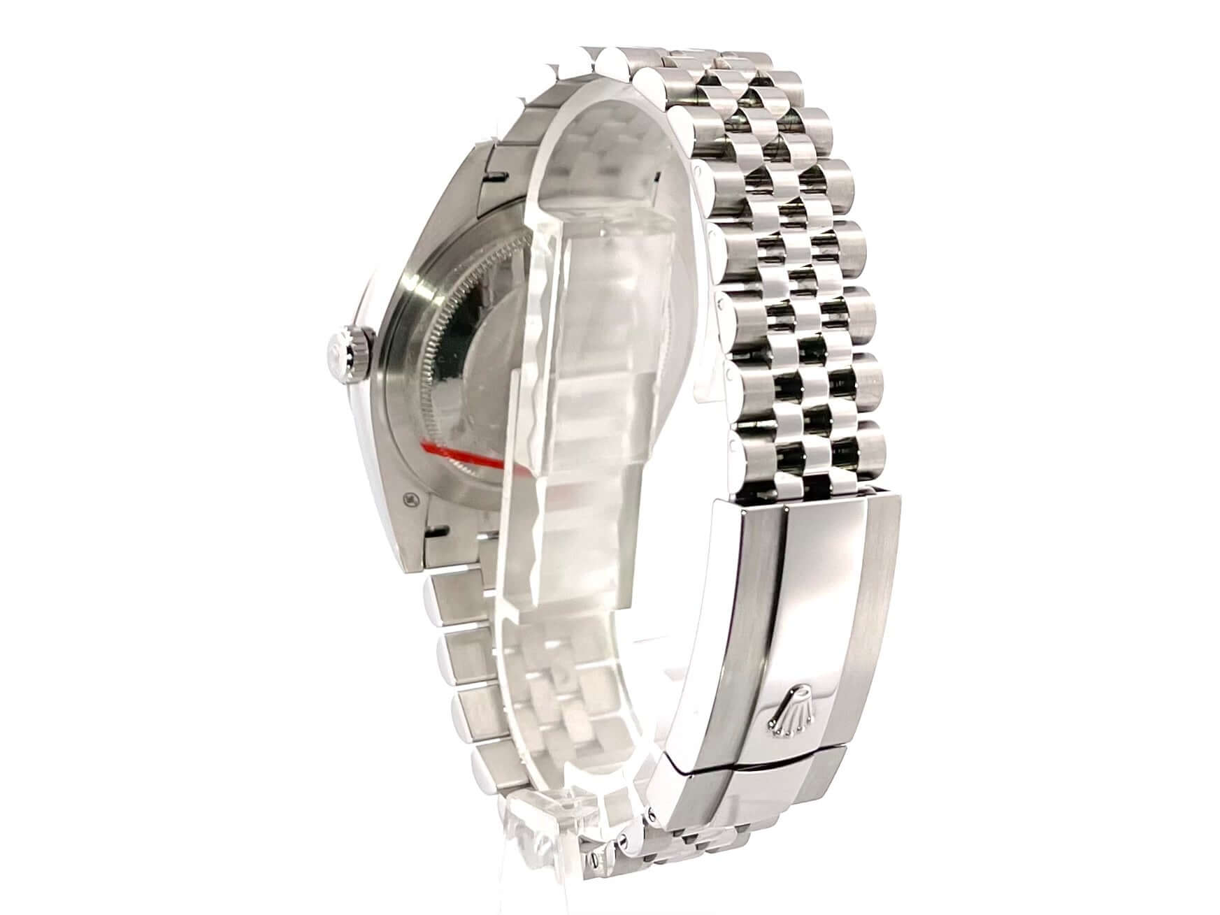 Gehäuse aus Edelstahl poliert und satiniert, Gehäusedurchmesser 41 mm, geriffelte 18 kt Weißgold Lünette, Jubile Edelstahlband poliert und satiniert mit Faltschließe, blaues Diamantzifferblatt, Automatikwerk, Rolex Manufakturkaliber 3235, 70 Stunden Gangreserve, Datumsanzeige, Chronometer, kratzfestes Saphirglas, verschraubte Krone, Edelstahlboden verschraubt, Wasserdicht bis zu 10 bar.