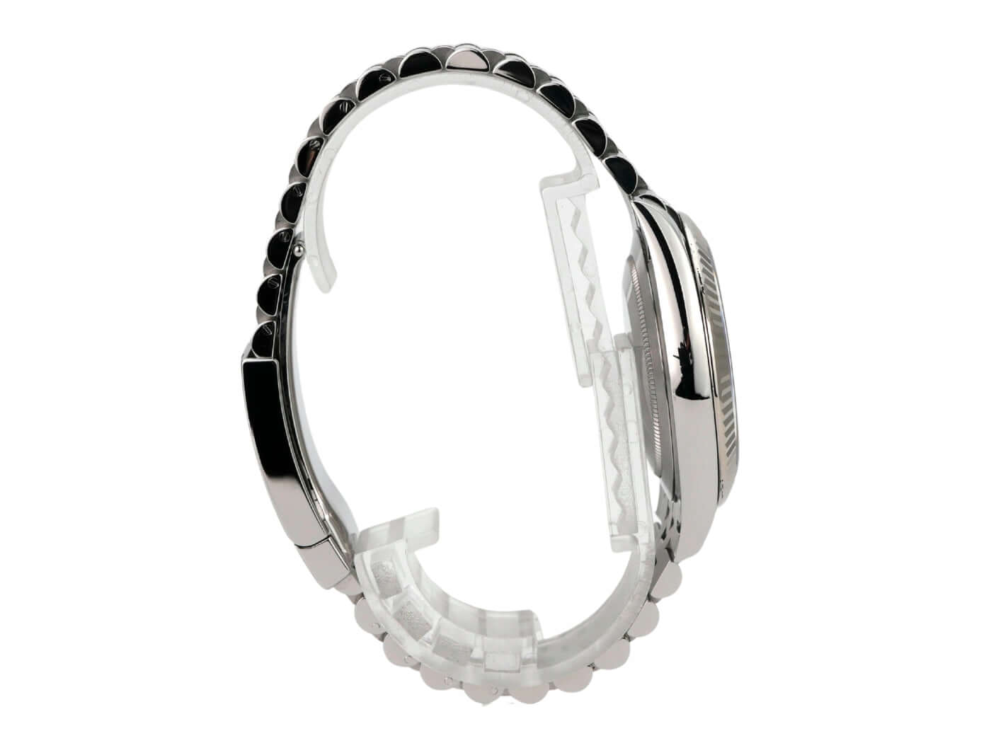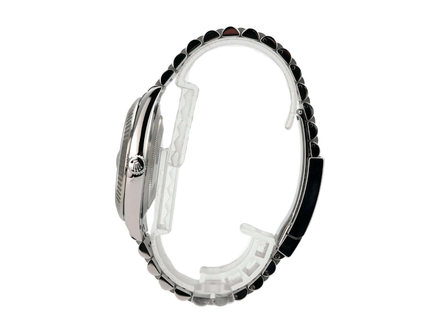 Gehäuse aus Edelstahl poliert und satiniert, Gehäusedurchmesser 41 mm, geriffelte 18 kt Weißgold-Lünette, Jubile Edelstahlband poliert und satiniert mit Faltschließe, blaues Diamantzifferblatt, Automatikwerk, Rolex-Manufakturkaliber 3235, 70 Stunden Gangreserve, Datumsanzeige, Chronometer, kratzfestes Saphirglas, verschraubte Krone, Edelstahlboden verschraubt, wasserdicht bis zu 10 bar.