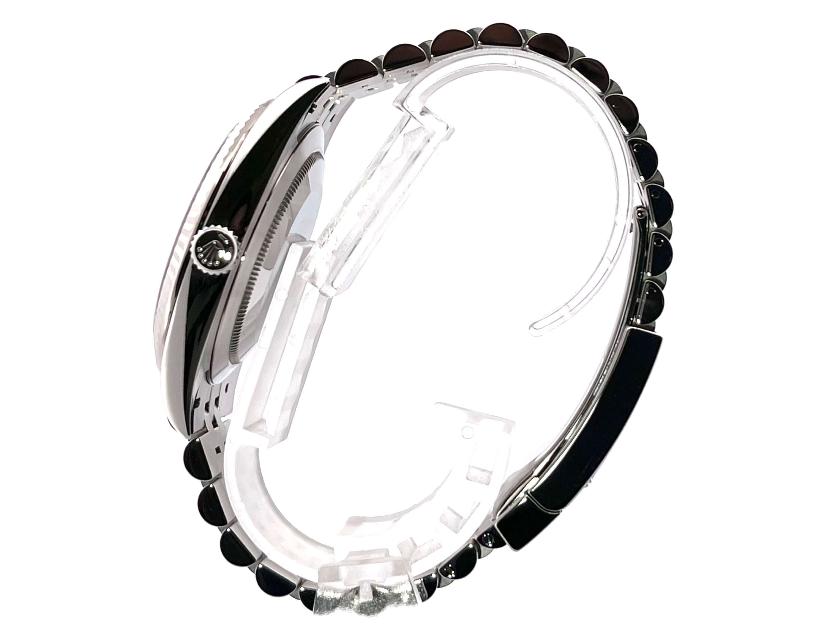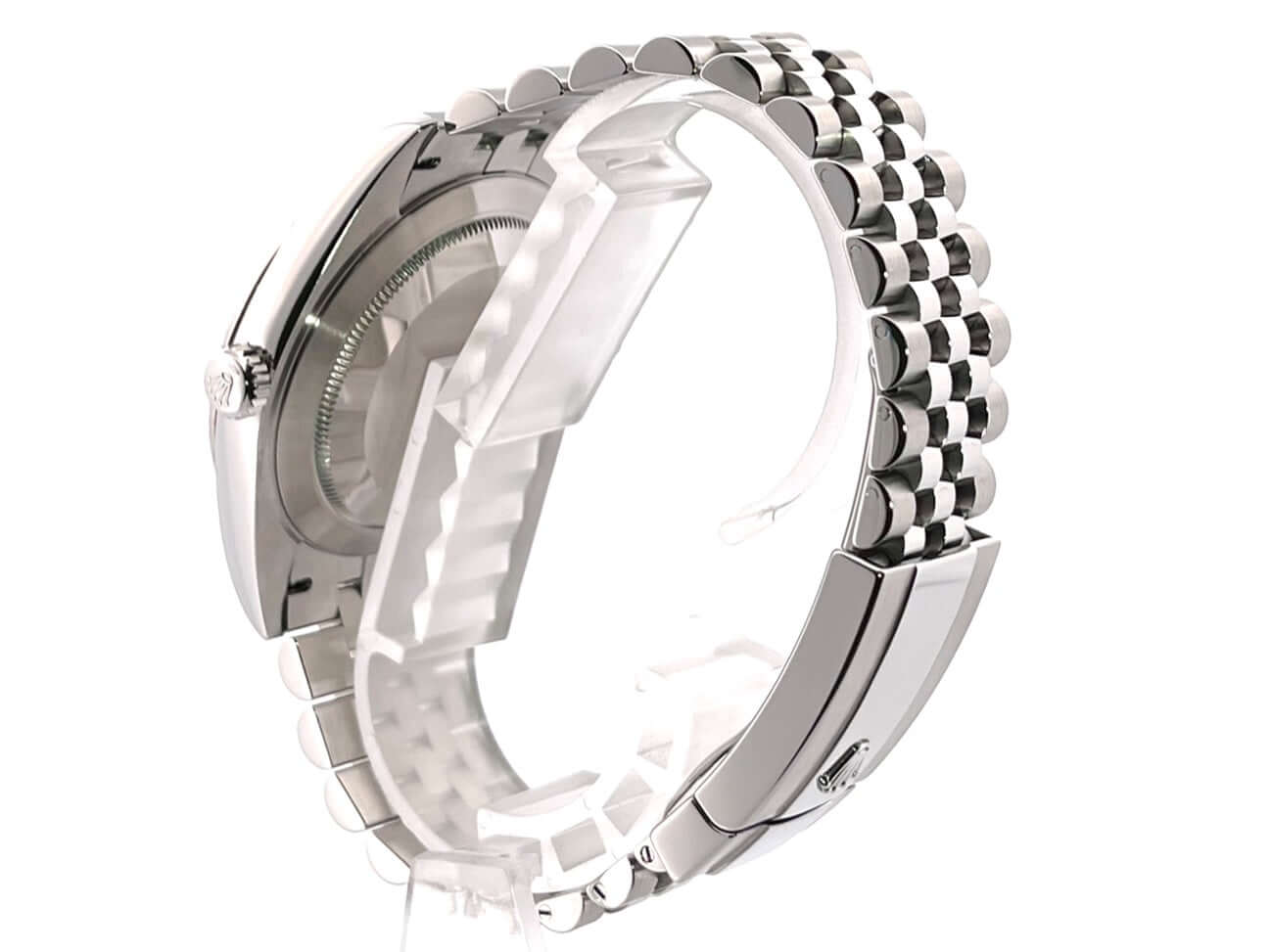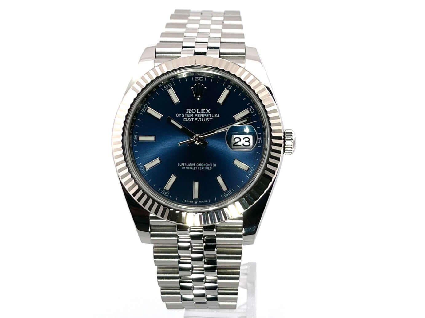 Gehäuse aus Edelstahl poliert und satiniert, Gehäusedurchmesser 41 mm, geriffelte 18 kt Weißgold Lünette, Jubile Armband aus Edelstahl poliert und satiniert mit Faltschließe, blaues Zifferblatt mit 18 kt Weißgold Leuchtindizes, Leuchtzeiger, Automatikwerk, Rolex Manufakturkaliber 3235, 70 Stunden Gangreserve, Datumsanzeige, Chronometer, kratzfestes Saphirglas, verschraubte Krone, Edelstahlboden verschraubt, Wasserdicht bis zu 10 bar.