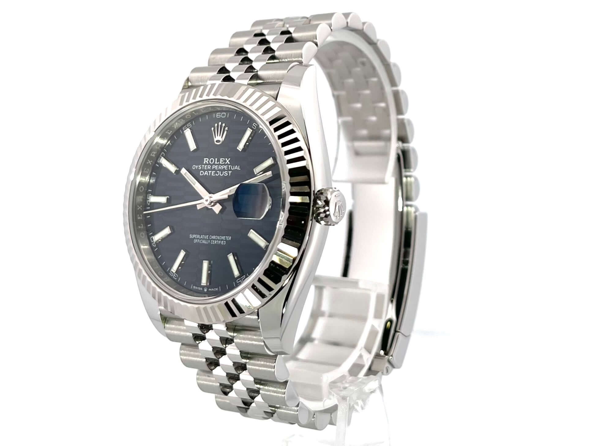 Rolex Datejust 41 Edelstahl Weißgold 126334 Blau Riffelmuster Jubile-Band