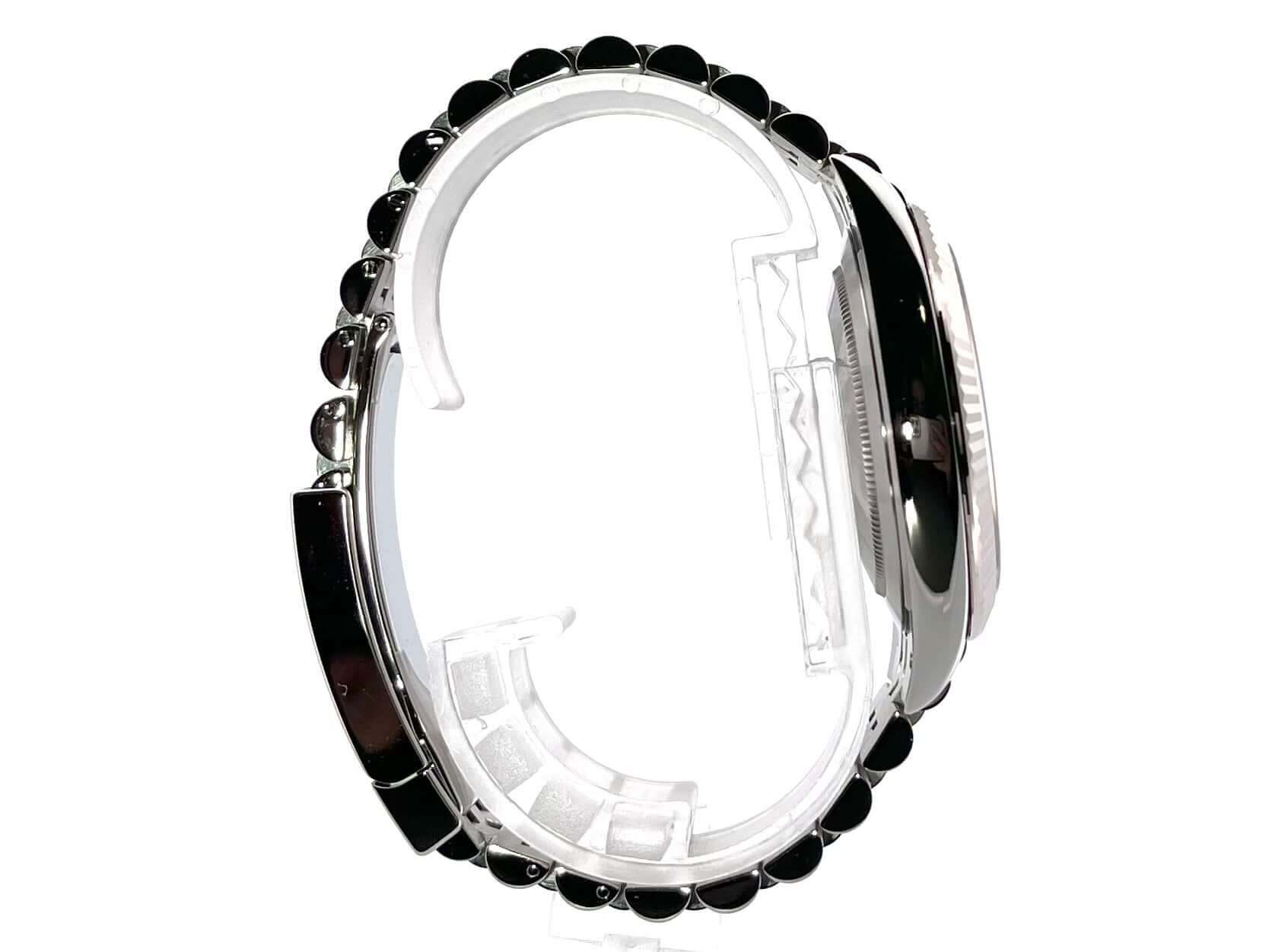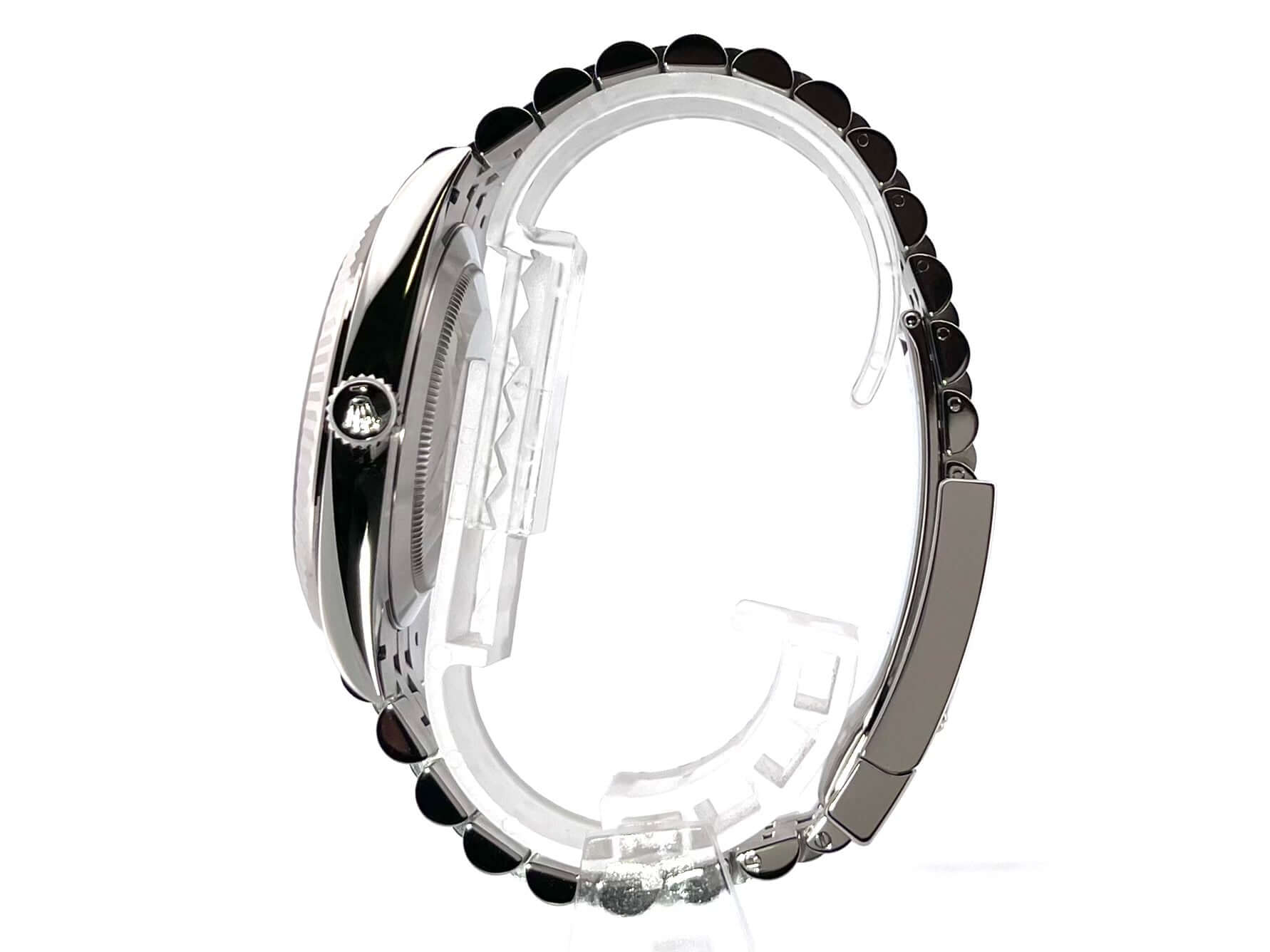Gehäuse aus Edelstahl poliert und satiniert, Gehäusedurchmesser 41 mm, geriffelte 18 kt Weißgold Lünette, Jubile Armband aus Edelstahl poliert und satiniert mit Faltschließe, blaues Zifferblatt mit Riffelmuster und 18 kt Weißgold Leuchtindizes, Leuchtzeiger, Automatikwerk, Rolex Manufakturkaliber 3235, 70 Stunden Gangreserve, Datumsanzeige, Chronometer, kratzfestes Saphirglas, verschraubte Krone, Edelstahlboden verschraubt, Wasserdicht bis zu 10 bar.