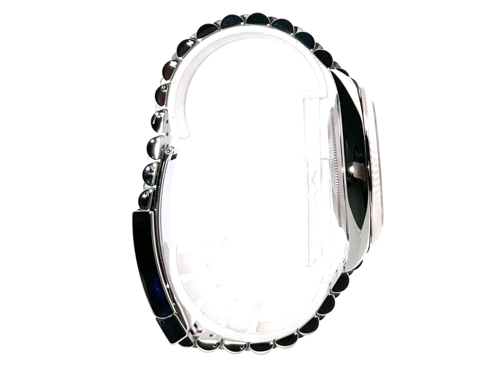 Gehäuse aus Edelstahl poliert und satiniert, Gehäusedurchmesser 41 mm, geriffelte 18 kt Weißgold Lünette, Jubile Armband aus Edelstahl poliert und satiniert mit Faltschließe, Mintgrünes Zifferblatt mit 18 kt Weißgold Leuchtindizes, Leuchtzeiger, Automatikwerk, Rolex Manufakturkaliber 3235, Chronometer, 70 Stunden Gangreserve, Datumsanzeige, kratzfestes Saphirglas, verschraubte Krone, Edelstahlboden verschraubt, Wasserdicht bis zu 10 bar.