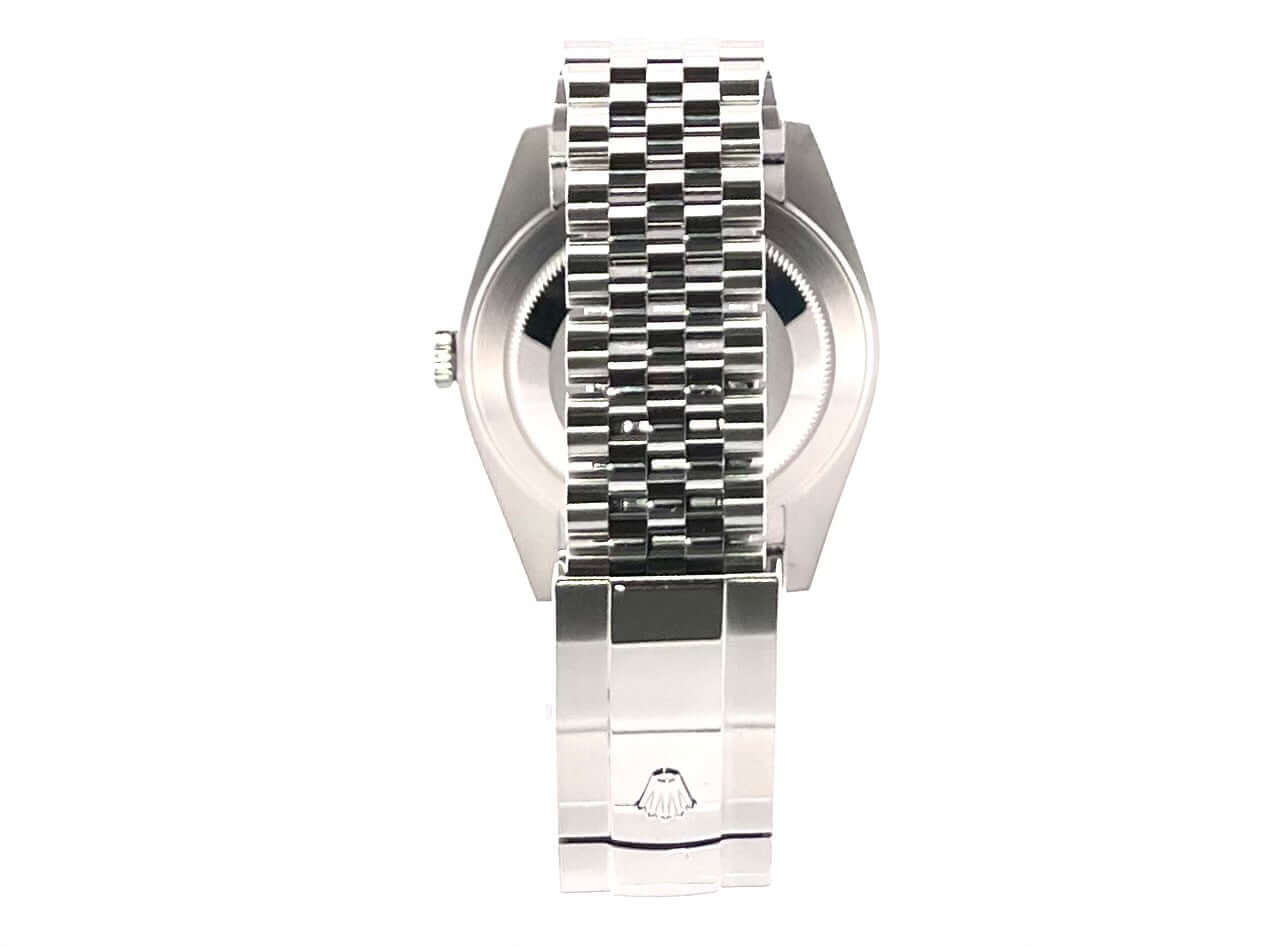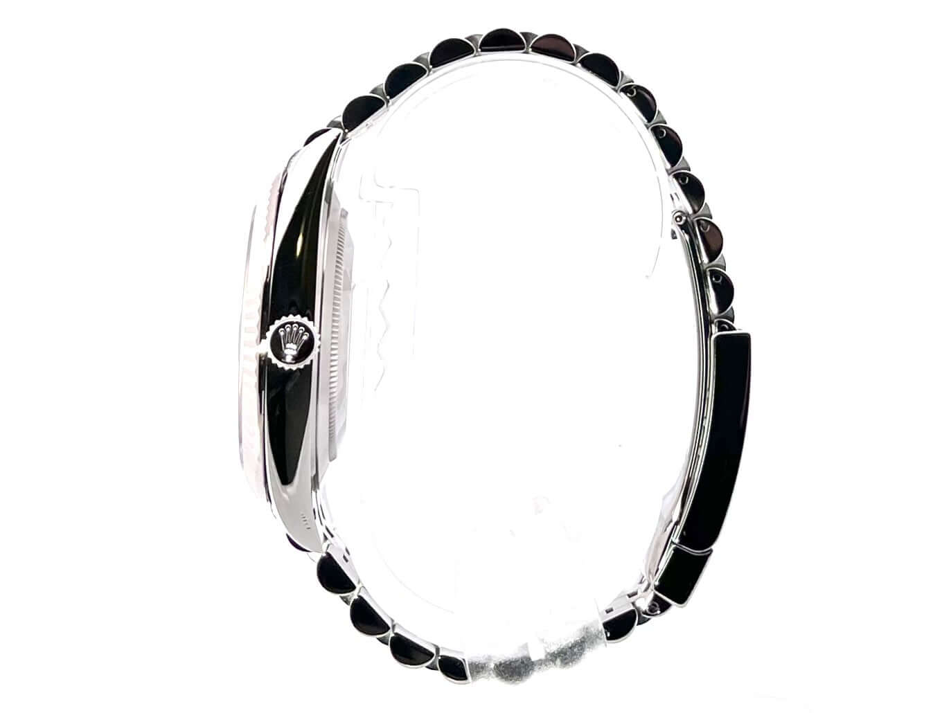 Gehäuse aus Edelstahl poliert und satiniert, Gehäusedurchmesser 41 mm, geriffelte 18 kt Weißgold Lünette, Jubile Armband aus Edelstahl poliert und satiniert mit Faltschließe, Mintgrünes Zifferblatt mit 18 kt Weißgold Leuchtindizes, Leuchtzeiger, Automatikwerk, Rolex Manufakturkaliber 3235, Chronometer, 70 Stunden Gangreserve, Datumsanzeige, kratzfestes Saphirglas, verschraubte Krone, Edelstahlboden verschraubt, Wasserdicht bis zu 10 bar.