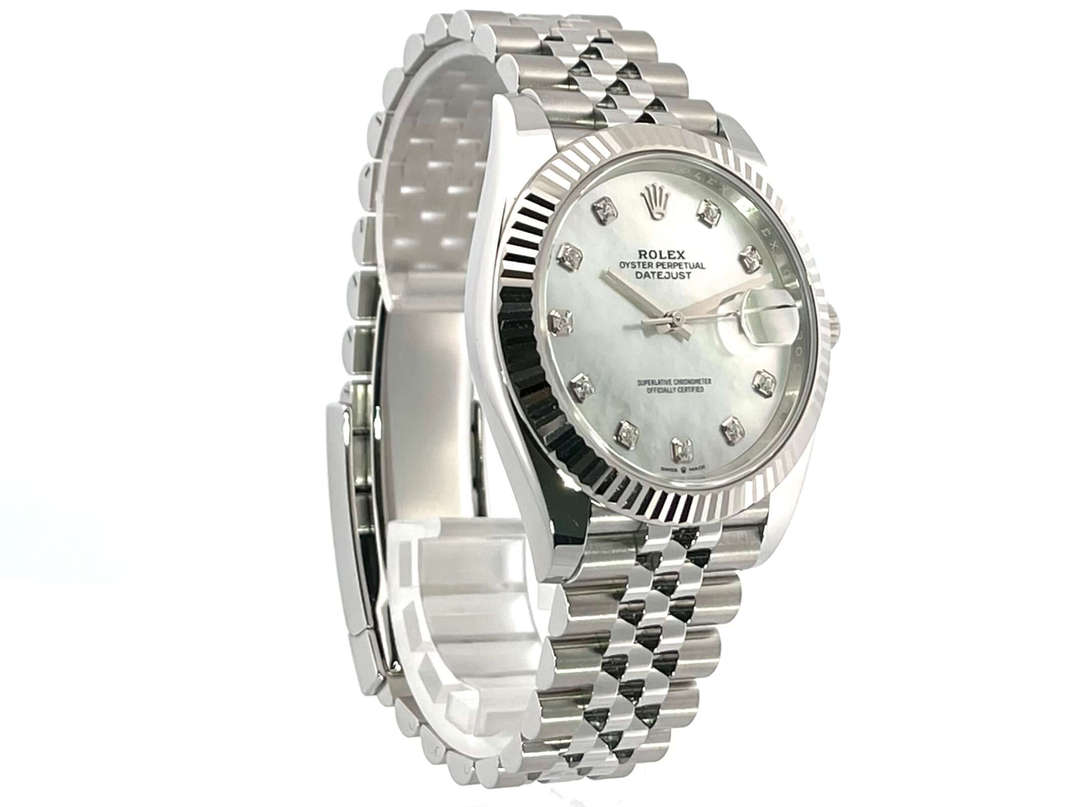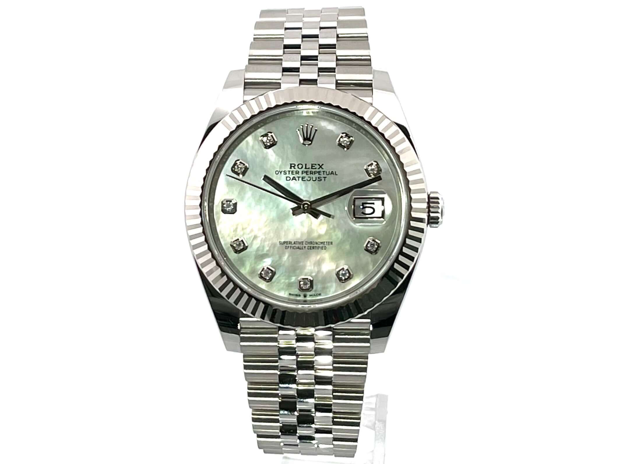 Rolex Datejust 41 Edelstahl Weißgold 126334 Perlmutt Dia Jubile-Band
