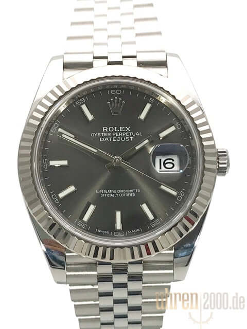 Rolex Datejust 41 Edelstahl Weißgold 126334 Rhodium Jubile-Band aus 2018