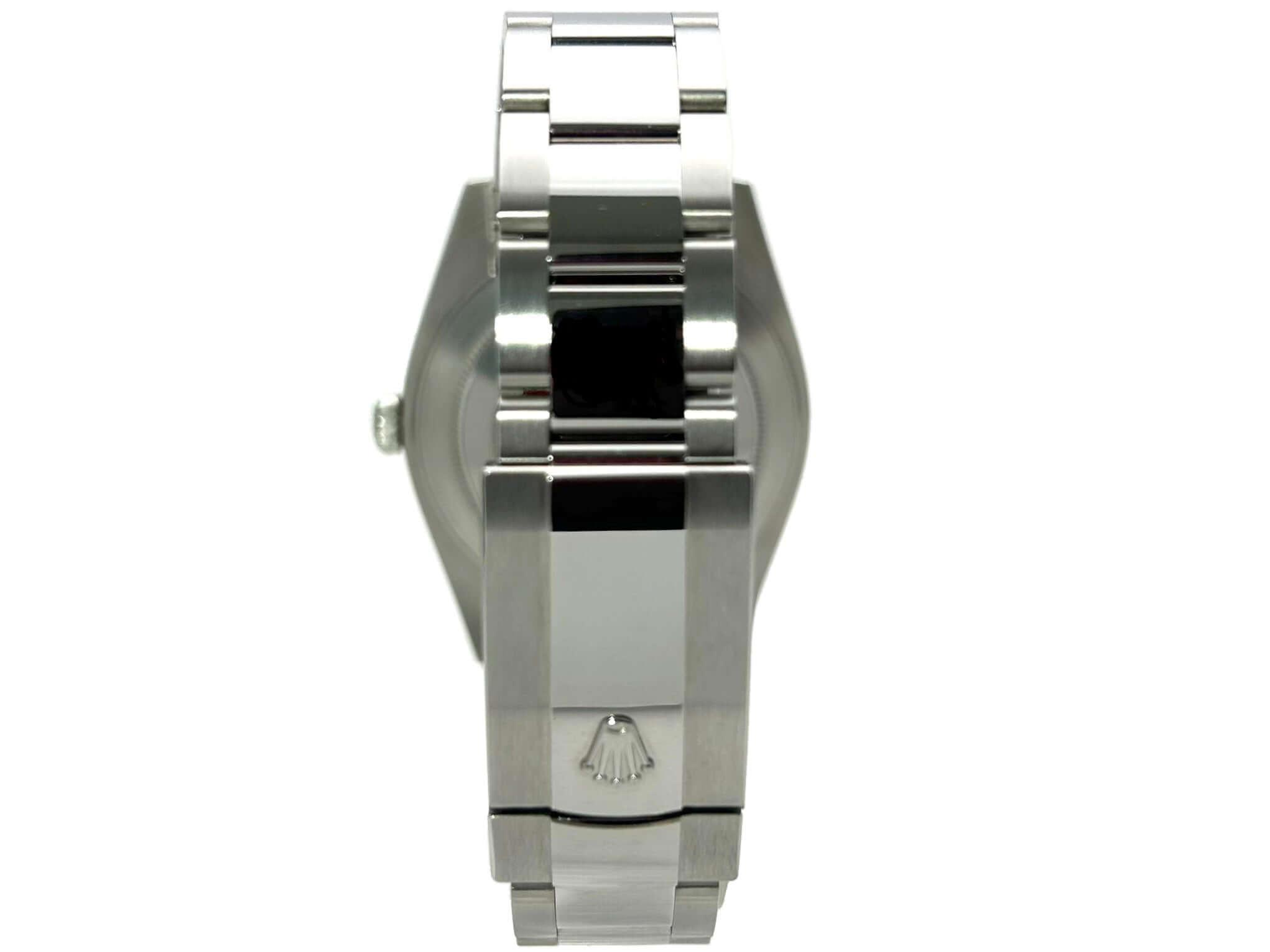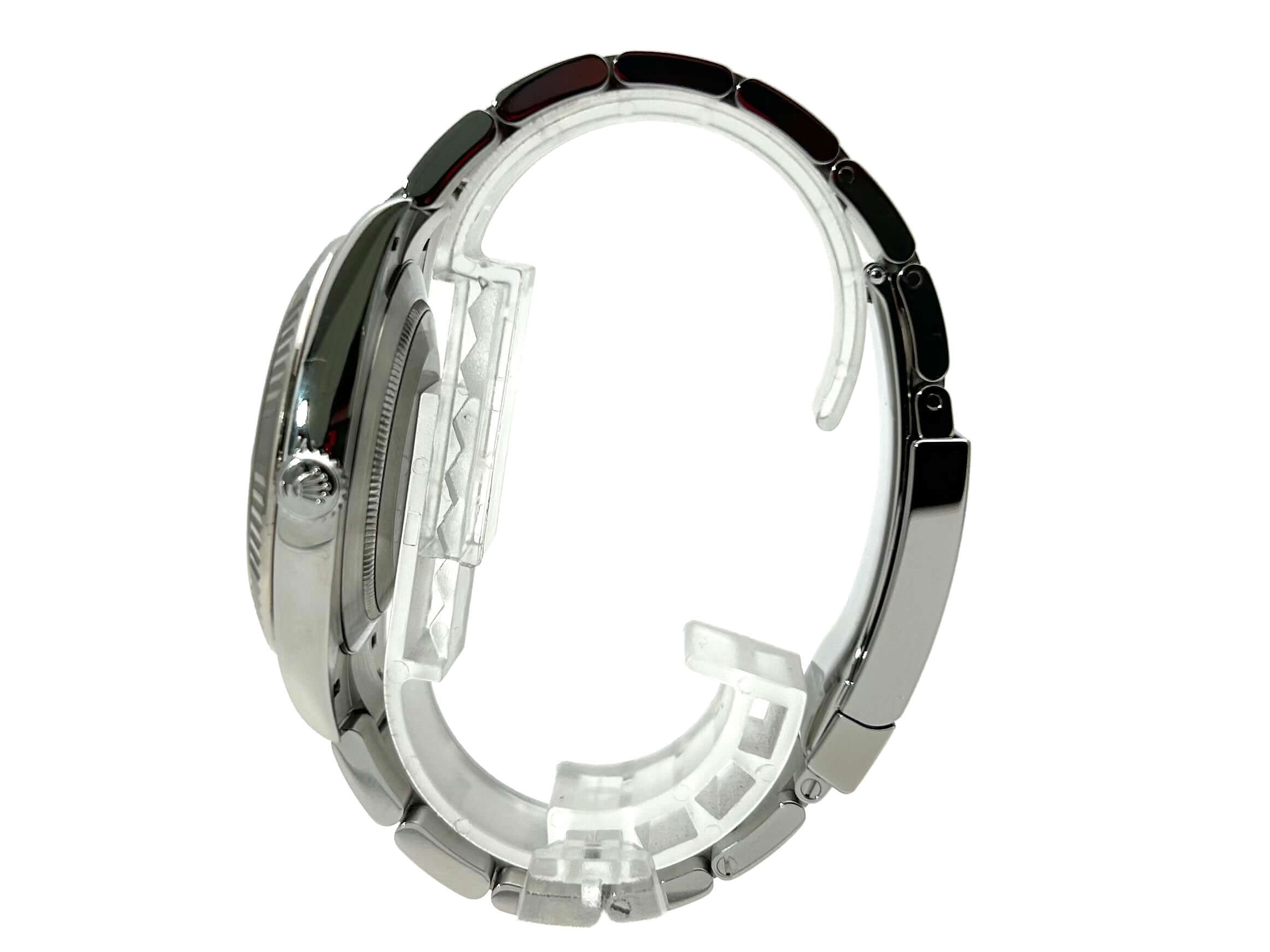 Gehäuse aus Edelstahl poliert und satiniert, Gehäusedurchmesser 41 mm, geriffelte 18 kt Weißgold Lünette, Oyster Armband aus Edelstahl poliert und satiniert mit Faltschließe, schwarzes Zifferblatt mit 18 kt Weißgold Leuchtindizes, Leuchtzeiger, Automatikwerk, Rolex Manufakturkaliber 3235, 70 Stunden Gangreserve, Datumsanzeige, Chronometer, kratzfestes Saphirglas, verschraubte Krone, Edelstahlboden verschraubt, Wasserdicht bis zu 10 bar.