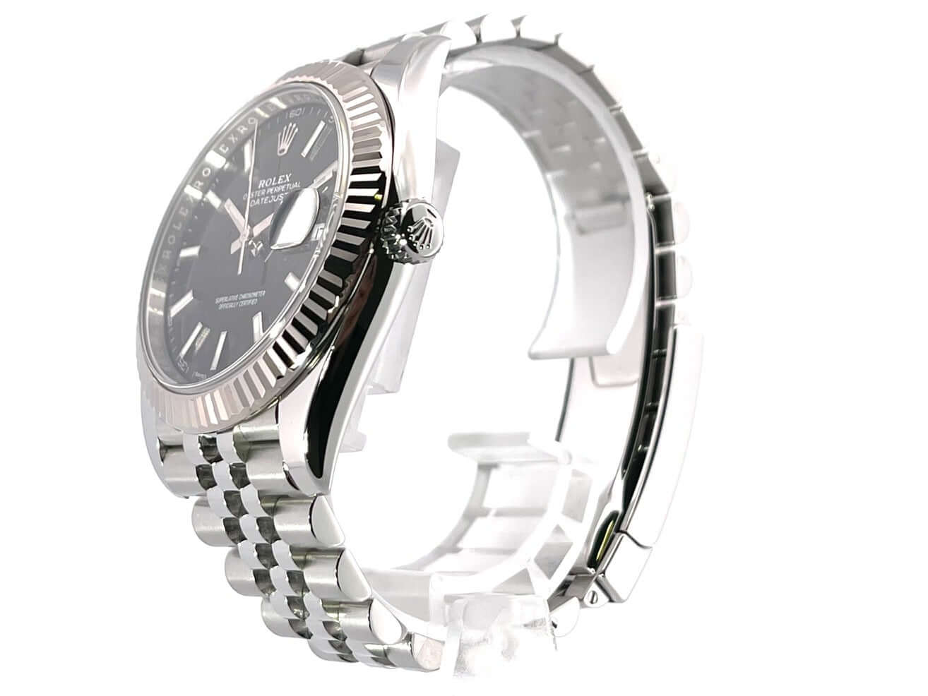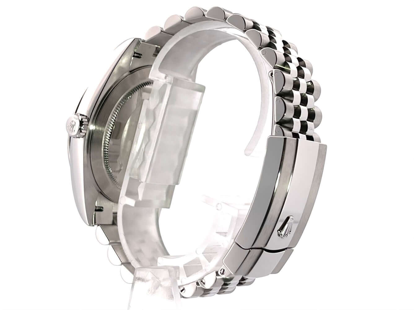 Gehäuse aus Edelstahl poliert und satiniert, Gehäusedurchmesser 41 mm, geriffelte 18 kt Weißgold Lünette, Jubile-Armband aus Edelstahl poliert und satiniert mit Faltschließe, schwarzes Zifferblatt mit 18 kt Weißgold LeuchtIndizes, Leuchtzeiger, Automatikwerk, Rolex Manufakturkaliber 3235, 70 Stunden Gangreserve, Datumsanzeige, Chronometer, kratzfestes Saphirglas, verschraubte Krone, Edelstahlboden verschraubt, Wasserdicht bis zu 10 bar.