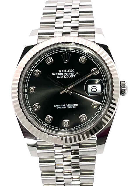 Rolex Datejust 41 Edelstahl Weißgold 126334 Schwarz Dia Jubile-Band