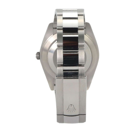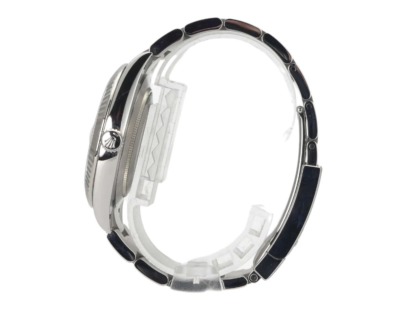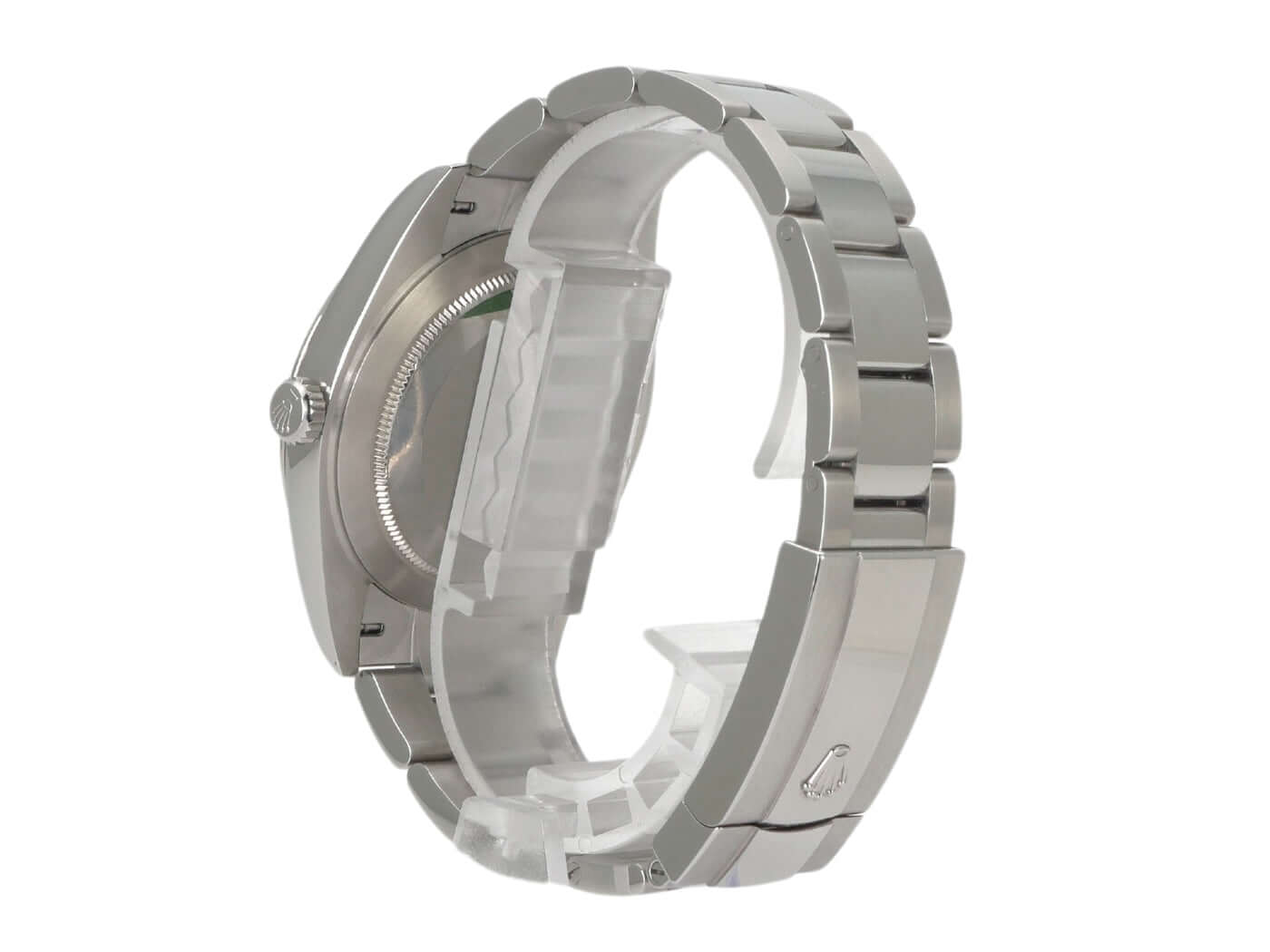 Gehäuse aus Edelstahl poliert und satiniert, Gehäusedurchmesser 41 mm, geriffelte 18 kt Weißgold Lünette, Oyster Edelstahlband poliert und satiniert mit Faltschließe, weißes Zifferblatt mit 18 kt Weißgold Leuchtindizes, Leuchtzeiger, Automatikwerk, Rolex Manufakturkaliber 3235, 70 Stunden Gangreserve, Datumsanzeige, Chronometer, kratzfestes Saphirglas, verschraubte Krone, Edelstahlboden verschraubt, Wasserdicht bis zu 10 bar.