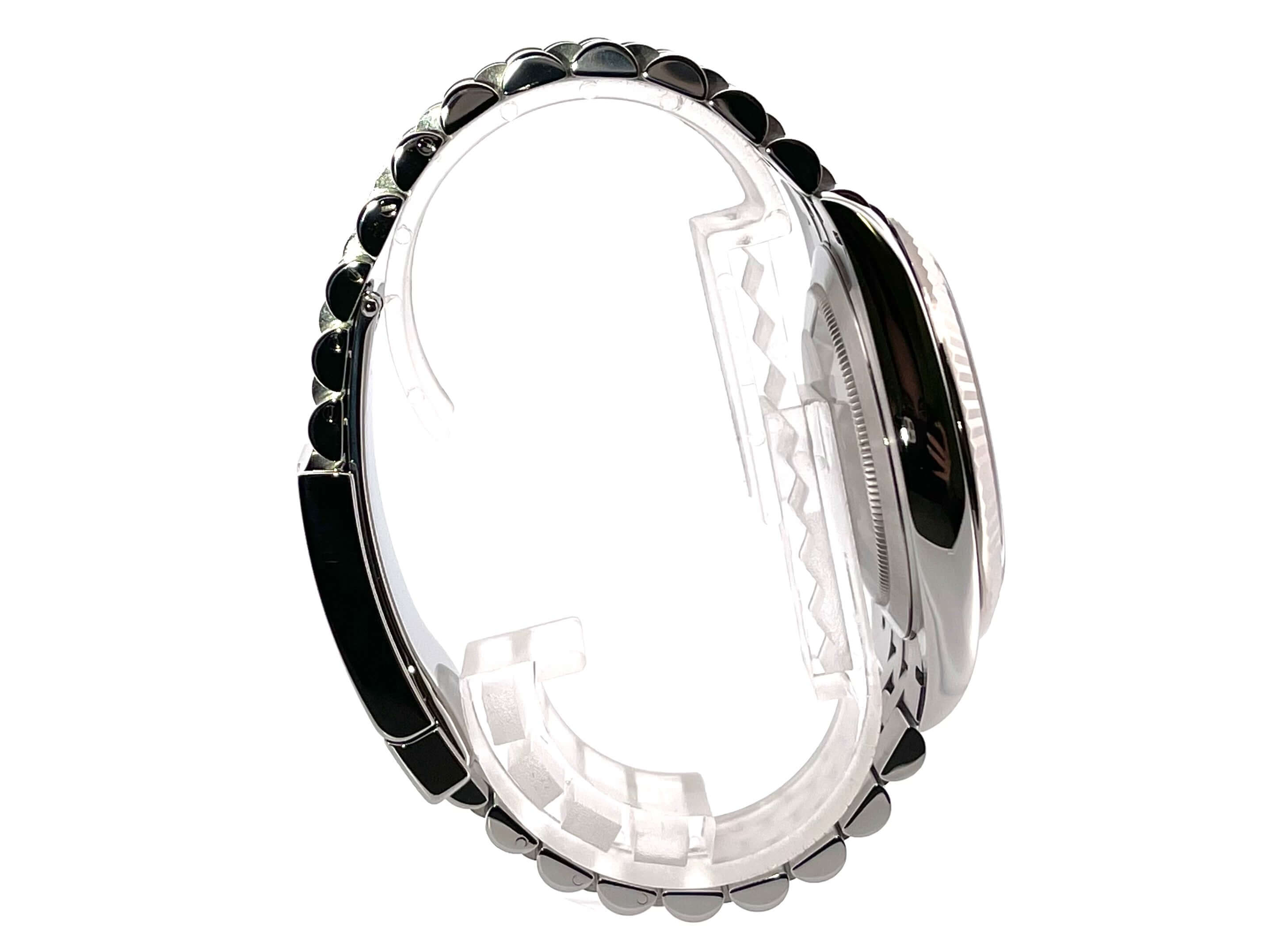 Gehäuse aus Edelstahl poliert und satiniert, Gehäusedurchmesser 41 mm, geriffelte 18 kt Weißgold Lünette, Jubile Edelstahlband poliert und satiniert mit Faltschließe, weißes Zifferblatt mit 18 kt Weißgold Leuchtindizes, Leuchtzeiger, Automatikwerk, Rolex Manufakturkaliber 3235, 70 Stunden Gangreserve, Datumsanzeige, Chronometer, kratzfestes Saphirglas, verschraubte Krone, Edelstahlboden verschraubt, Wasserdicht bis zu 10 bar.