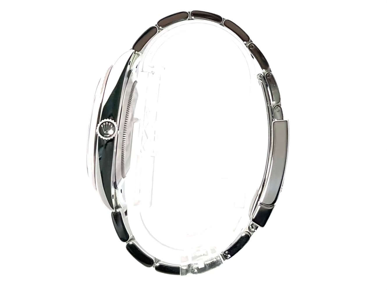 Gehäuse aus Edelstahl poliert und satiniert, Gehäusedurchmesser 41 mm, geriffelte 18 kt Weißgold Lünette, Oyster-Armband aus Edelstahl poliert und satiniert mit Faltschließe, rhodiumfarbenes Zifferblatt mit Leuchtindizes, Leuchtzeiger, Automatikwerk, Rolex Manufakturkaliber 3235, 70 Stunden Gangreserve, Datumsanzeige, Chronometer, kratzfestes Saphirglas, verschraubte Krone, Edelstahlboden verschraubt, Wasserdicht bis zu 10 bar.