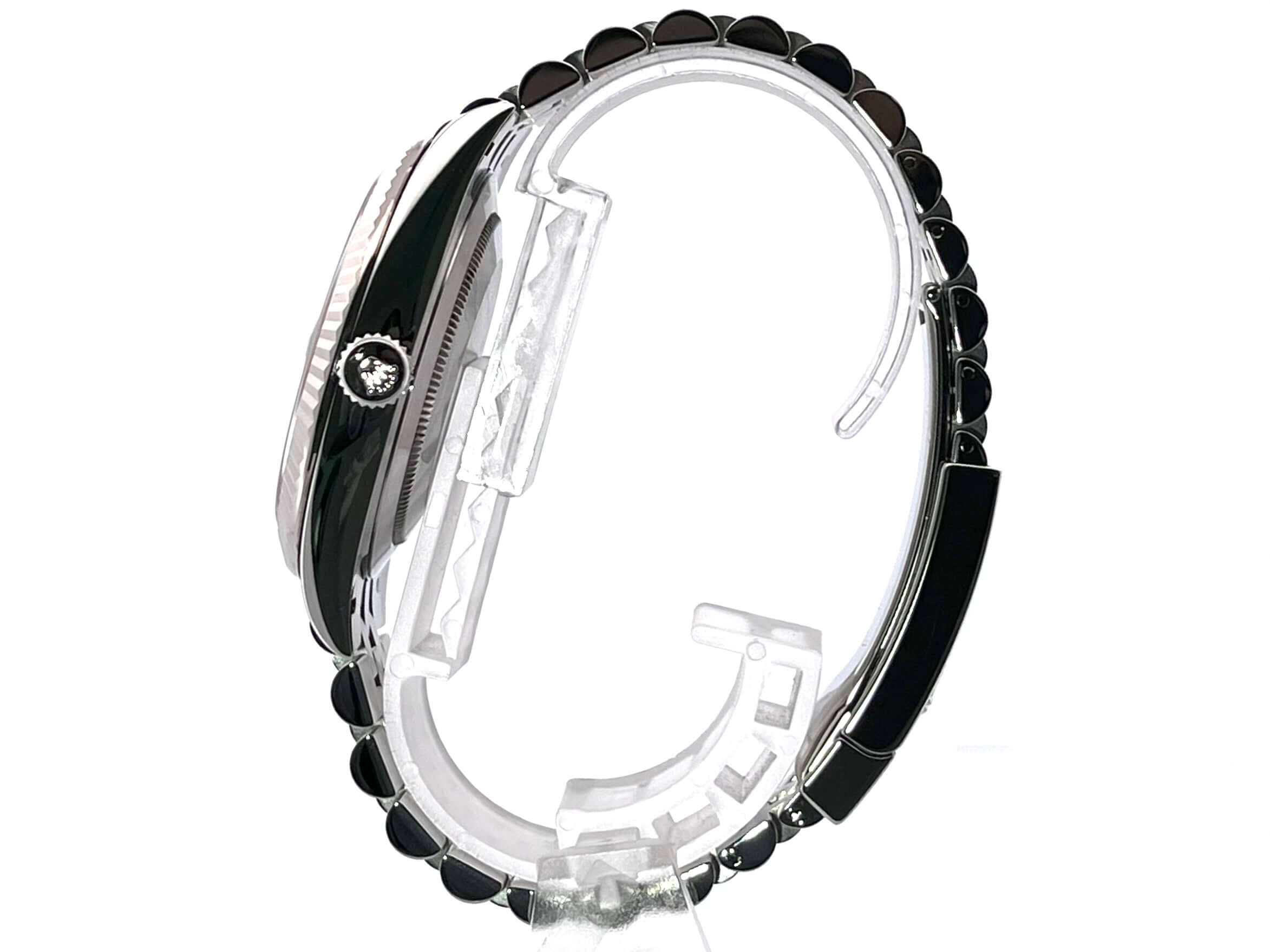 Gehäuse aus Edelstahl poliert und satiniert, Gehäusedurchmesser 41 mm, geriffelte 18 kt Weißgold Lünette, Jubile-Armband aus Edelstahl poliert und satiniert mit Faltschließe, Rhodium Zifferblatt mit römischen Ziffern, Leuchtzeiger, Automatikwerk, Rolex Manufakturkaliber 3235, Chronometer, 70 Stunden Gangreserve, Datumsanzeige, kratzfestes Saphirglas, verschraubte Krone, Edelstahlboden verschraubt, Wasserdicht bis zu 10 bar.