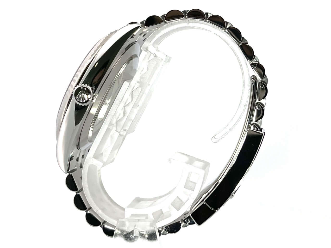 Gehäuse aus Edelstahl poliert und satiniert, Gehäusedurchmesser 41 mm, geriffelte 18 kt Weißgold Lünette, Jubile-Armband aus Edelstahl poliert und satiniert mit Faltschließe, Rhodium Zifferblatt mit Leuchtindizes, Leuchtzeiger, Automatikwerk, Rolex Manufakturkaliber 3235, 70 Stunden Gangreserve, Datumsanzeige, Chronometer, kratzfestes Saphirglas, verschraubte Krone, Edelstahlboden verschraubt, Wasserdicht bis zu 10 bar.