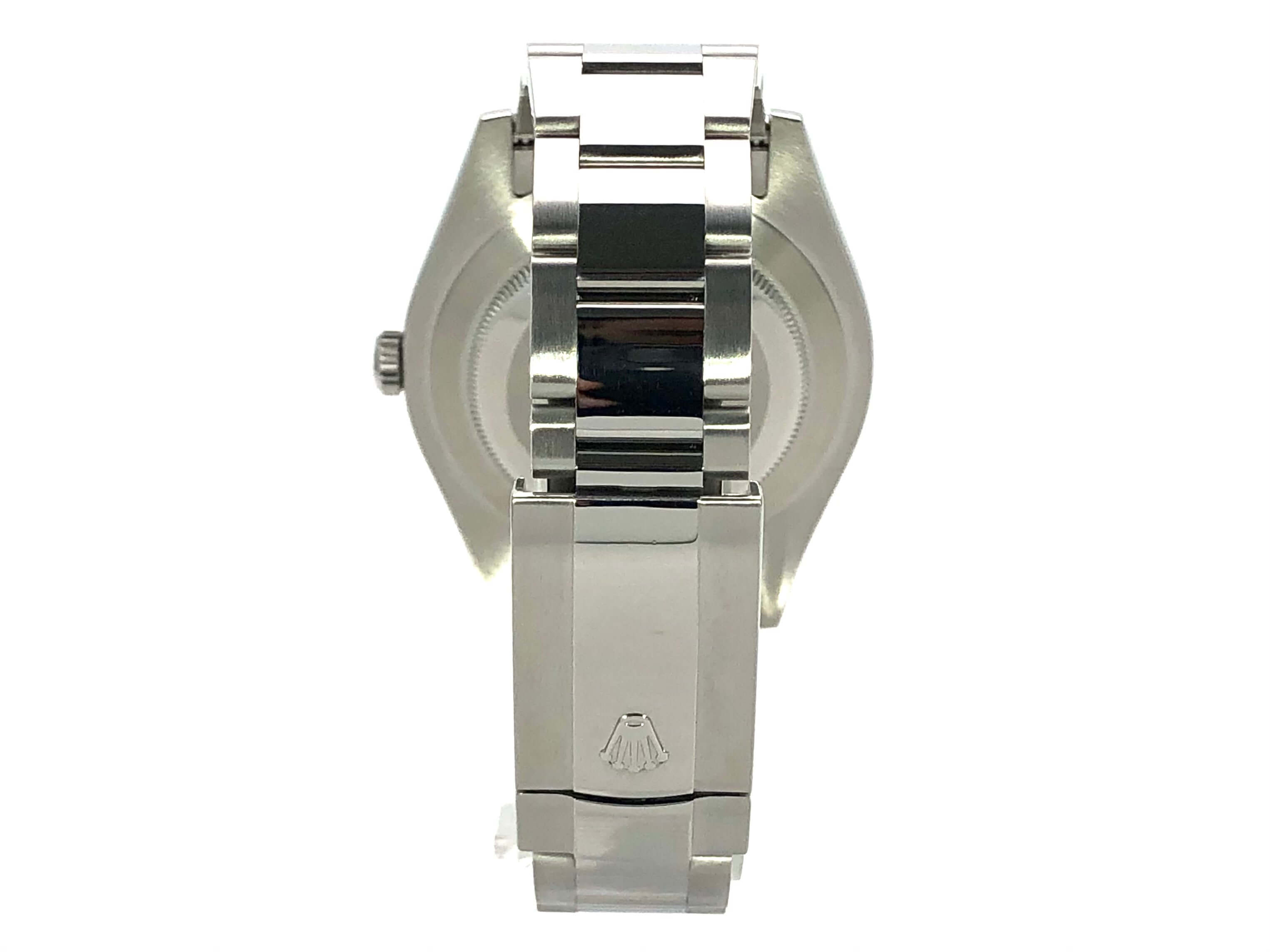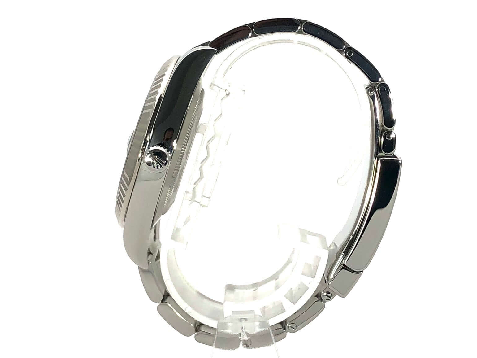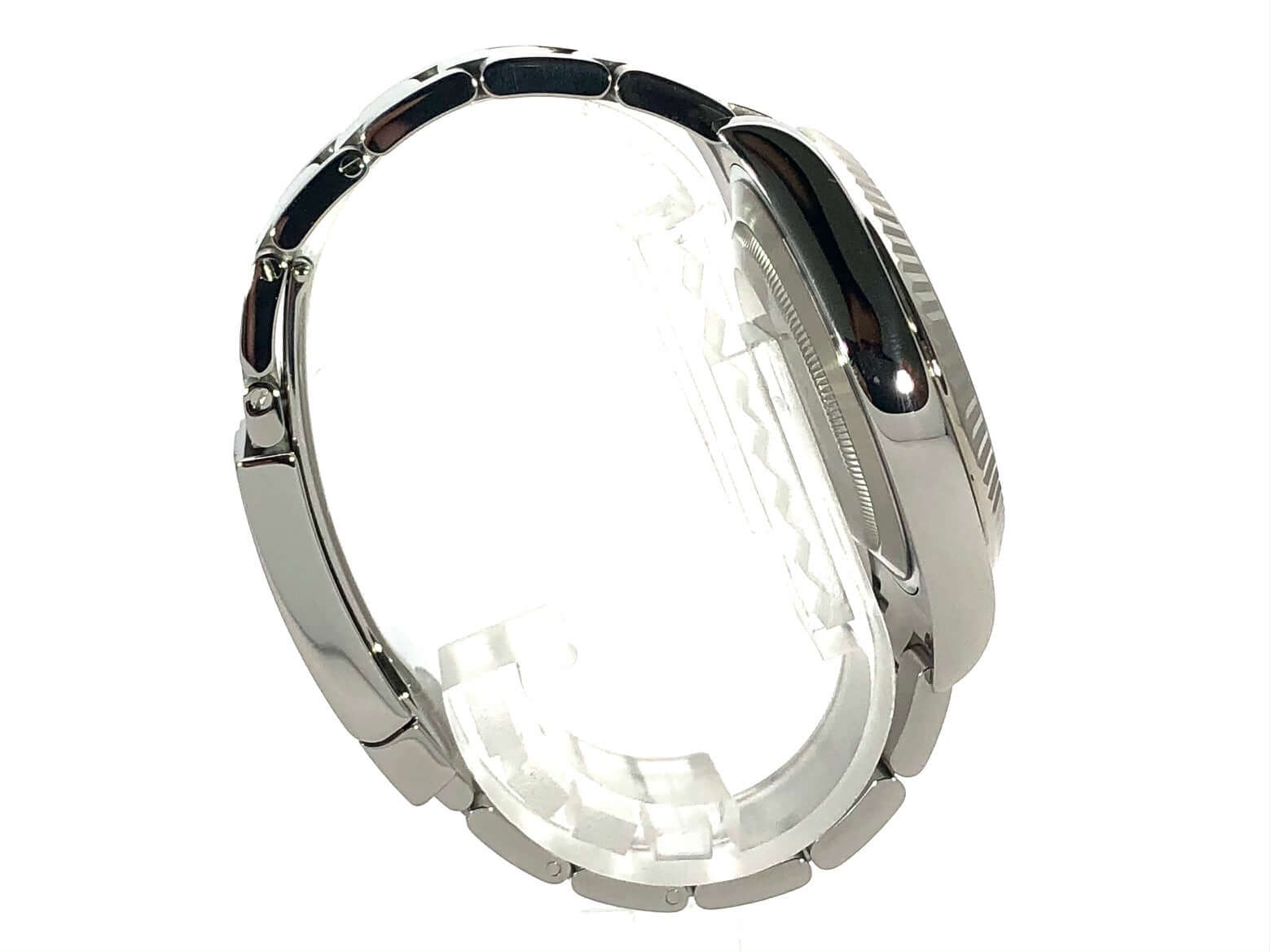 Gehäuse aus Edelstahl poliert und satiniert, Gehäusedurchmesser 41 mm, Gehäusehöhe 12 mm, Weißgold Lünette geriffelt, Oyster Edelstahl Armband poliert und satiniert mit Faltschließe, Rhodium Zifferblatt mit aufgesetzten Diamanten, Automatikwerk, Rolex Manufakturkaliber 3136 mit 31 Steine, Datumsanzeige mit Glaslupe auf 3 Uhr, Chronometer, Saphirglas kratzfest, Krone verschraubt, Edelstahlboden verschraubt, wasserdicht bis zu 10 bar.