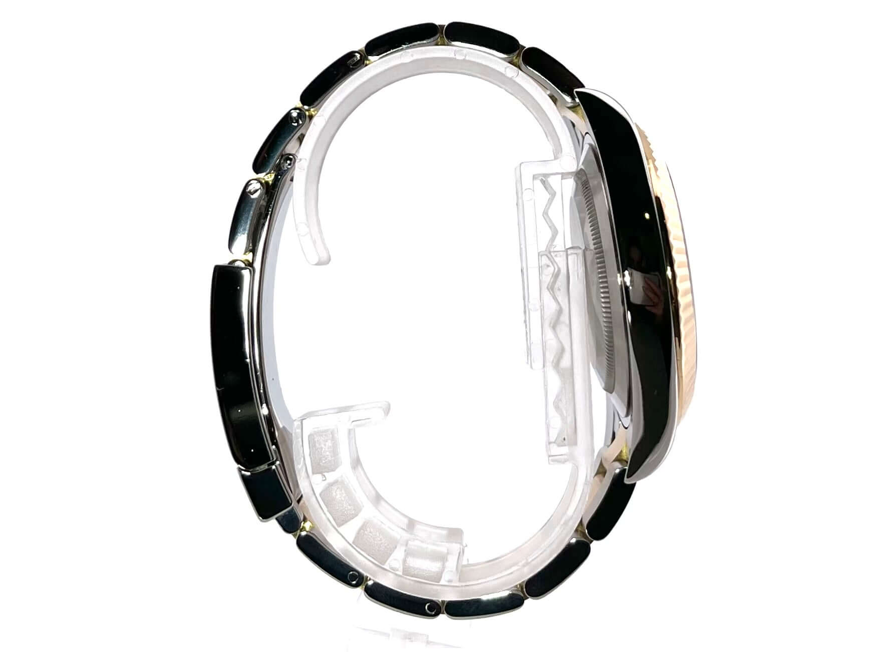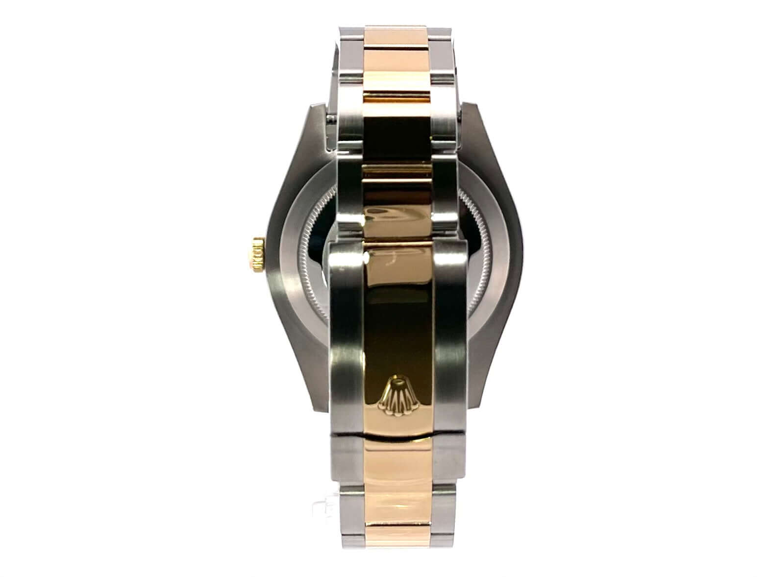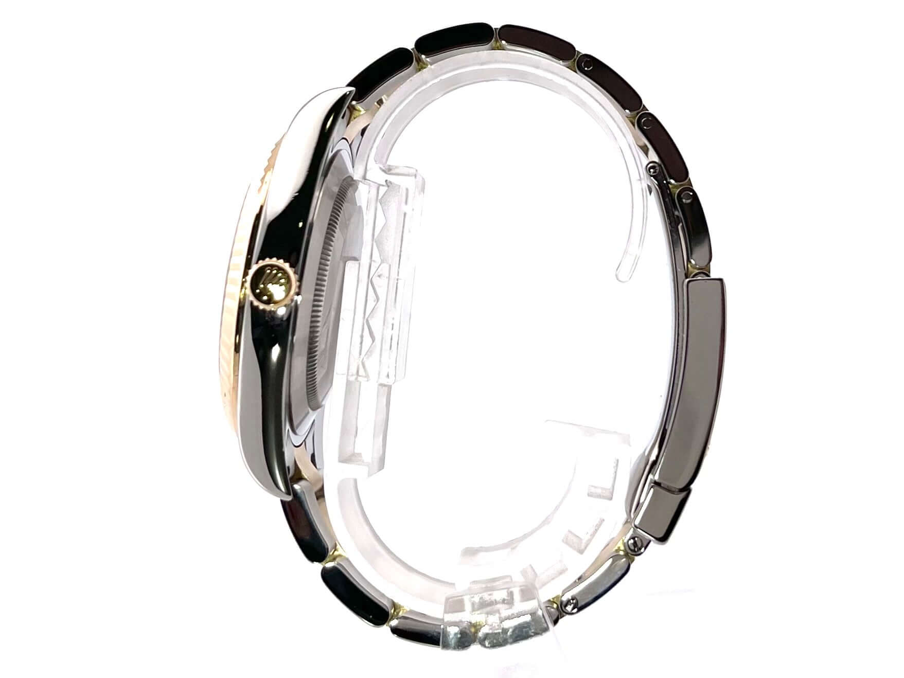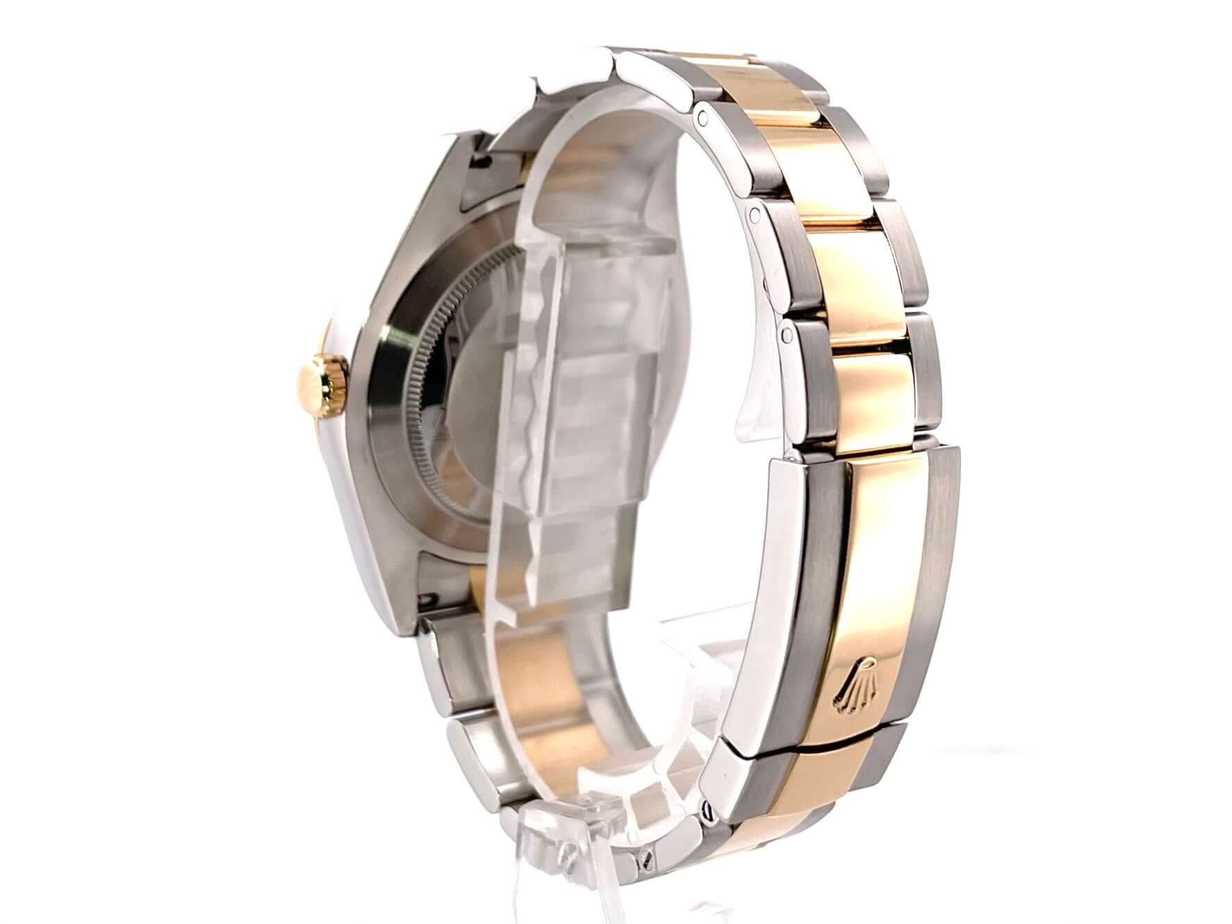 Gehäuse aus Edelstahl poliert und satiniert, Gehäusedurchmesser 41 mm, geriffelte 18 kt Gelbgold Lünette, Oyster Edelstahl / 18 kt Gelbgold Armband poliert und satiniert mit Faltschließe, schwarzes Zifferblatt mit goldenen arabischen Ziffern, Gelbgold Leuchtzeiger, Automatikwerk, Rolex Manufakturkaliber 3136 mit 31 Steinen, Datumsanzeige, Chronometer, kratzfestes Saphirglas, verschraubte Krone, Edelstahlboden verschraubt, Wasserdicht bis zu 10 bar.