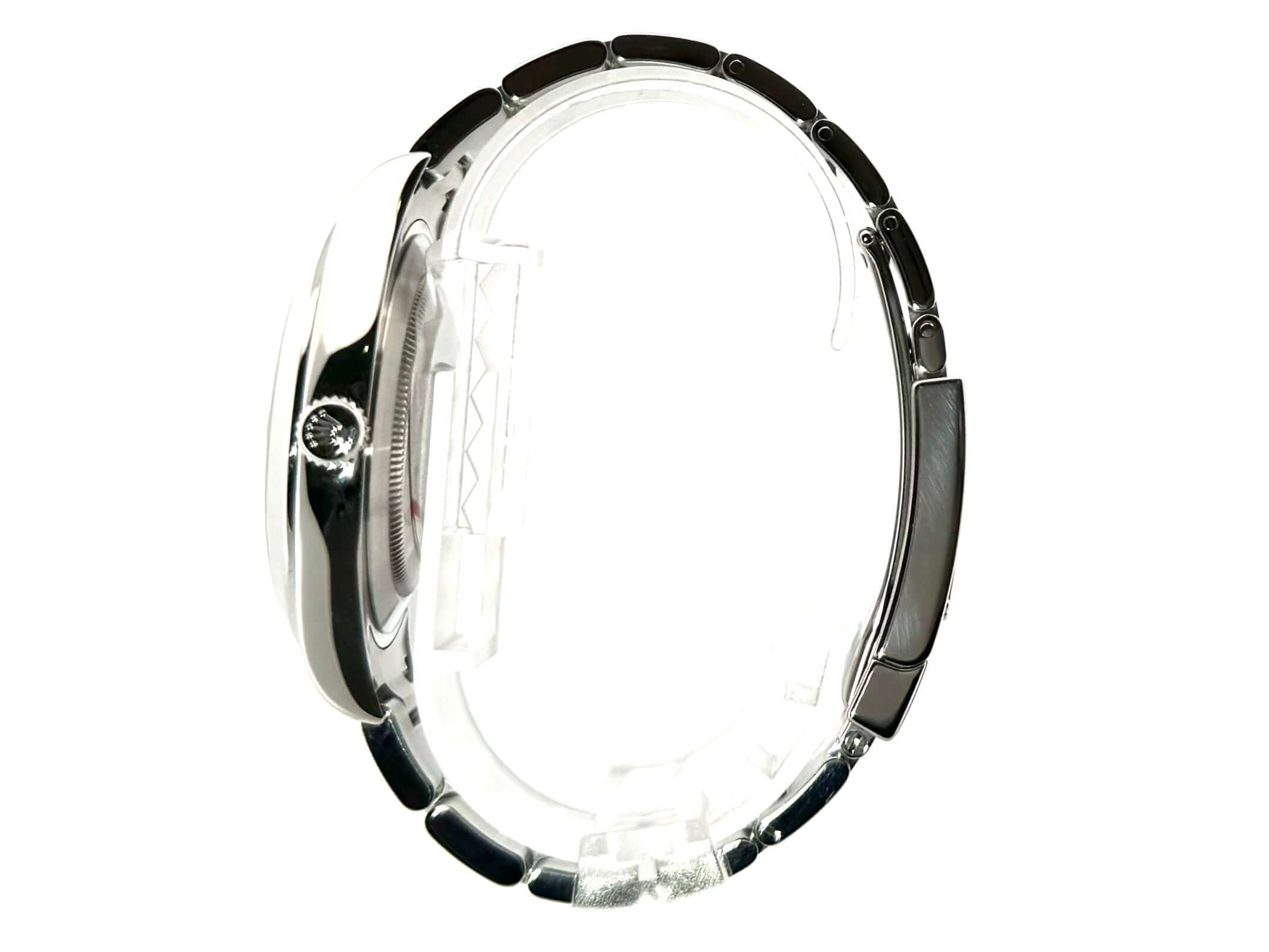 Gehäuse aus Edelstahl poliert und satiniert, Gehäusedurchmesser 41 mm, Gehäusehöhe 12 mm, Edelstahl Lünette glatt und poliert, Oyster Edelstahl Armband poliert und satiniert mit Faltschließe, blaues Zifferblatt mit aufgesetzten römischen Ziffern, Automatik, Rolex Manufakturkaliber 3136 mit 31 Steinen, Datum, Chronometer, Saphirglas, verschraubte Krone, Edelstahlboden verschraubt, Wasserdicht bis zu 10 bar.