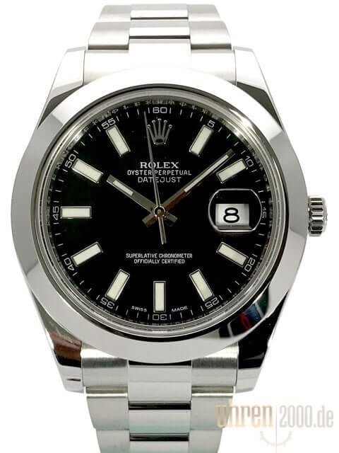 Gehäuse aus Edelstahl poliert und satiniert, Gehäusedurchmesser 41 mm, Gehäusehöhe 12 mm, Edelstahl Lünette glatt und poliert, Oyster Edelstahlband poliert und satiniert mit Faltschließe, schwarzes Zifferblatt mit aufgesetzten Leuchtindexen, Leuchtzeiger, Uhrwerk Automatik, Rolex Manufakturkaliber 3136 mit 31 Steinen, Datumsanzeige, Chronometer, Saphirglas kratzfest, verschraubte Krone, Edelstahlboden verschraubt, Wasserdicht bis zu 10 bar.