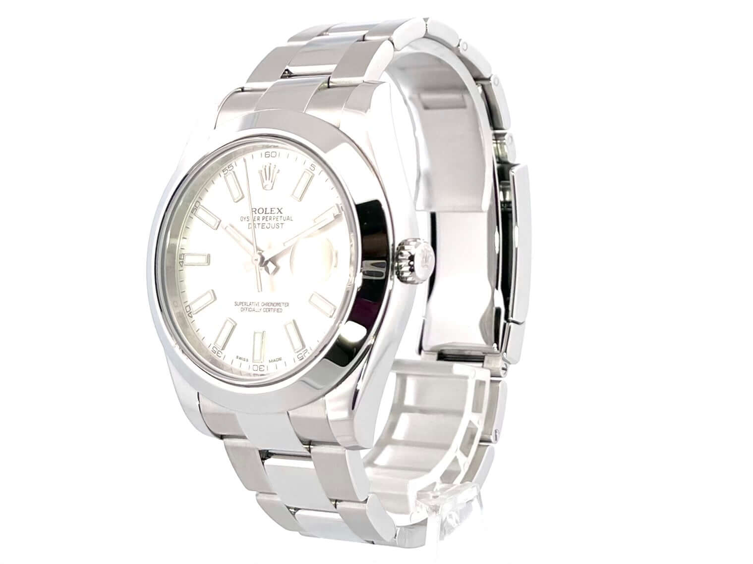 Gehäuse aus Edelstahl poliert und satiniert, Gehäusedurchmesser 41 mm, Gehäusehöhe 12 mm, Edelstahl Lünette glatt und poliert, Oyster Edelstahlband poliert und satiniert mit Faltschließe, silberfarbenes Zifferblatt mit aufgesetzten Leuchtindizes, Leuchtzeiger, Automatik, Rolex Manufakturkaliber 3136 mit 31 Steinen, Datumsanzeige, Chronometer, kratzfestes Saphirglas, verschraubte Krone, Edelstahlboden verschraubt, Wasserdicht bis zu 10 bar.