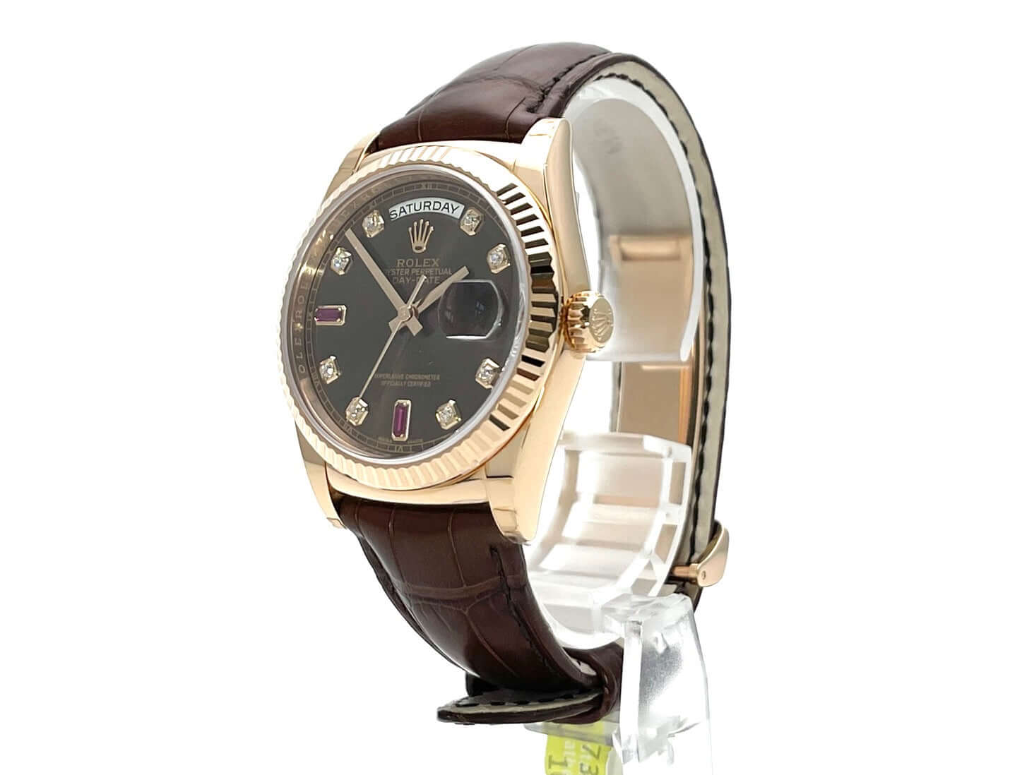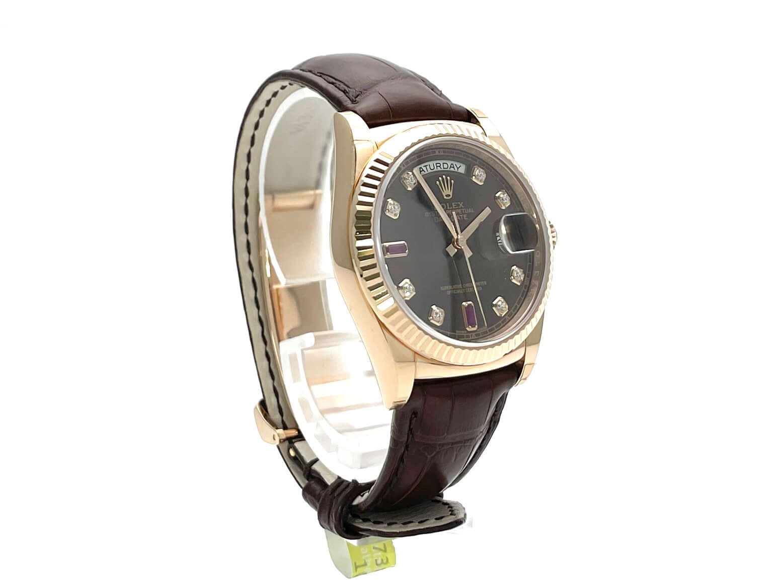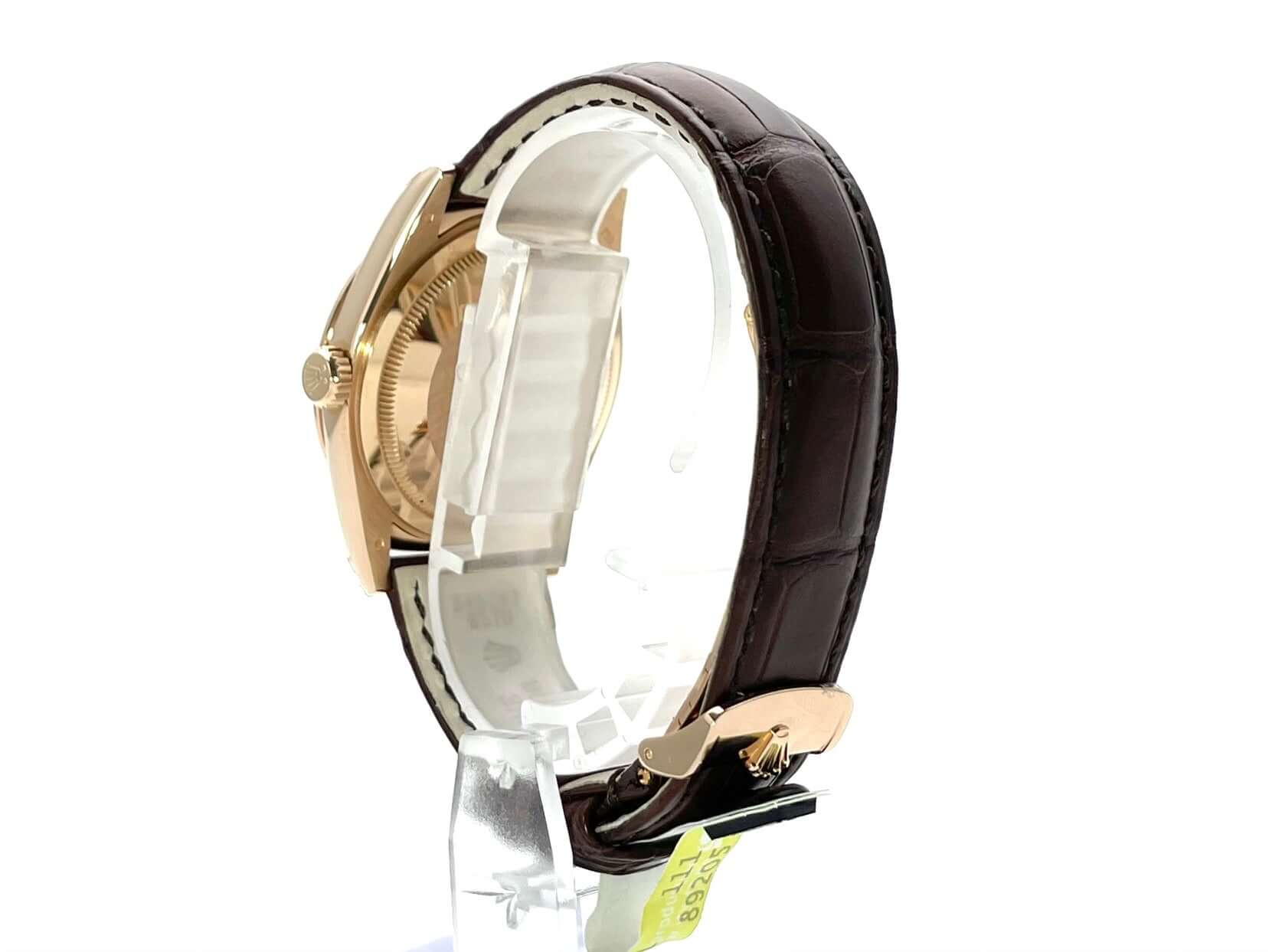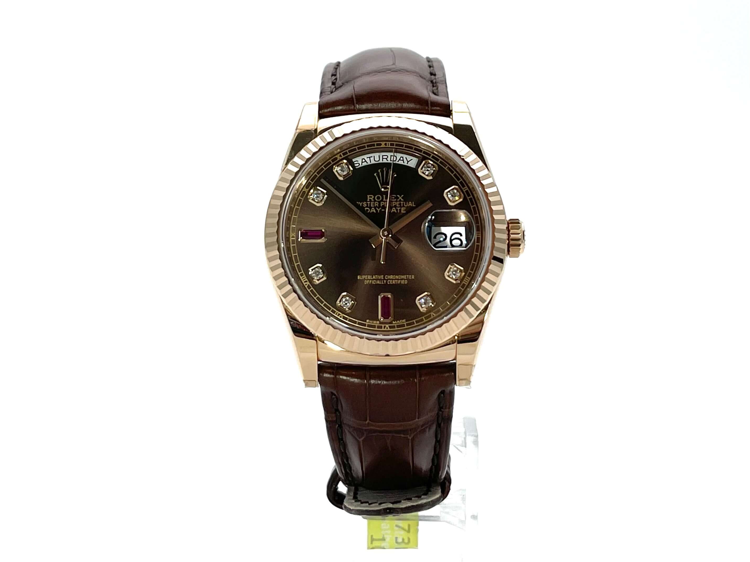 Rolex Day-Date 36 118135 Everose-Gold Leder Choco Diamant Rubin