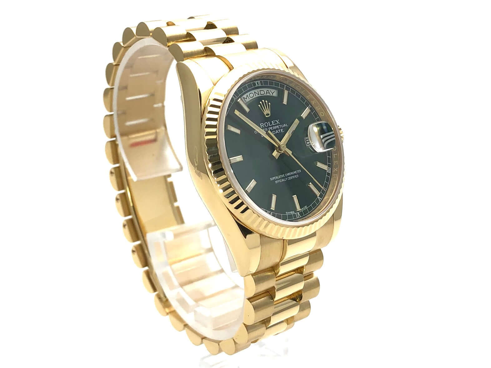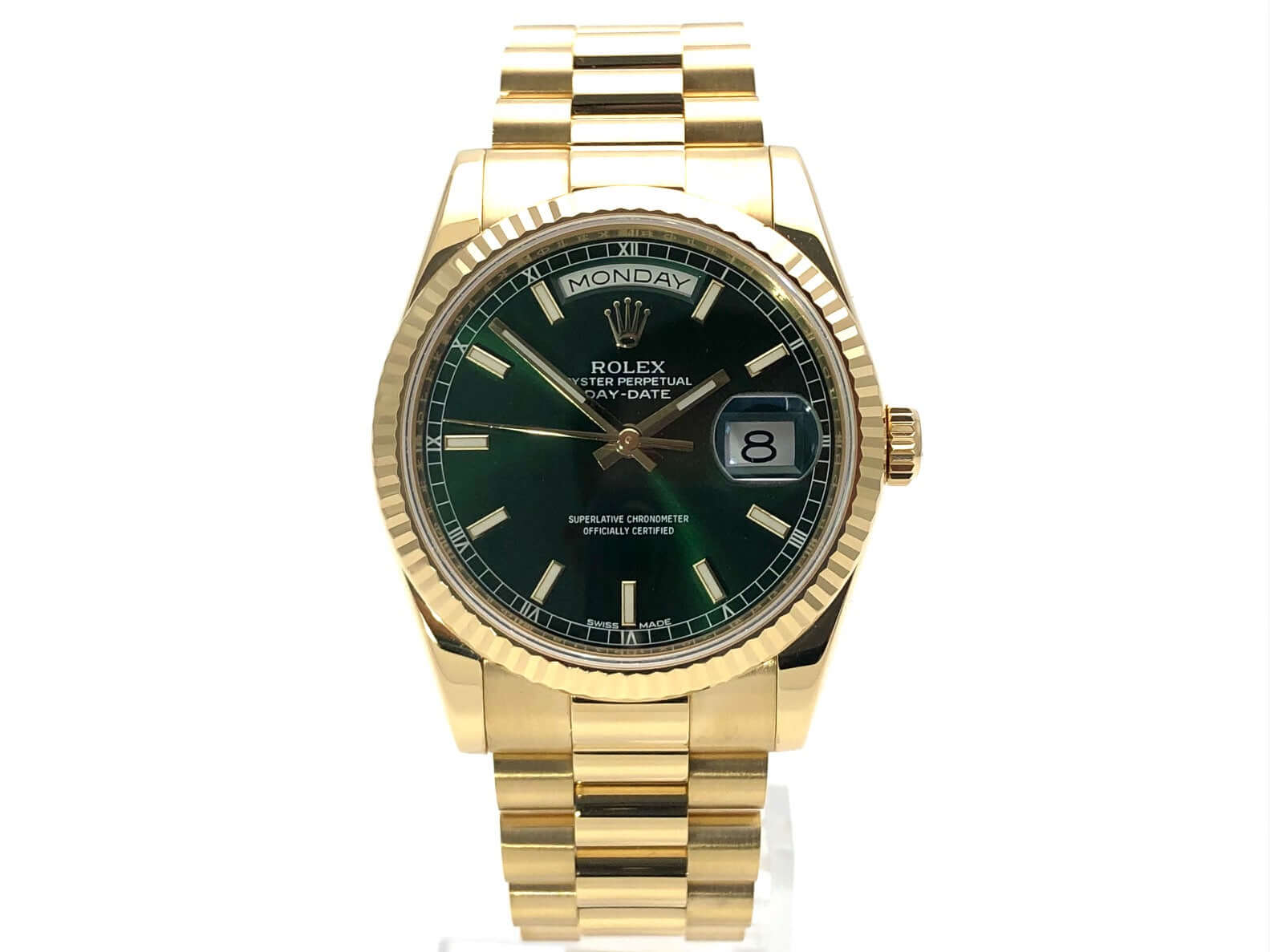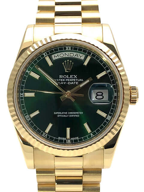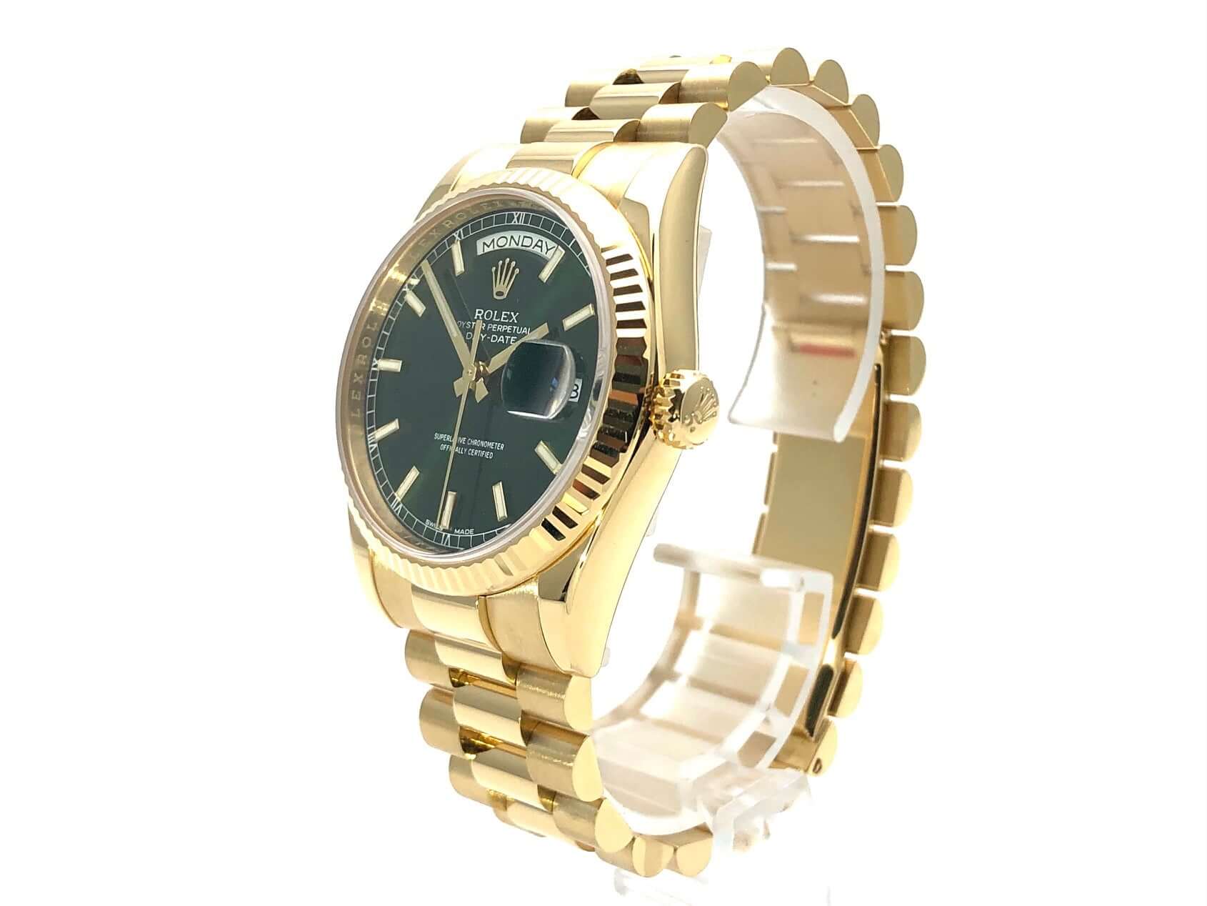 Rolex Day-Date 36 118238 Gelbgold Grün aus 2017 ungetragen