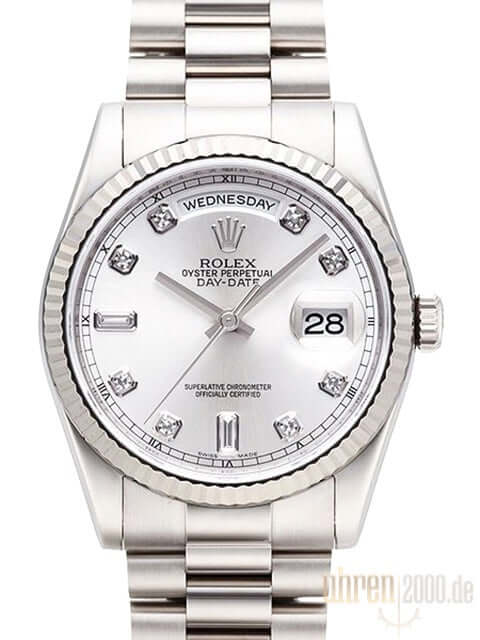 Rolex Day-Date 36 118239 Weißgold Silber Diamant