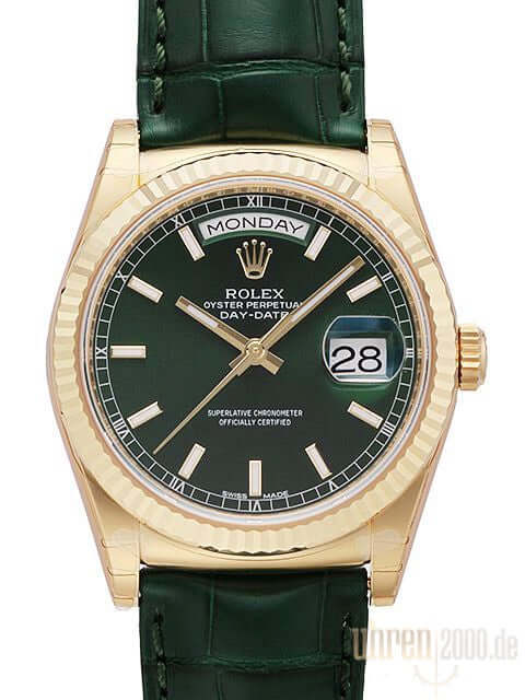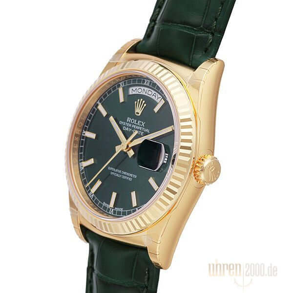 Rolex Day-Date 36 18 kt Gelbgold Leder 118138 Grün
