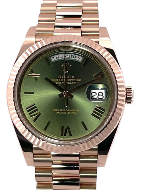 Rolex Day-Date 40 Everose-Gold Ref. 228235 Olivgrün Römisch aus 2019