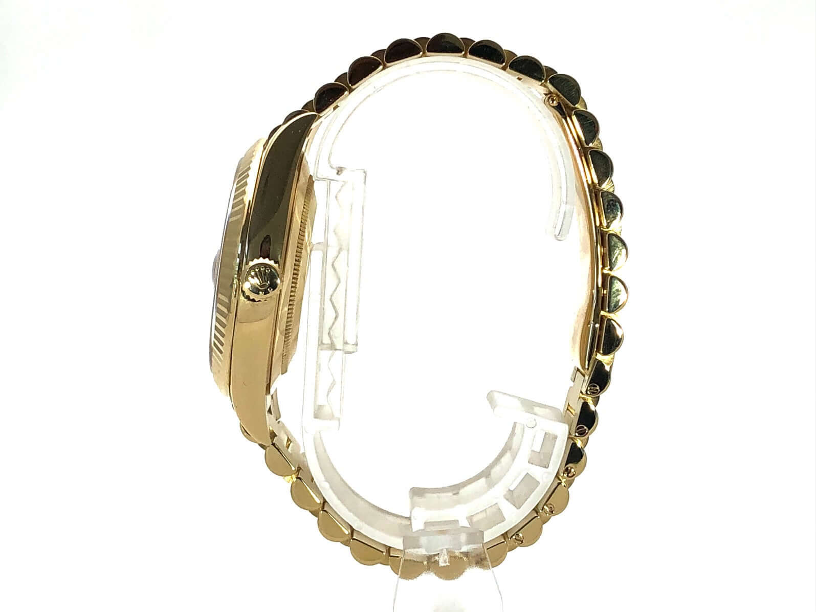 Gehäuse aus 18 kt Gelbgold poliert, Gehäusedurchmesser 40 mm, 18 kt Gelbgold Lünette geriffelt, Präsident Armband aus 18 kt Gelbgold poliert und satiniert mit Faltschließe, Champagnerfarbenes Zifferblatt mit aufgesetzten goldenen Indizes, Automatikwerk, Rolex Manufakturkaliber 3255, Chronometer, Datum mit Glaslupe bei 3 Uhr, Wochentagsanzeige, kratzfestes Saphirglas, verschraubter Boden aus 18 kt Gelbgold, Wasserdicht bis zu 10 bar.