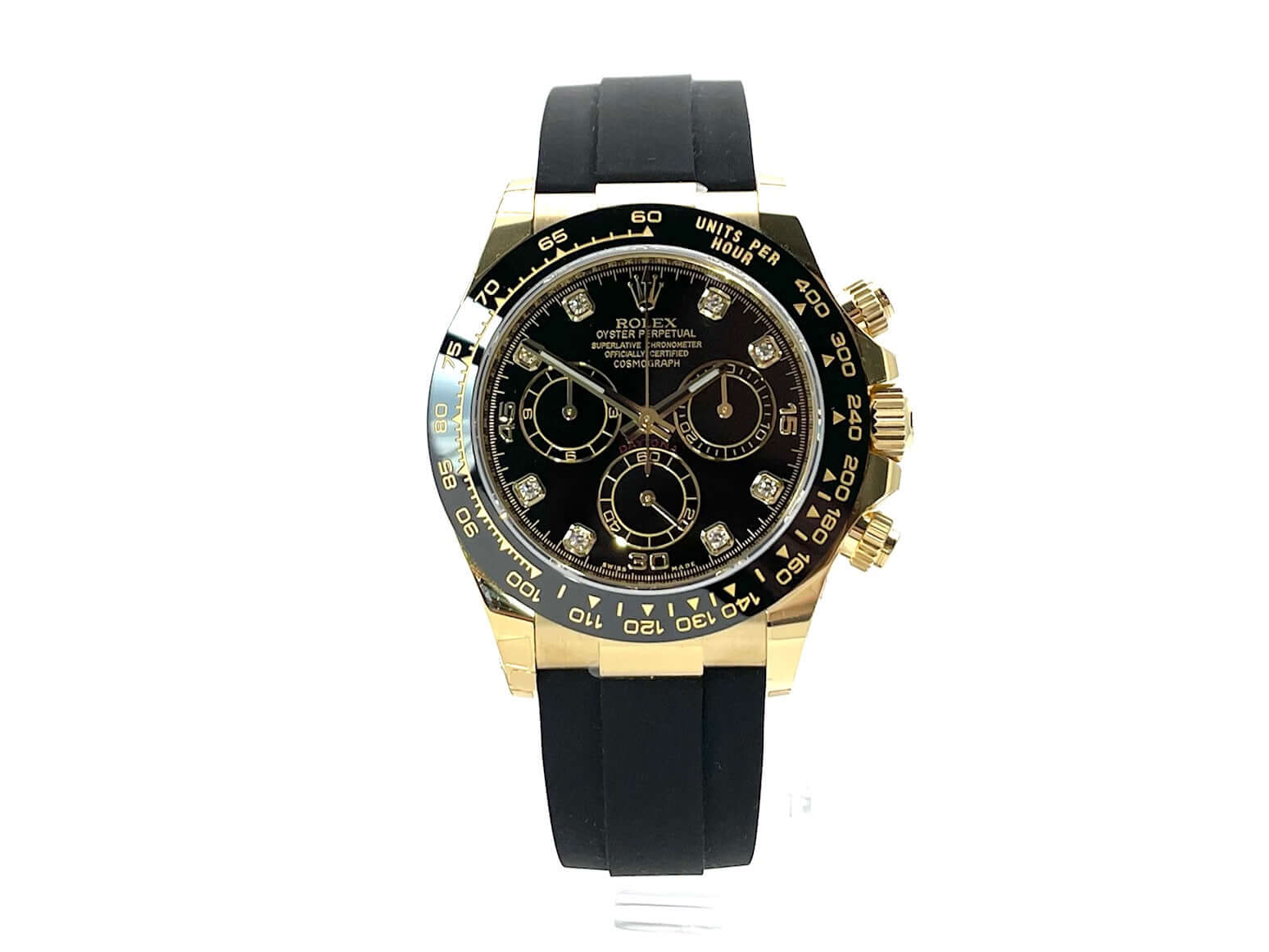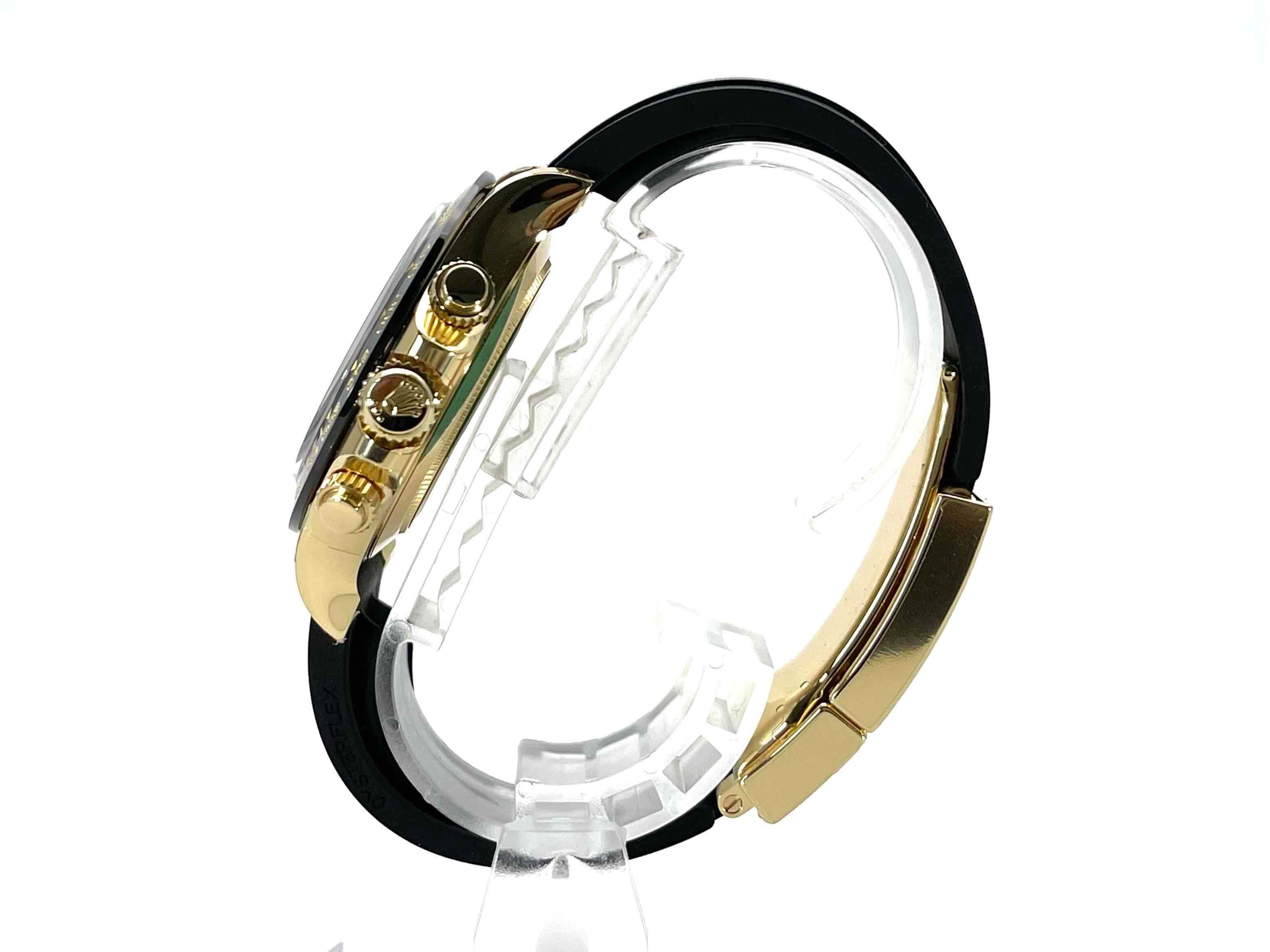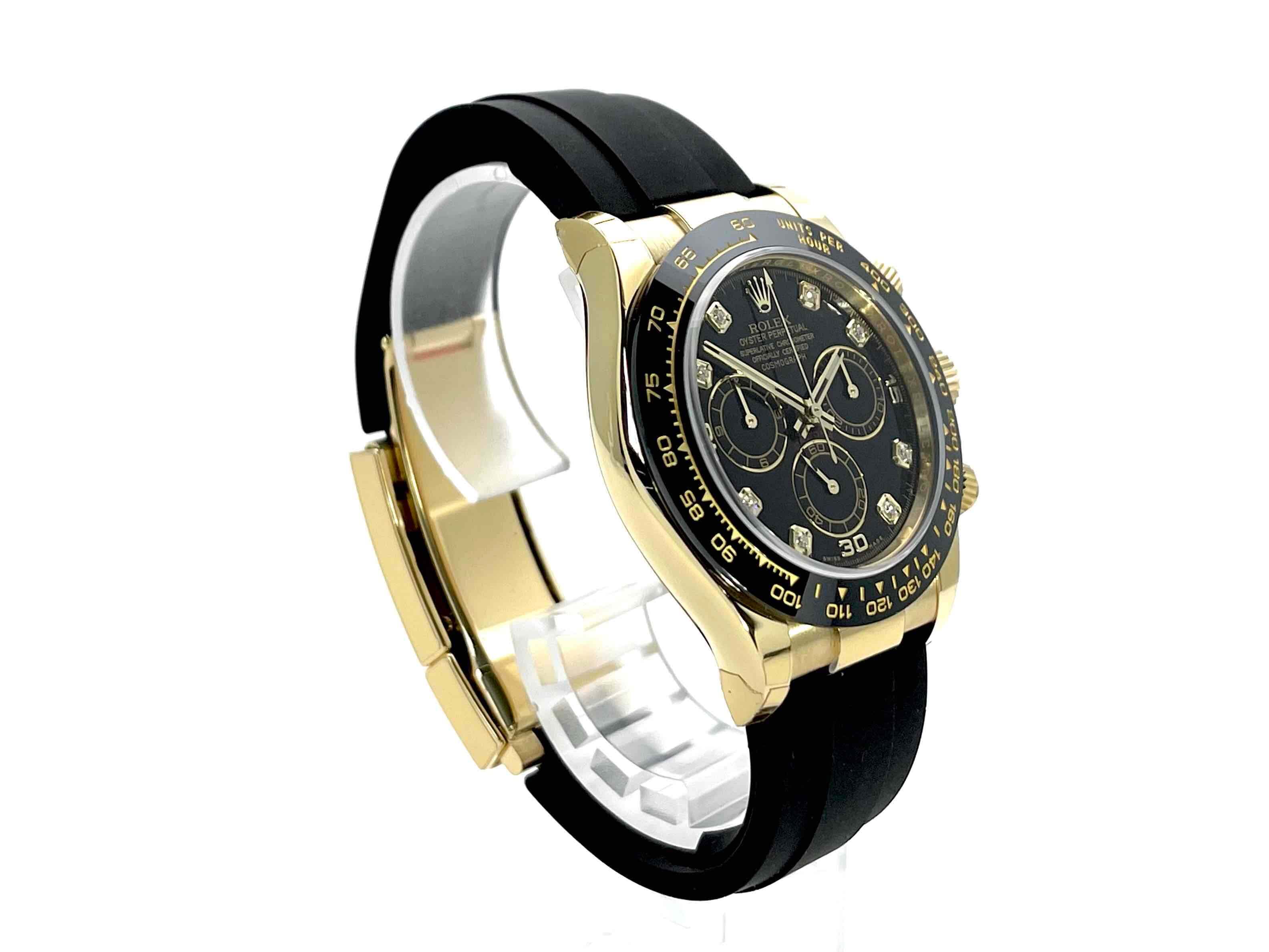Rolex Cosmograph Daytona Gelbgold / Oysterflex Ref. 116518LN schwarzes Diamantzifferblatt verklebte Uhr aus 2021