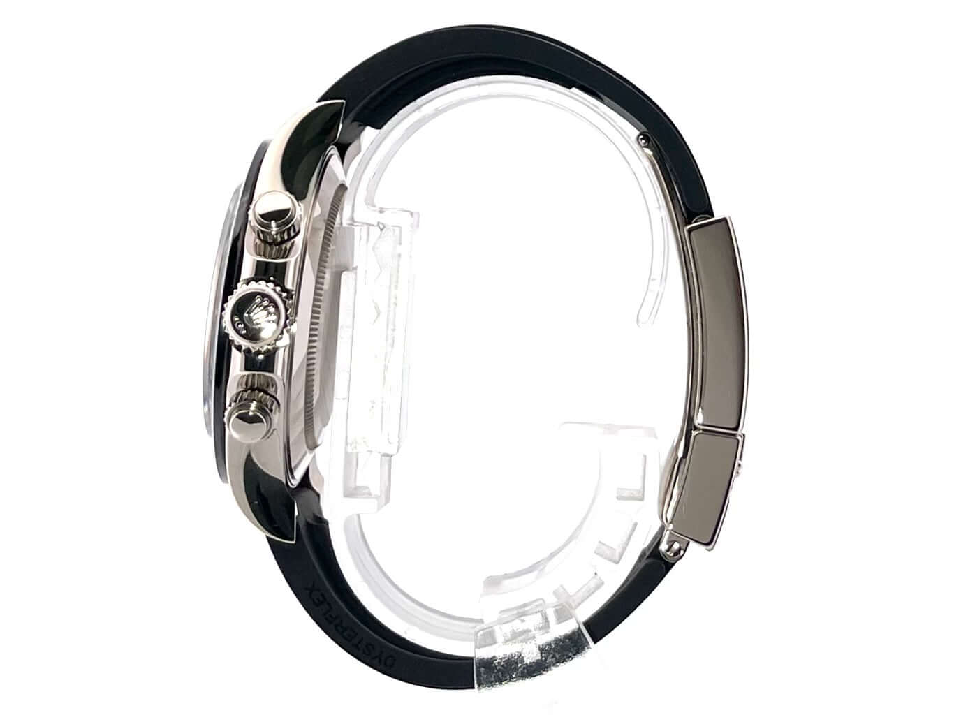 Gehäuse aus 18 kt Weißgold poliert und satiniert, Gehäusedurchmesser 40 mm, Gehäusehöhe 12,4 mm, Keramik Lünette mit Tachymeterskala, schwarzes Oysterflex-Band mit 18 kt Weißgold Faltschließe, stahlgraues Zifferblatt mit aufgesetzten Leuchtindizes, Leuchtzeiger, schwarze Totalisatoren, Automatikwerk, Rolex Manufakturkaliber 4130 mit 44 Steine, Schwingung 28.800 A/h, Gangreserve für ca. 72 Stunden, Chronograph, Chronometer, kratzfestes Saphirglas, verschraubbare Krone aus 18 kt Weißgold mit Flankenschutz, verschraubter Boden aus 18 kt Weißgold, Wasserdicht bis zu 10 bar.