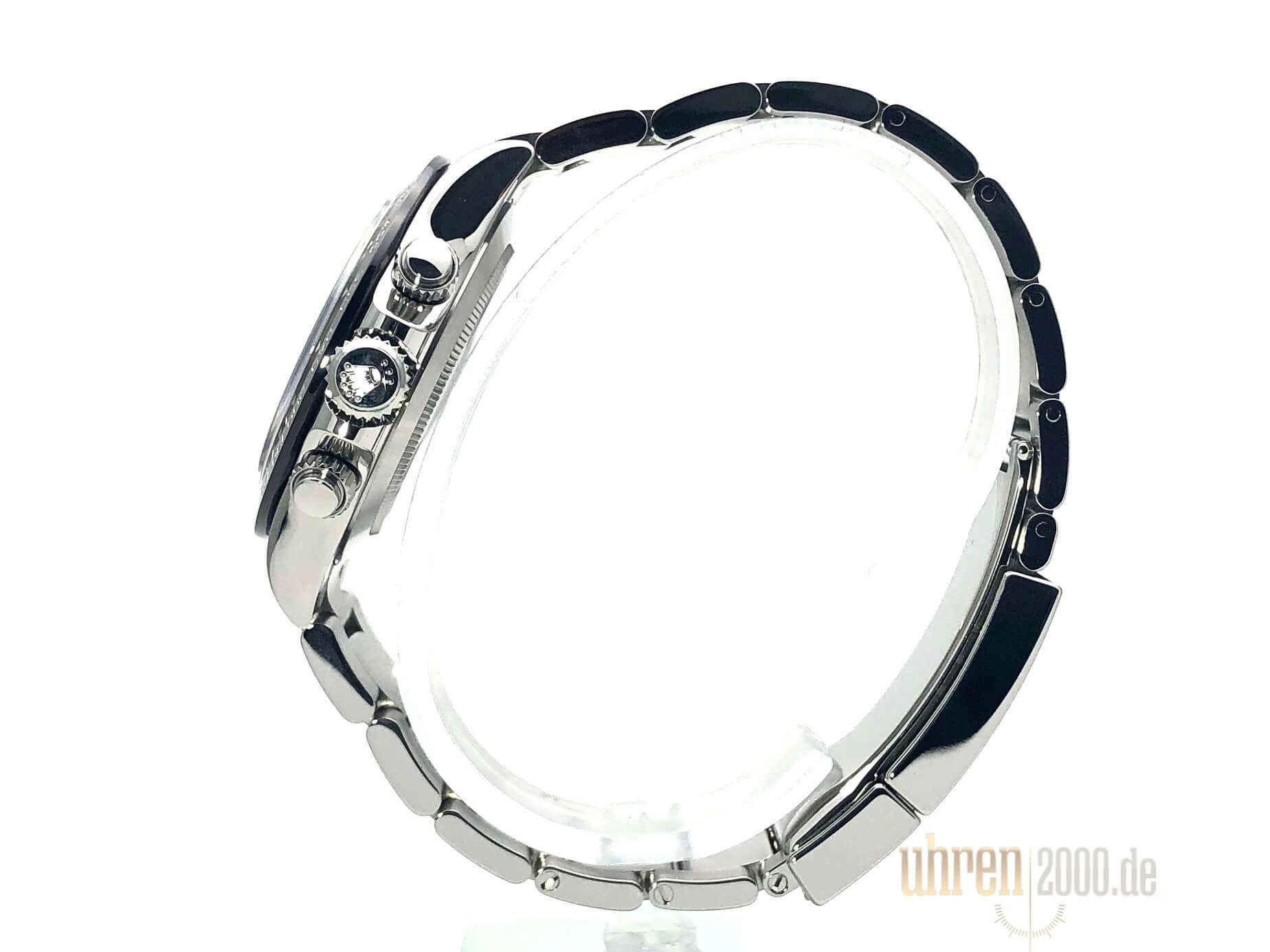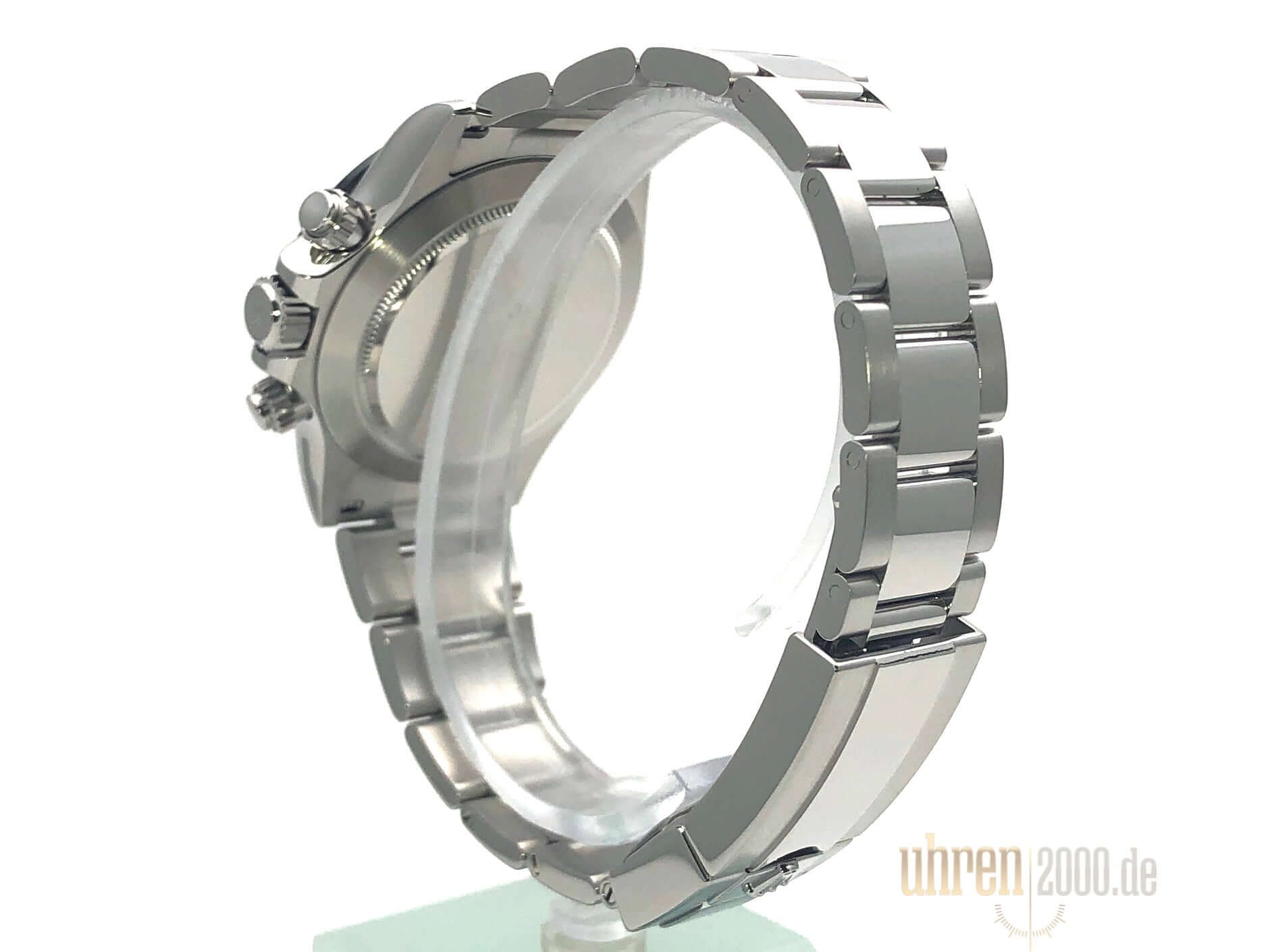 Gehäuse aus Edelstahl poliert und satiniert, Keramik Lünette mit Tachymeterskala, Oyster Edelstahl Armband poliert und satiniert mit Sicherheitsfaltschließe, weißes Zifferblatt mit Leuchtindizes, Leuchtzeiger, Rolex Manufakturkaliber 4130, 44 Steine, Gangreserve ca. 72 Stunden, Chronometer, Saphirglas, verschraubte Krone mit Flankenschutz, Edelstahlboden verschraubt, Wasserdicht bis 10 bar.