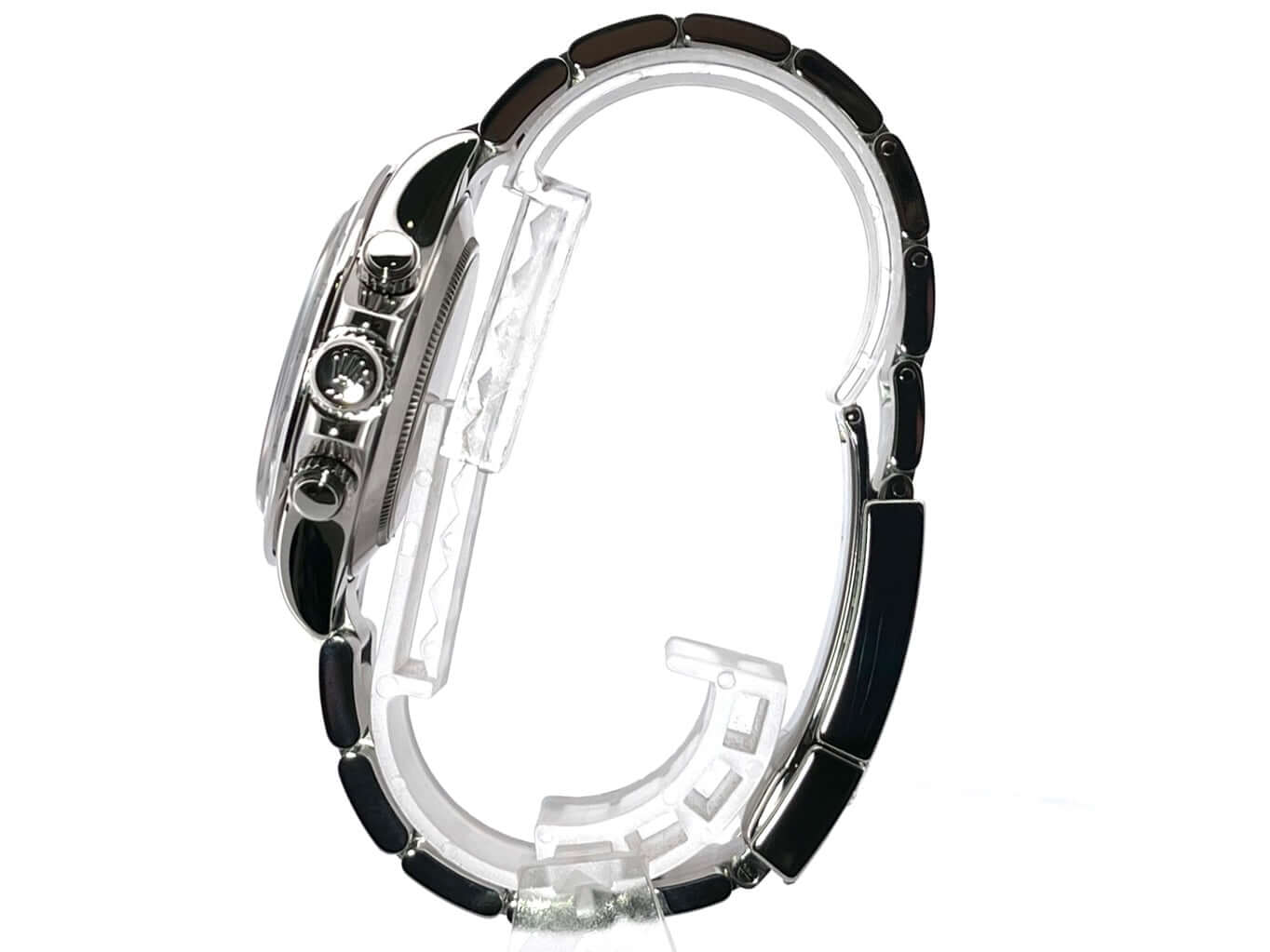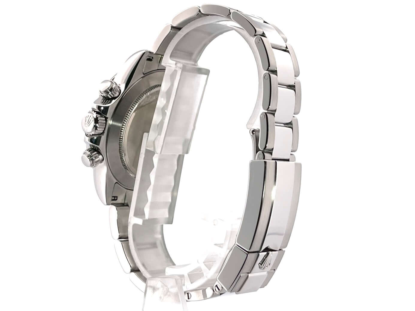 Gehäuse aus Edelstahl poliert und satiniert, Edelstahl Lünette poliert mit Tachymeterskala, Oyster Edelstahlband poliert und satiniert mit Sicherheitsfaltschließe, schwarzes Zifferblatt, Leuchtzeiger, Rolex Manufakturkaliber 4130, 44 Steine, Gangreserve ca. 72 Stunden, Chronometer, Saphirglas, verschraubte Krone mit Flankenschutz, Edelstahlboden verschraubt, Wasserdicht bis 10 bar.