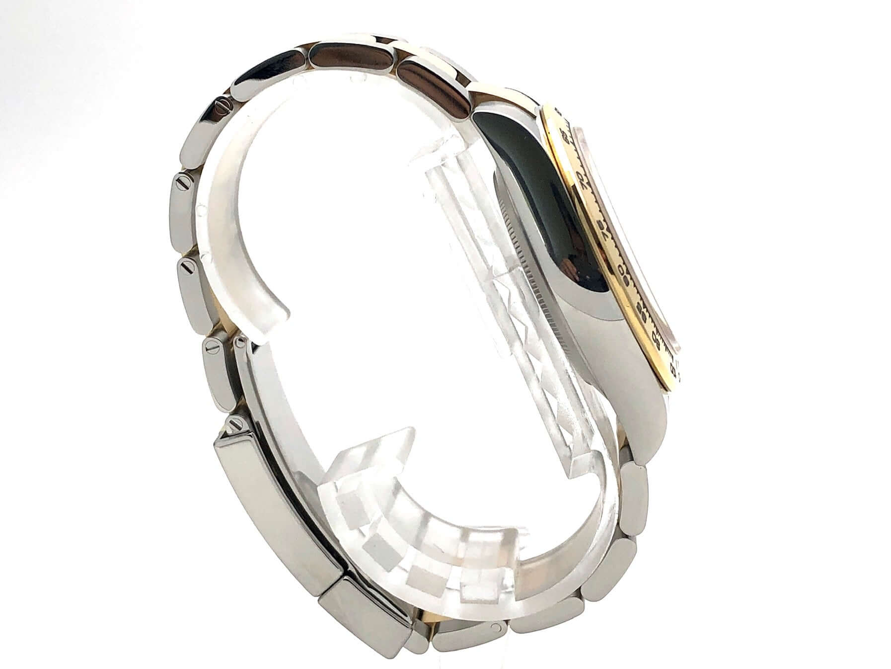 Gehäuse aus 40 mm Edelstahl poliert und satiniert, 18 kt Gelbgold Lünette poliert mit Tachymeterskala, Oyster Edelstahl / 18 kt Gelbgold Armband poliert und satiniert mit Sicherheitsfaltschließe, dunkles Perlmutt Diamantzifferblatt, Automatik, Rolex Manufakturkaliber 4130, 44 Steine, Gangreserve ca. 72 Stunden, Chronometer, Saphirglas, verschraubte Krone mit Flankenschutz, Edelstahlboden verschraubt, Wasserdicht bis 10 bar.