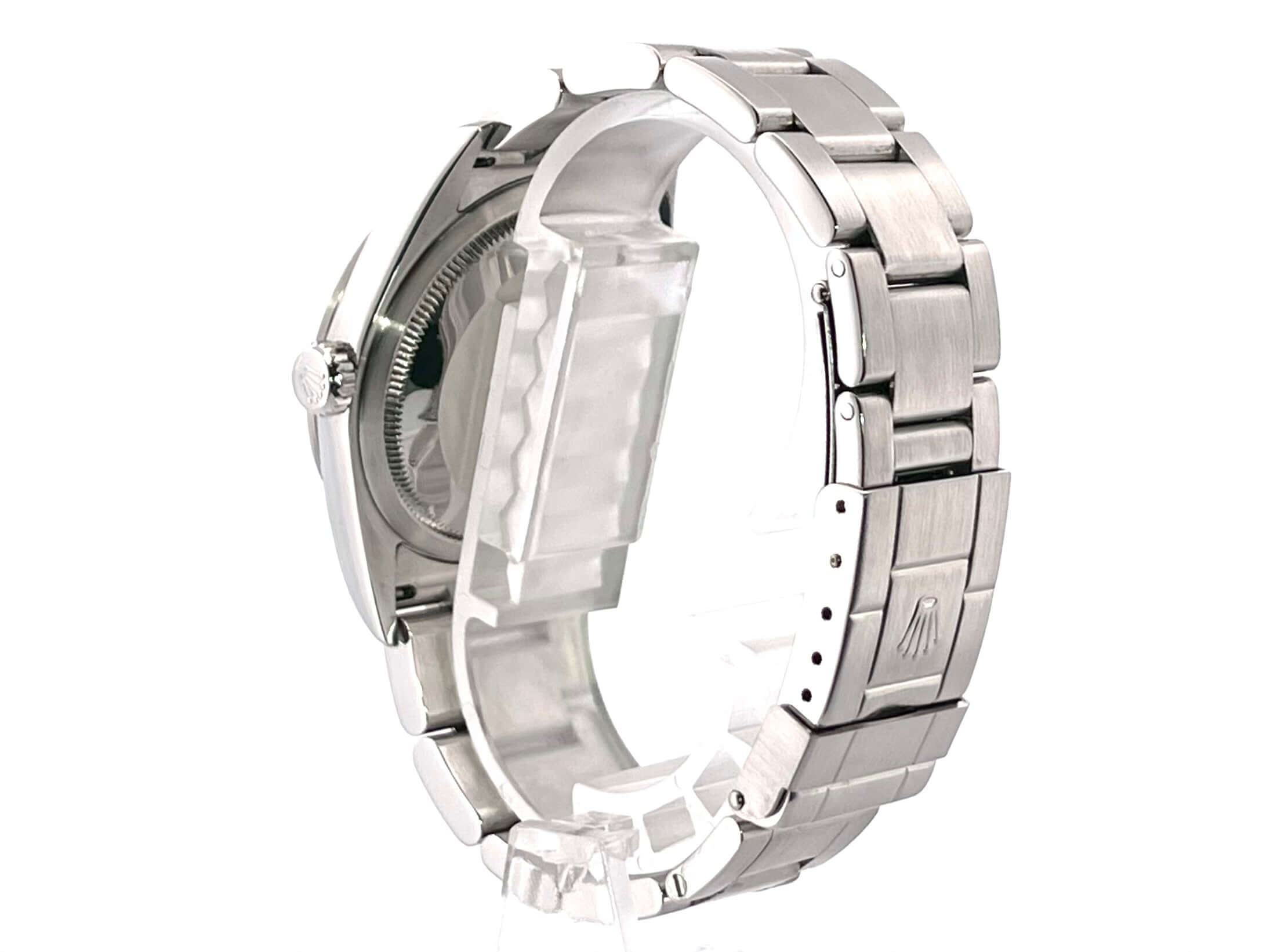 Gehäuse aus Edelstahl poliert und satiniert, Gehäusedurchmesser 36 mm, Lünette Edelstahl poliert, Oyster Edelstahl Armband poliert und satiniert mit Faltschließe, schwarzes Zifferblatt mit aufgesetzten arabischen Leuchtziffern und Leuchtindizes, Automatikwerk, Rolex 3130, Schwingung 28.800 A/h, Chronometer, kratzfestes Saphirglas, verschraubte Krone, verschraubter Boden aus Edelstahl, Wasserdicht bis zu 10 bar.