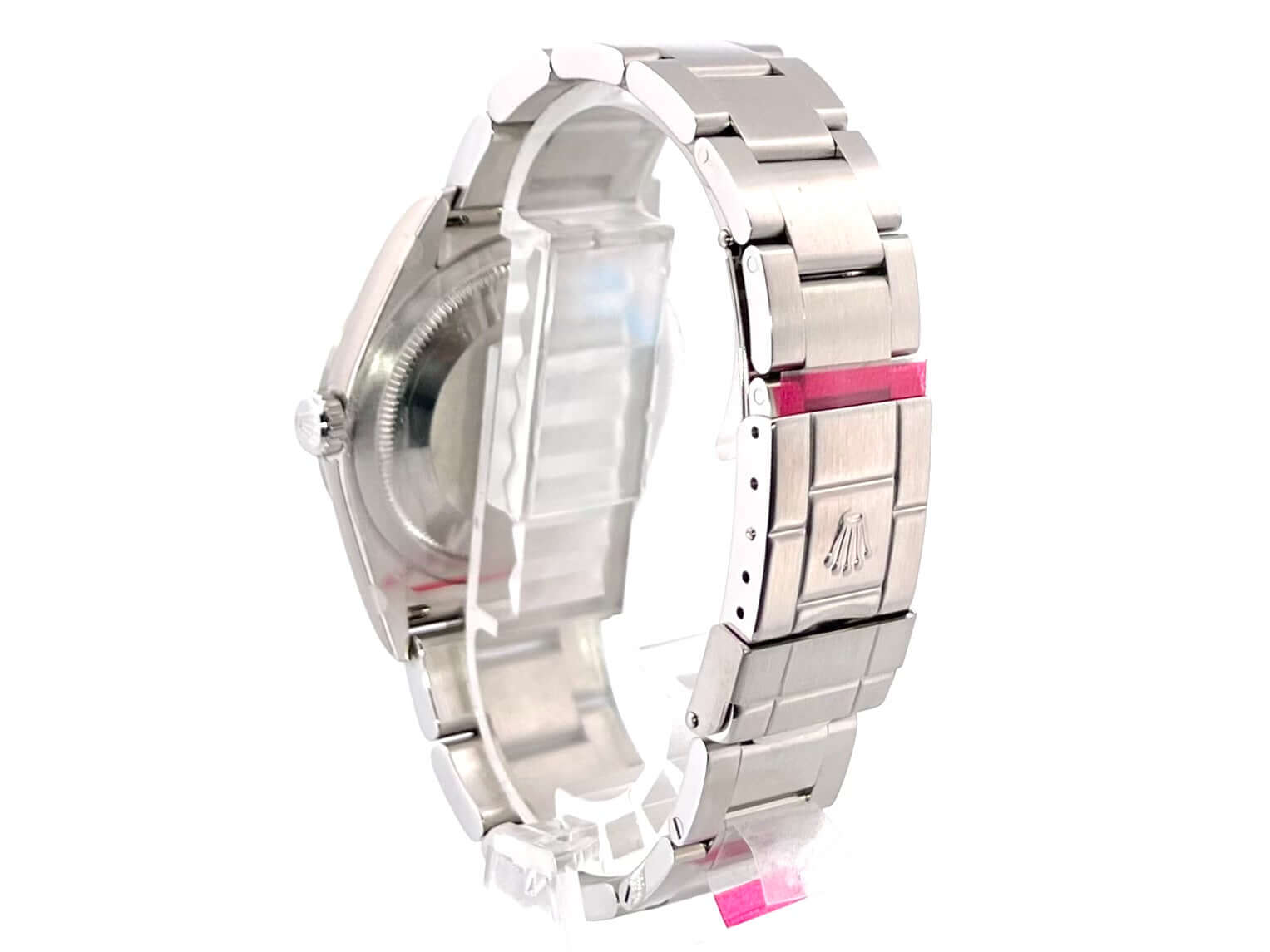 Gehäuse aus Edelstahl poliert und satiniert, Gehäusedurchmesser 36 mm, Lünette Edelstahl poliert, Oyster Edelstahl Armband poliert und satiniert mit Faltschließe, schwarzes Zifferblatt mit aufgesetzten arabischen Leuchtziffern und Leuchtindizes, Automatikwerk, Rolex 3130, Schwingung 28.800 A/h, Chronometer, kratzfestes Saphirglas, verschraubte Krone, verschraubter Boden aus Edelstahl, Wasserdicht bis zu 10 bar.